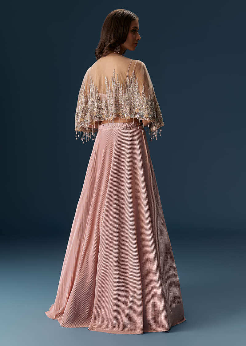 Peach Lehenga With Embroidered Blouse And Coordinating Cape