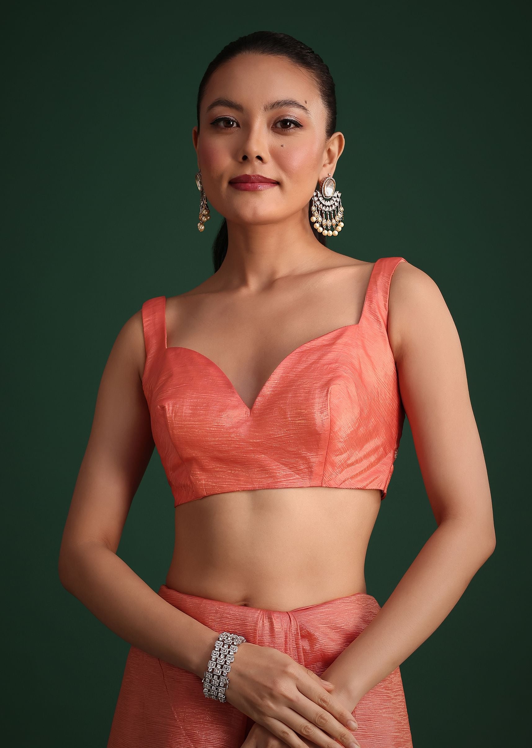 Elevate your ethnic wardrobe with our heritage-rich peach crushed tissue saree. Featuring exquisite embroidery, it is adorned with sequin and cutdana embellishments. A luxurious pick for grand celebration and festive occasions, this drape will ensure you command attention at every gathering. Awarded as the Most Trusted Brand, we're delivering styles you love, just as promised.