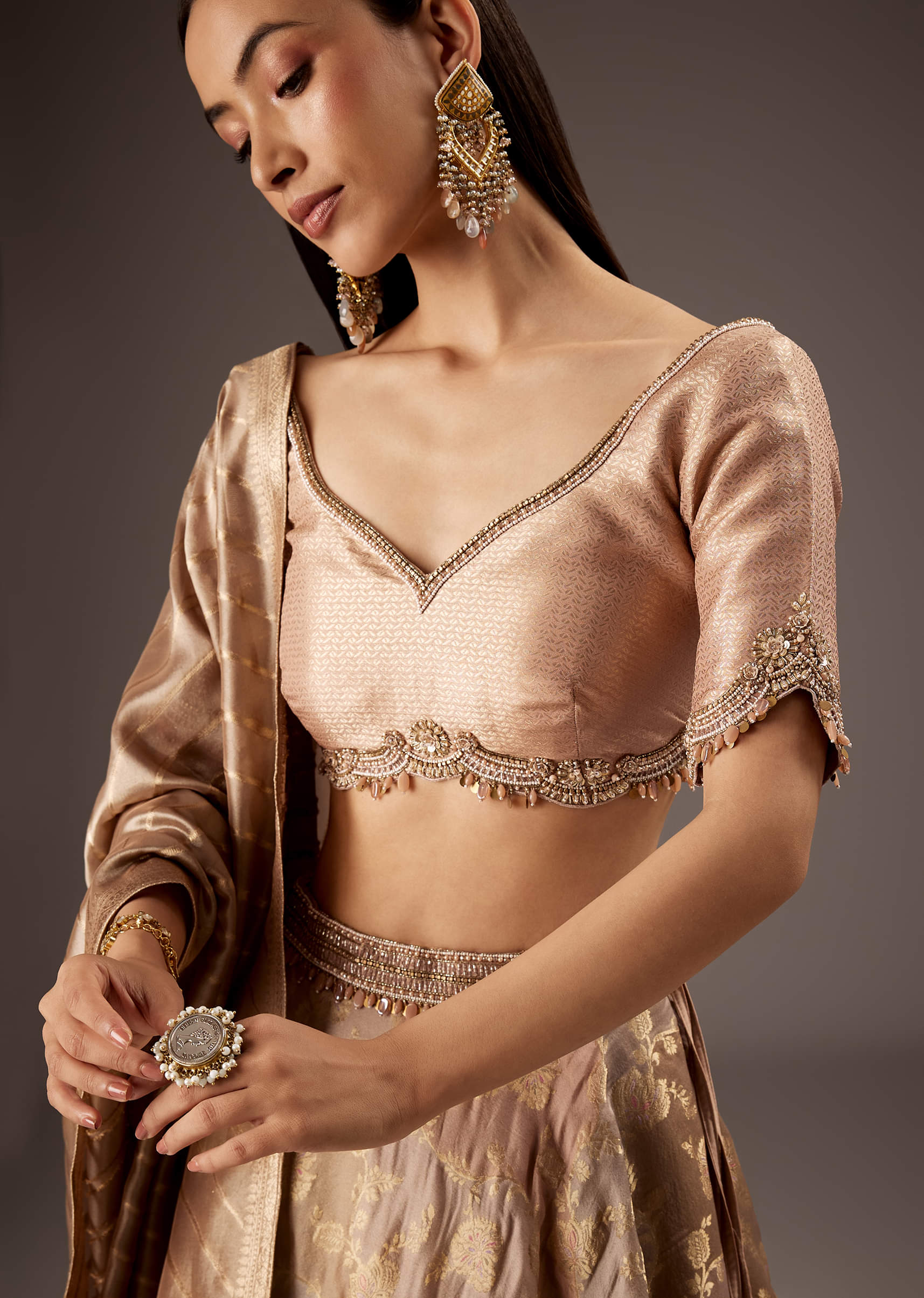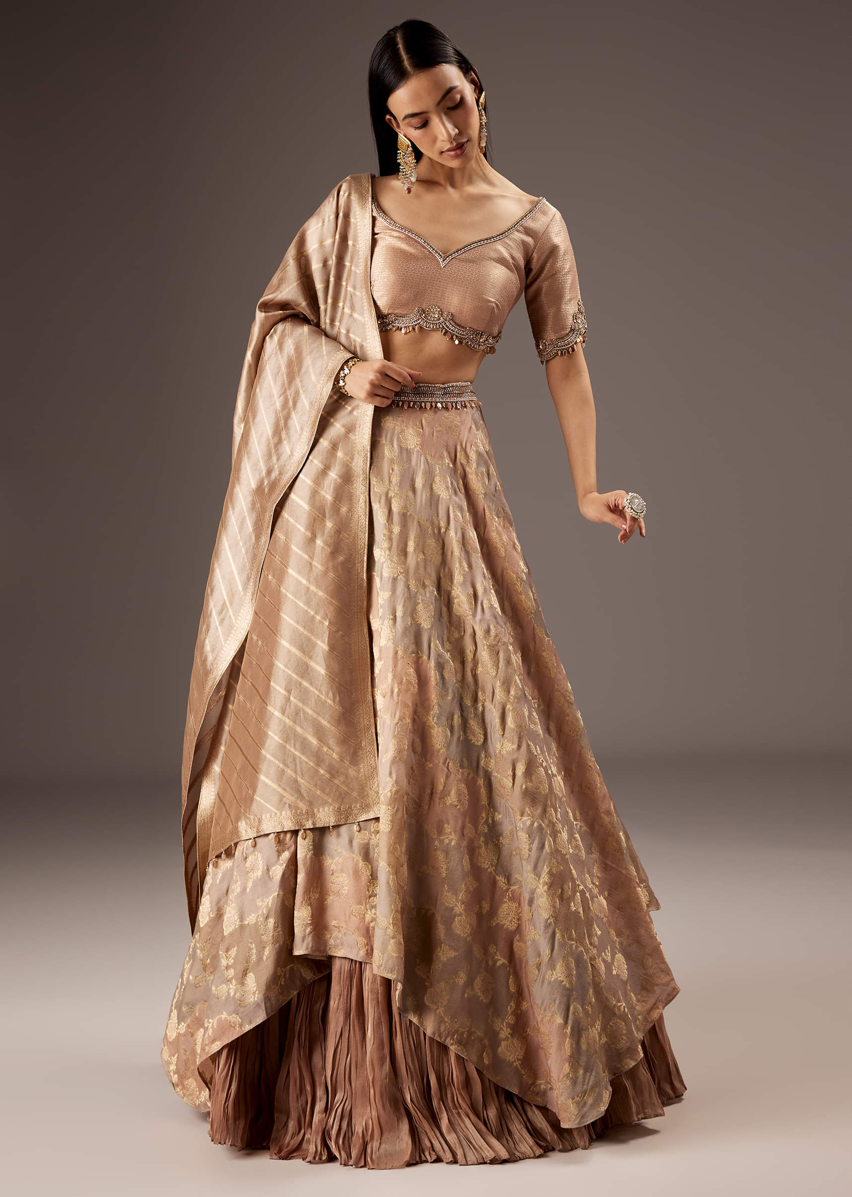 Peach Silk Bridesmaid Lehenga With Embroidered Tassel Blouse And Dupatta