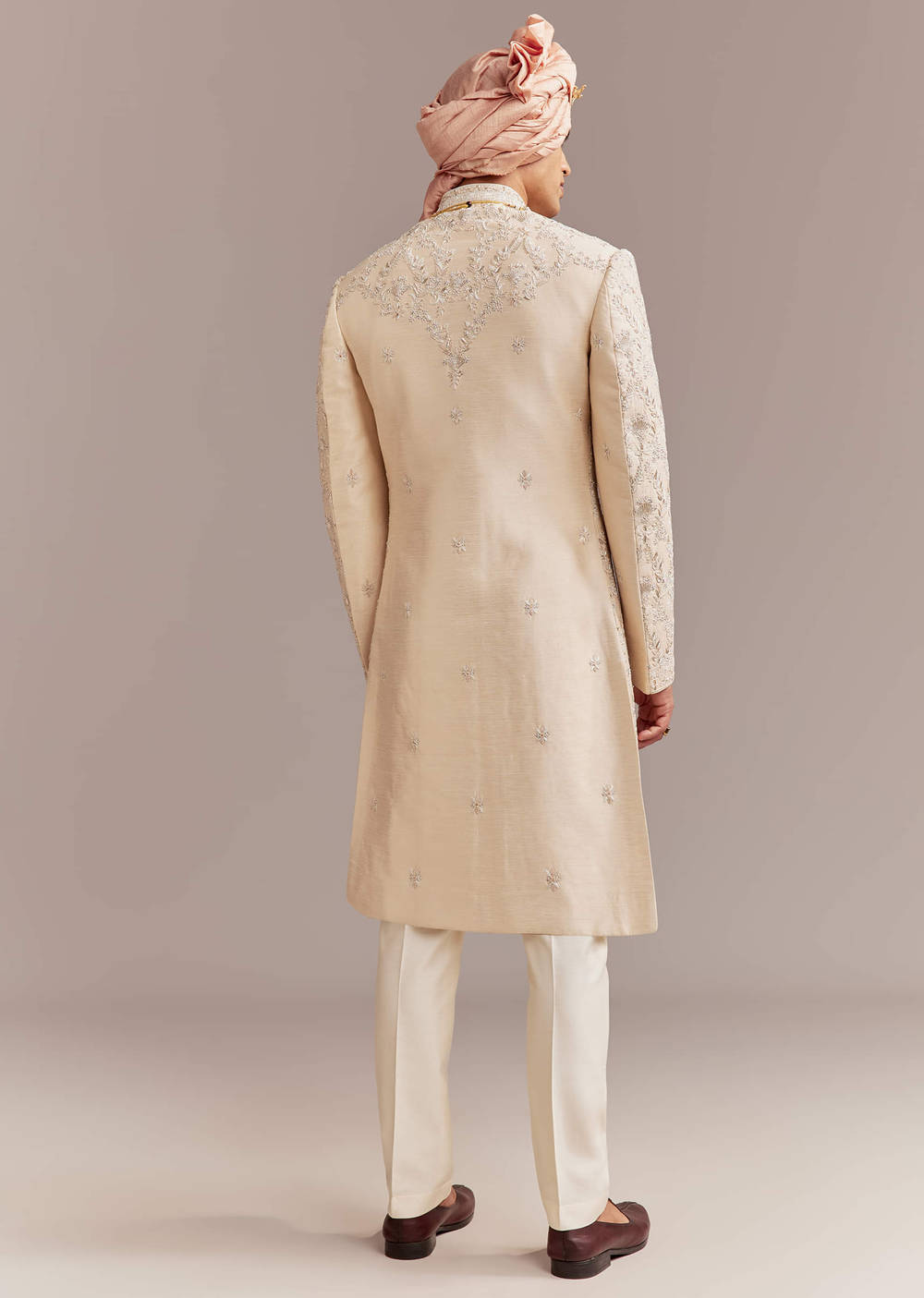 Fit Tips:The sherwani should drape neatly without feeling stiff, ensuring a graceful stance in every wedding portrait.