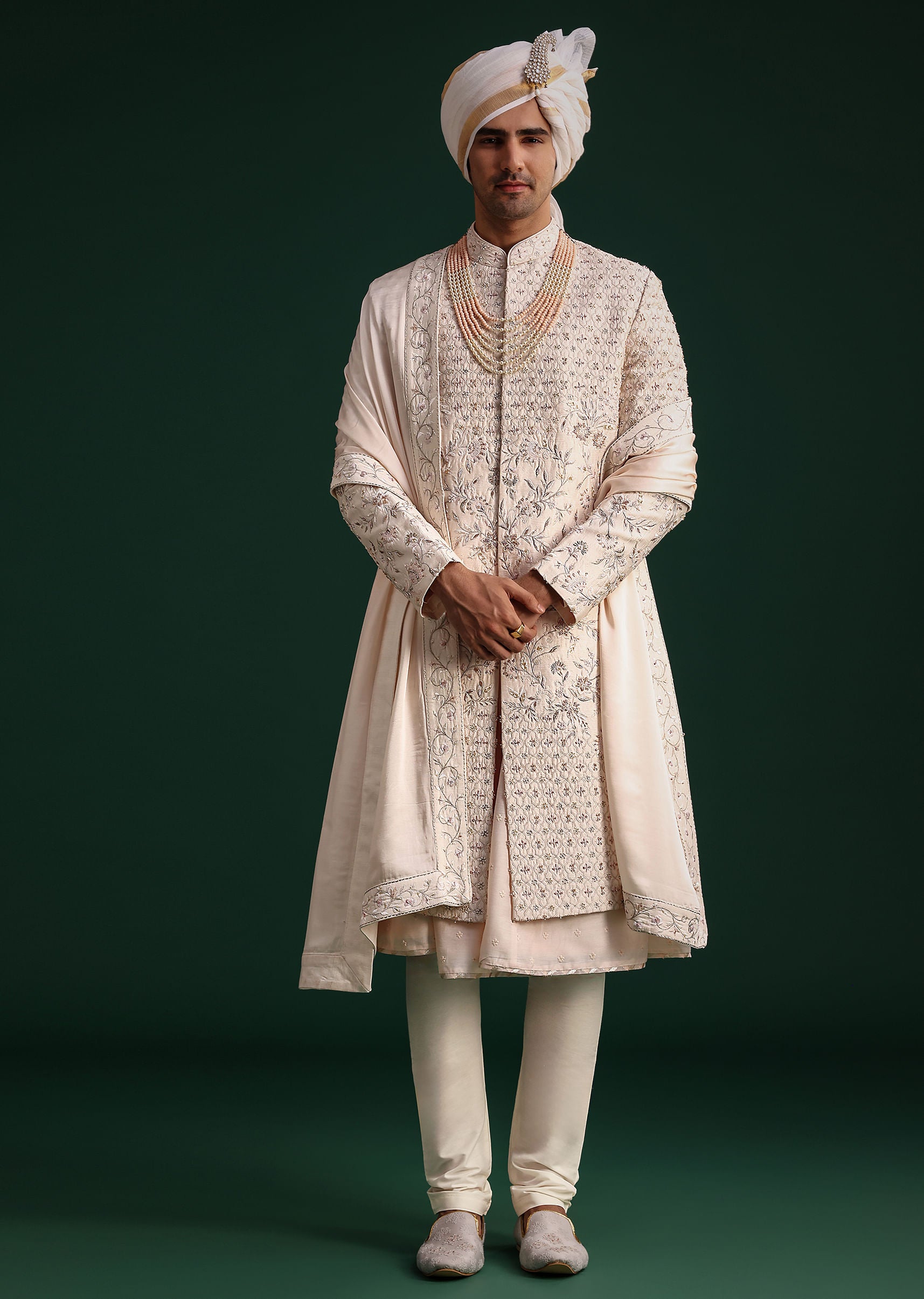 Fit Tips:Opt for a tailored fit to ensure the sherwani drapes seamlessly and complements your physique.