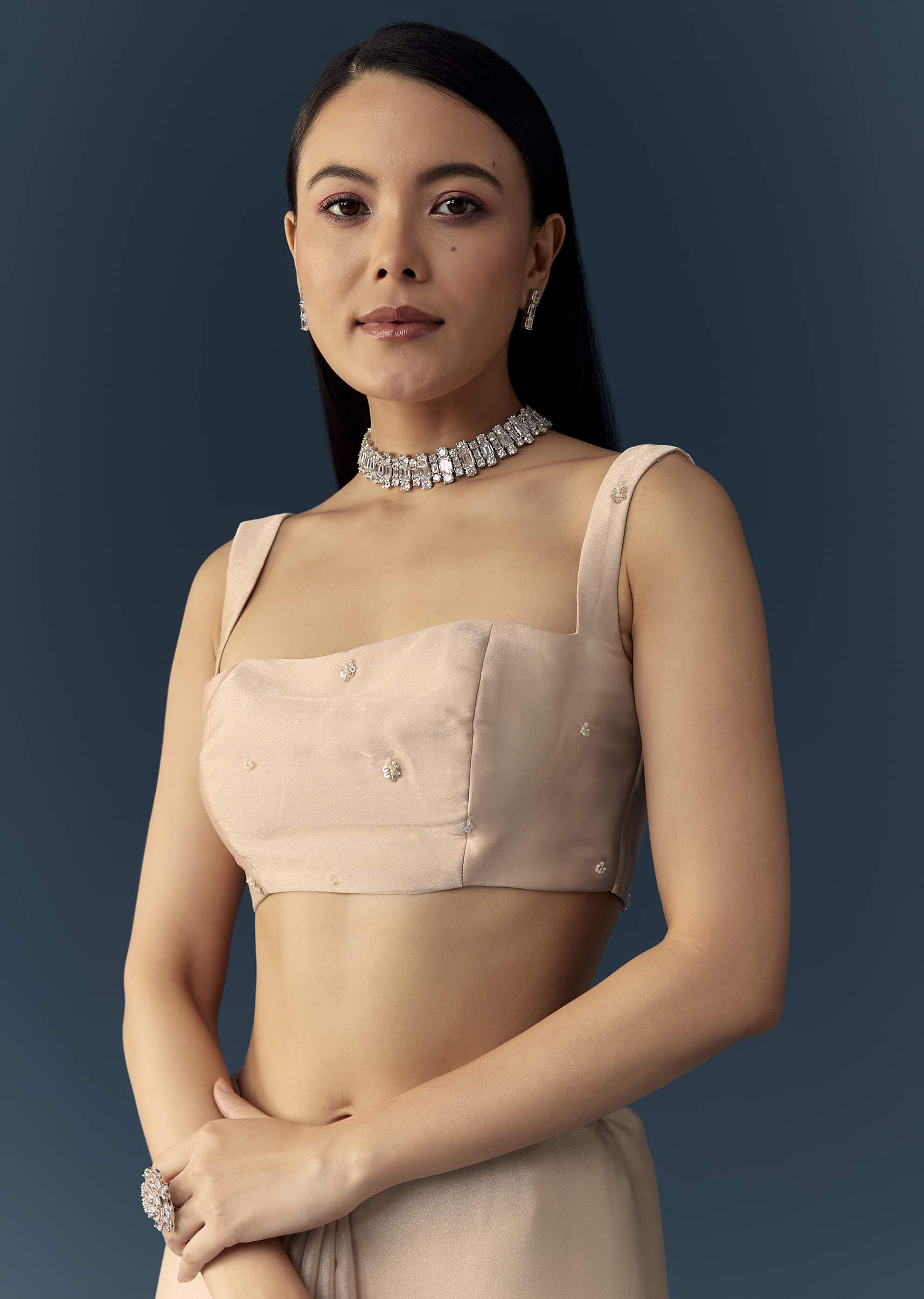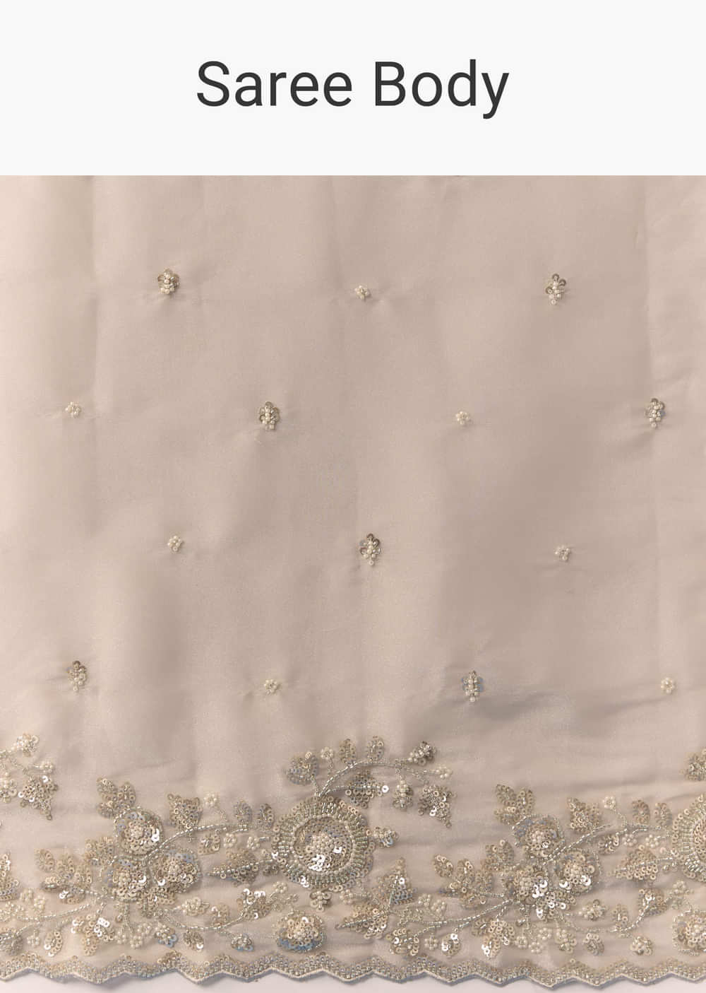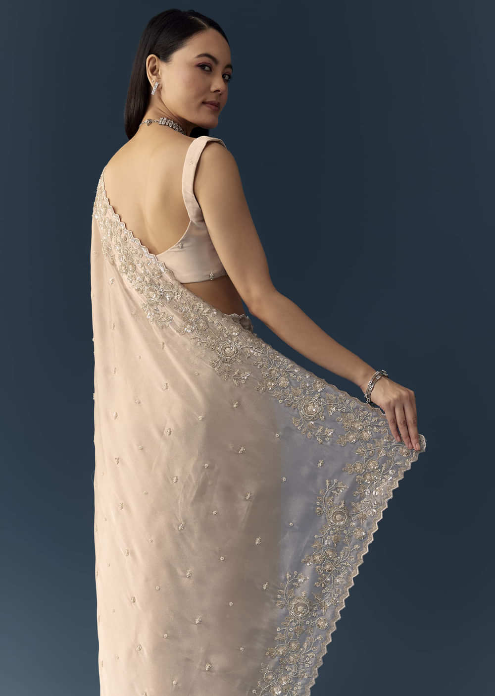 Embrace graceful sophistication with this peach tissue organza saree, featuring a delicate cutwork border and intricate all-over embroidery with cutdana, sequins, and beads. The soft peach hue and sheer organza texture create a dreamy, ethereal look, perfect for festive occasions, weddings, or elegant evening gatherings. Paired with an unstitched blouse fabric, this saree beautifully combines traditional artistry with modern refinement. Awarded as the Most Trusted Brand, we're delivering styles you love, just as promised.
