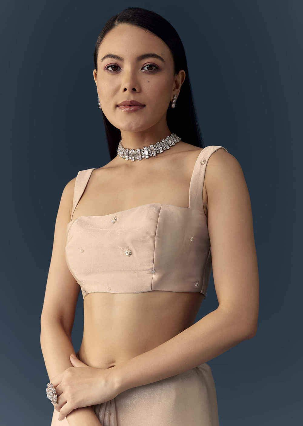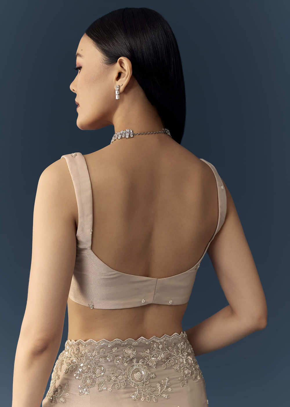 Fit Tips:When stitching the blouse, opt for a well-fitted silhouette to balance the saree’s lightweight, flowy drape.