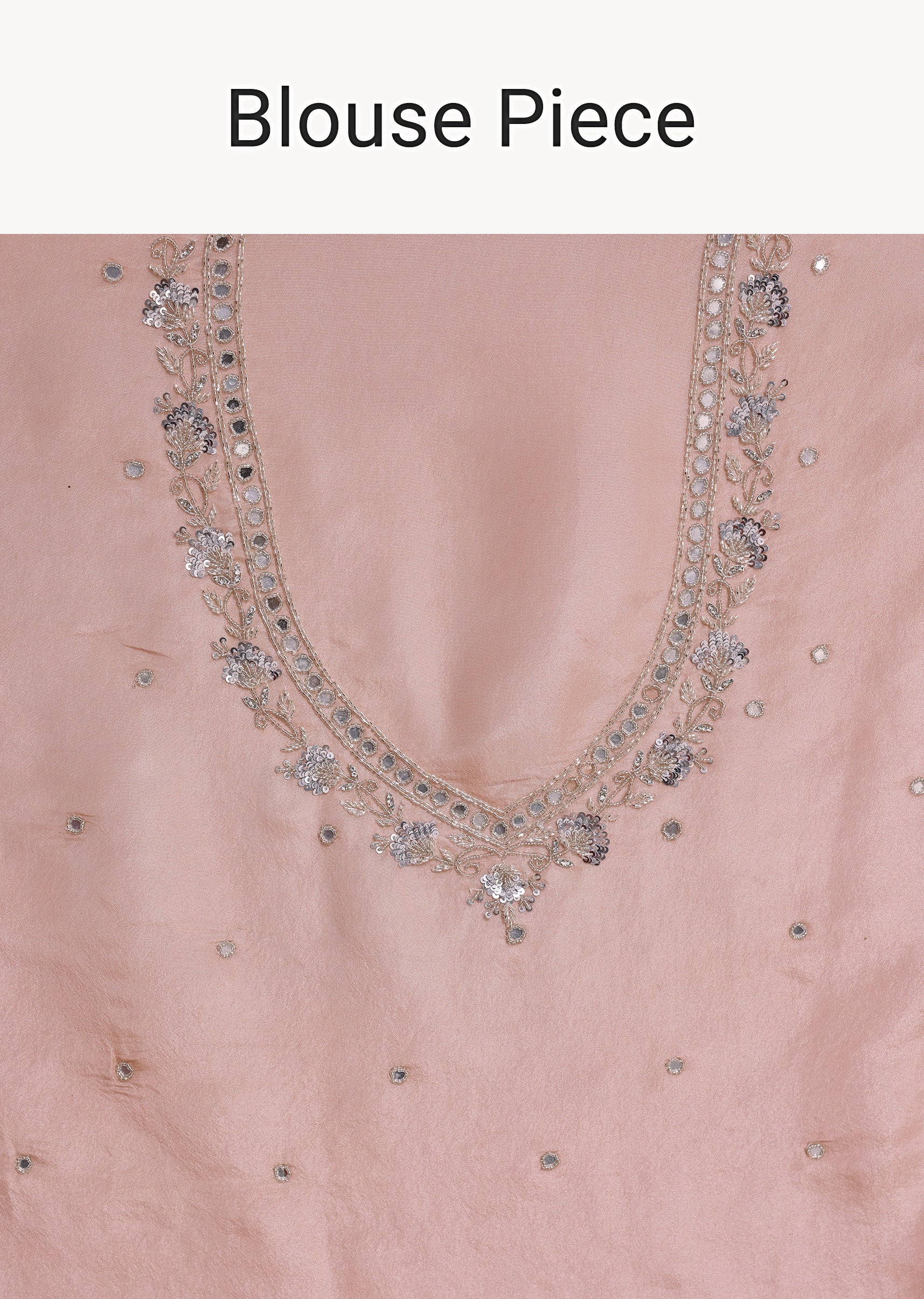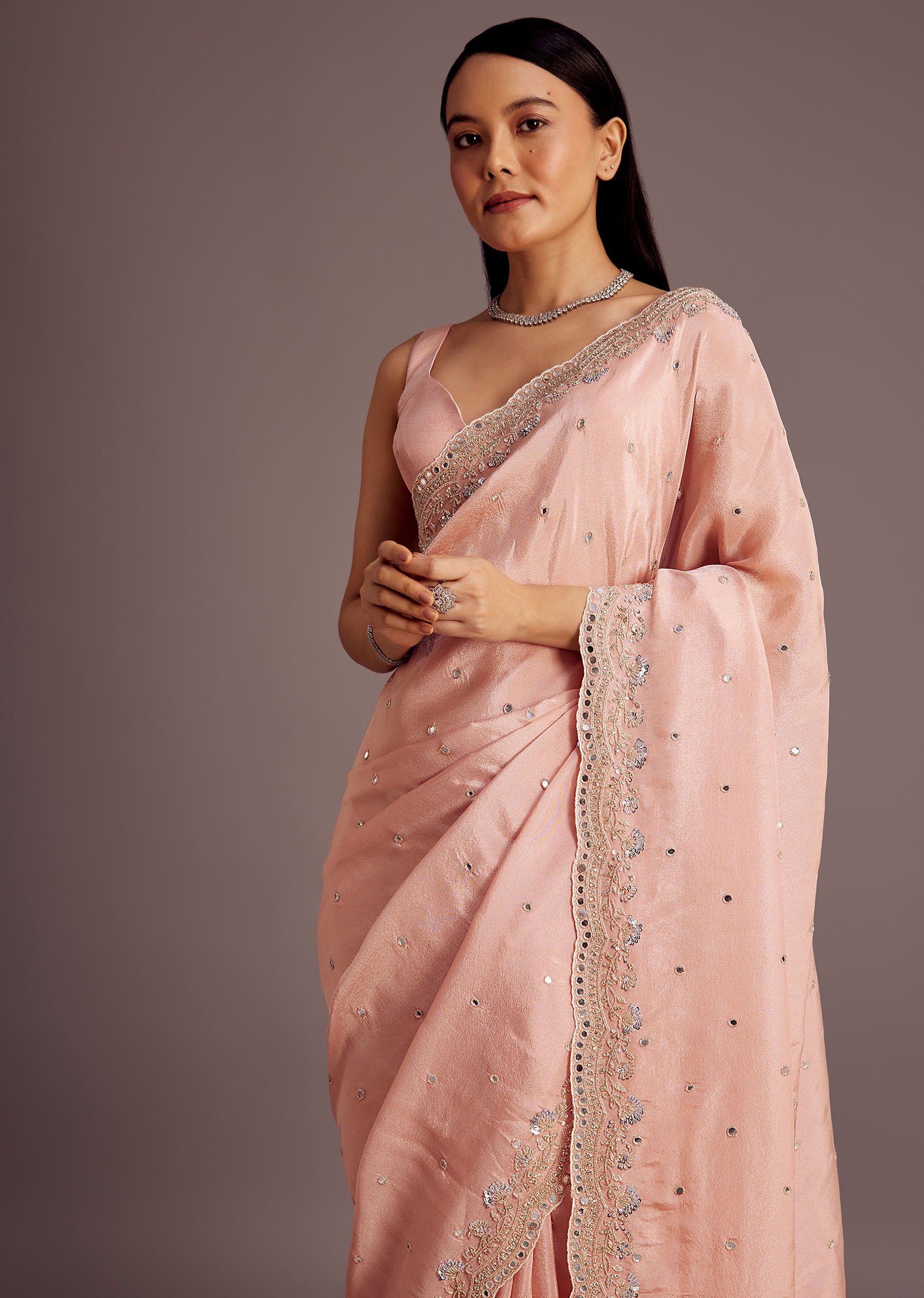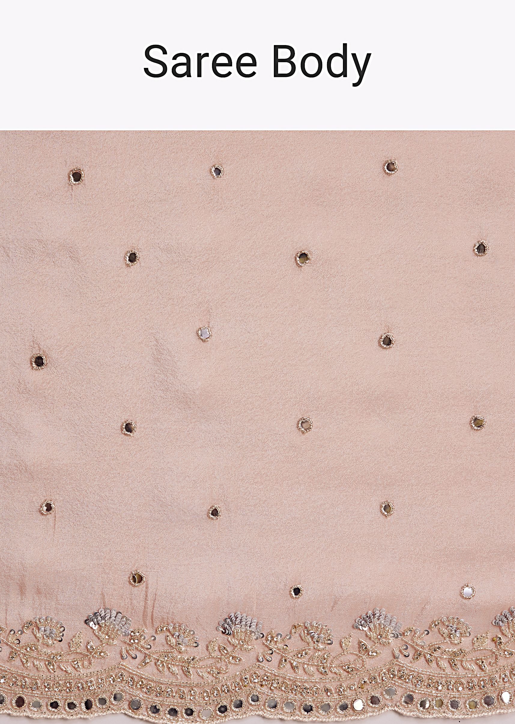 Peach Tissue Saree With Mirror Embroidered Border