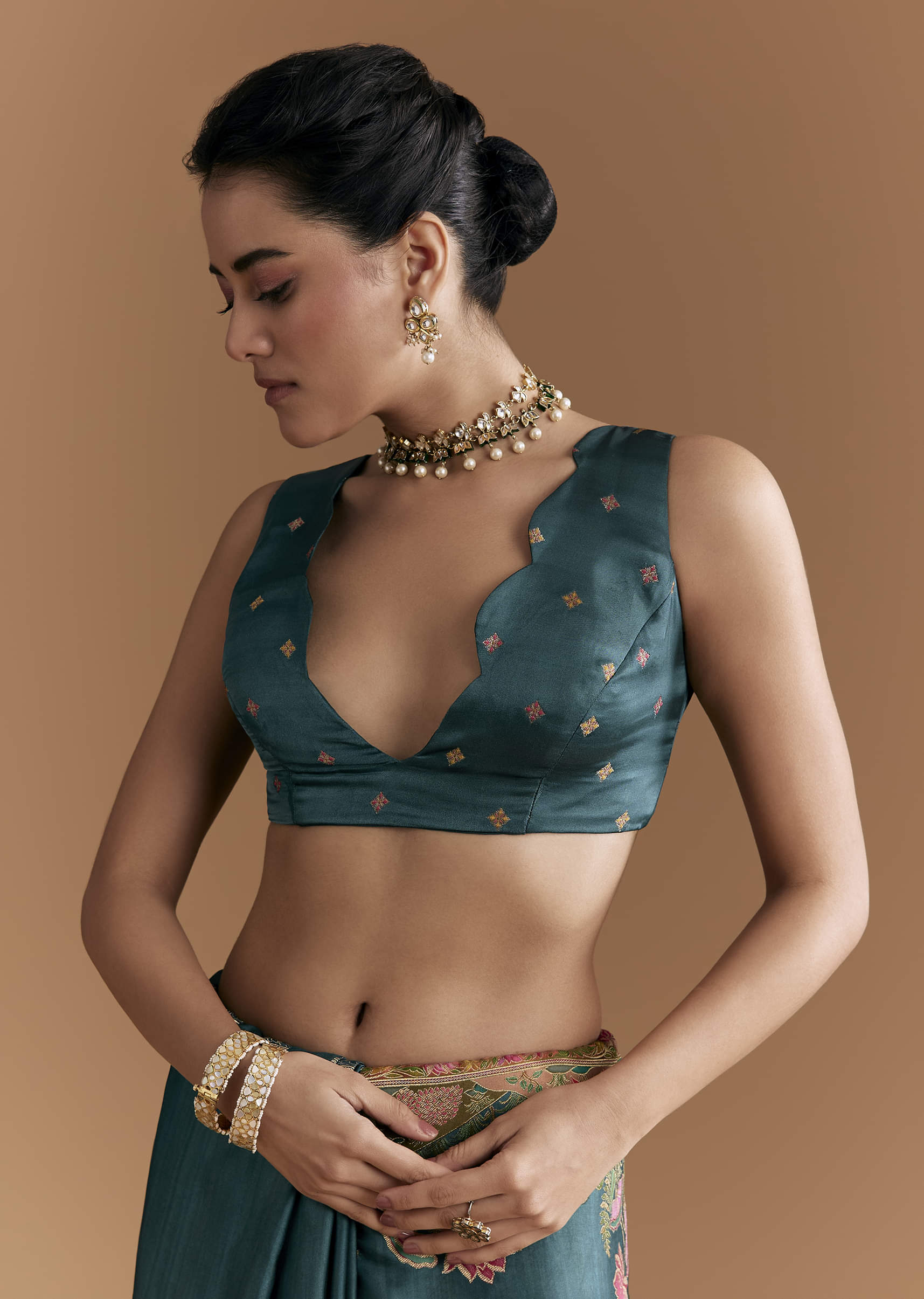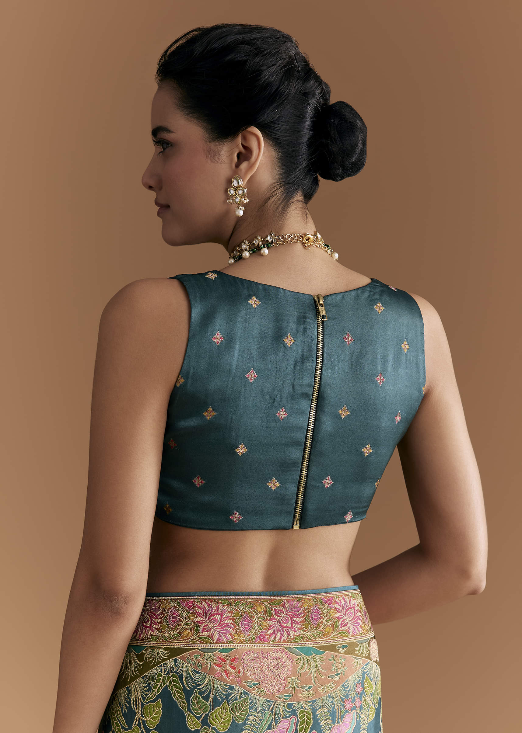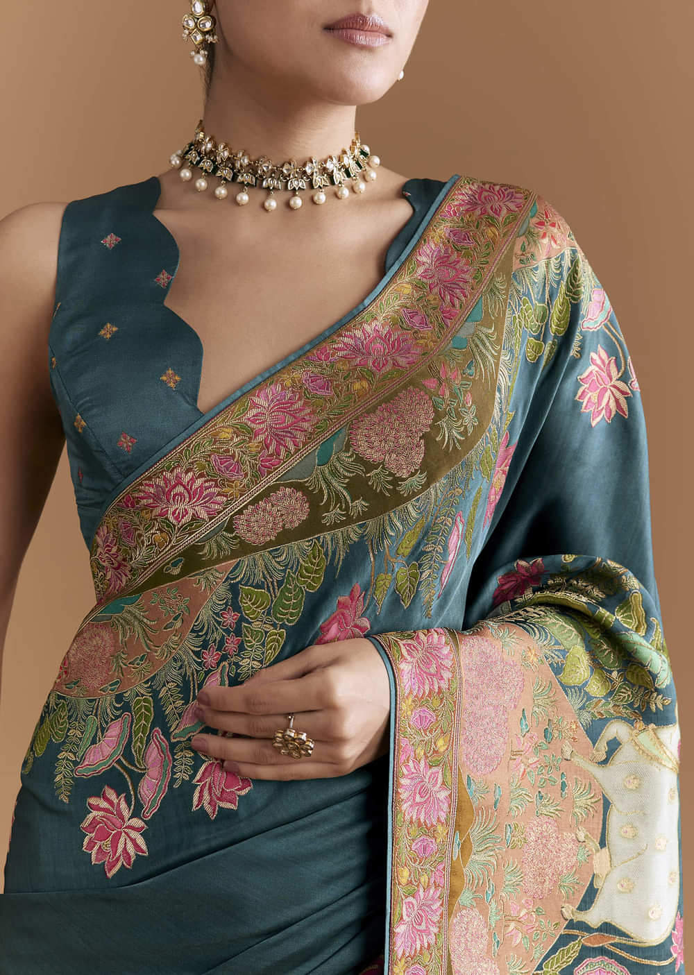 Peacock Blue Dola Silk Saree With Pichwai Weave And Embroidery