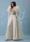 Pearl White Satin Indowestern Embroidered Jumpsuit With Net Shrug