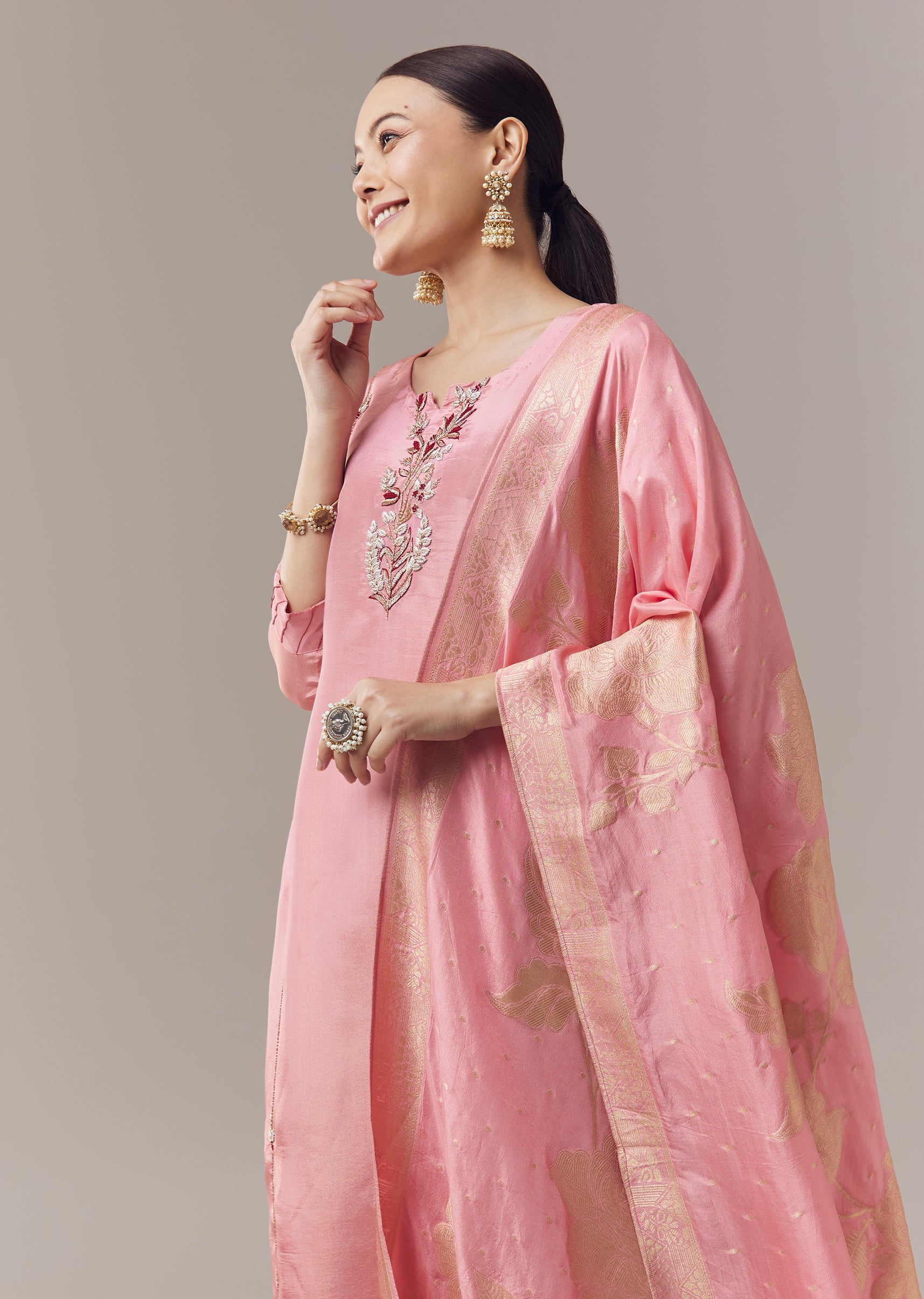 Pink Anarkali Suit With Zardosi Work And Dupatta