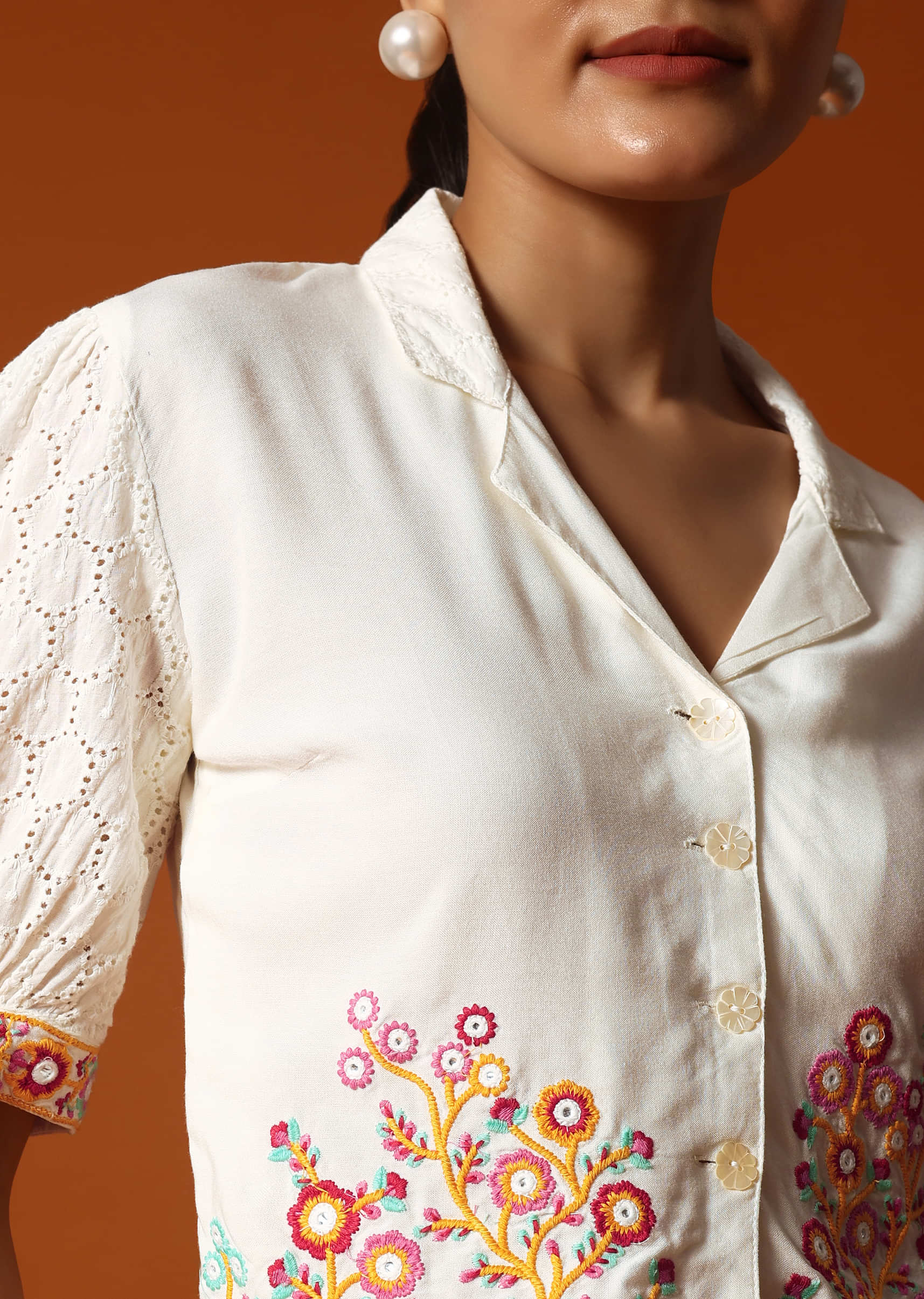 -  Tailored from highquality cotton fabric this ensemble features exquisite prints and intricate threadwork adding a touch of elegance to your look.