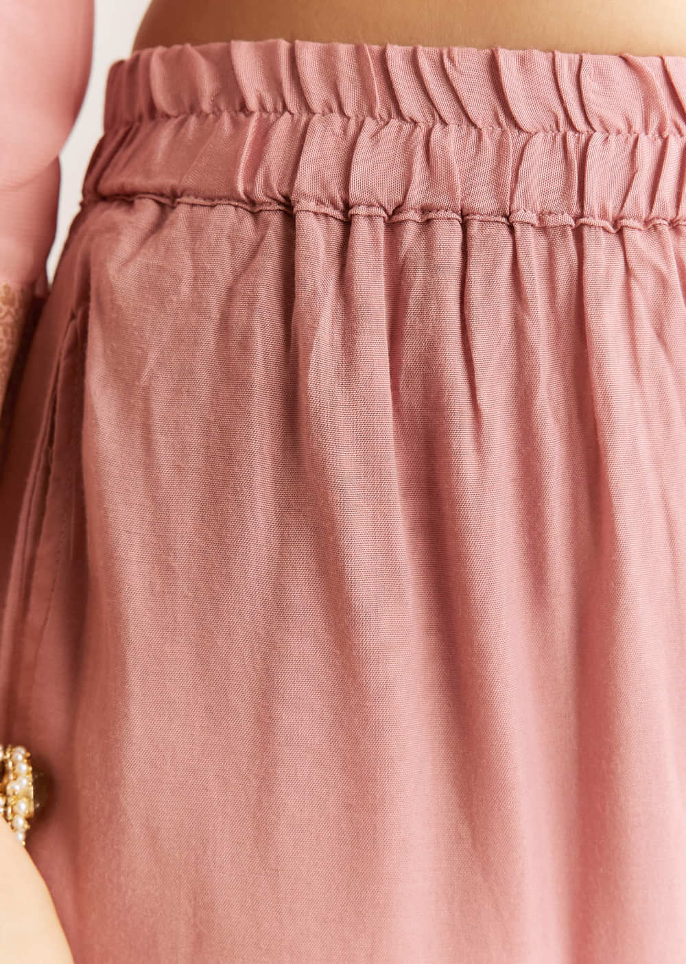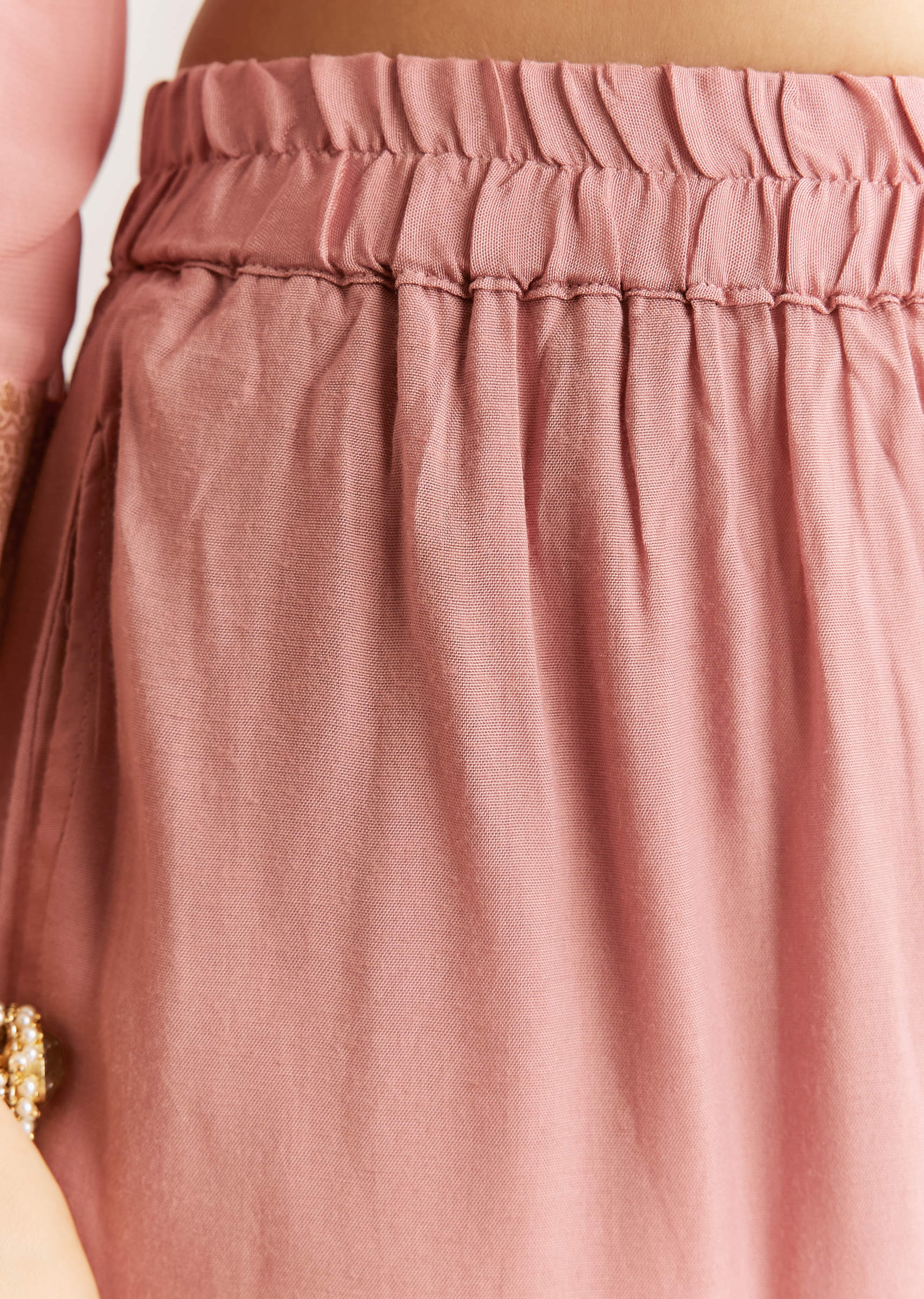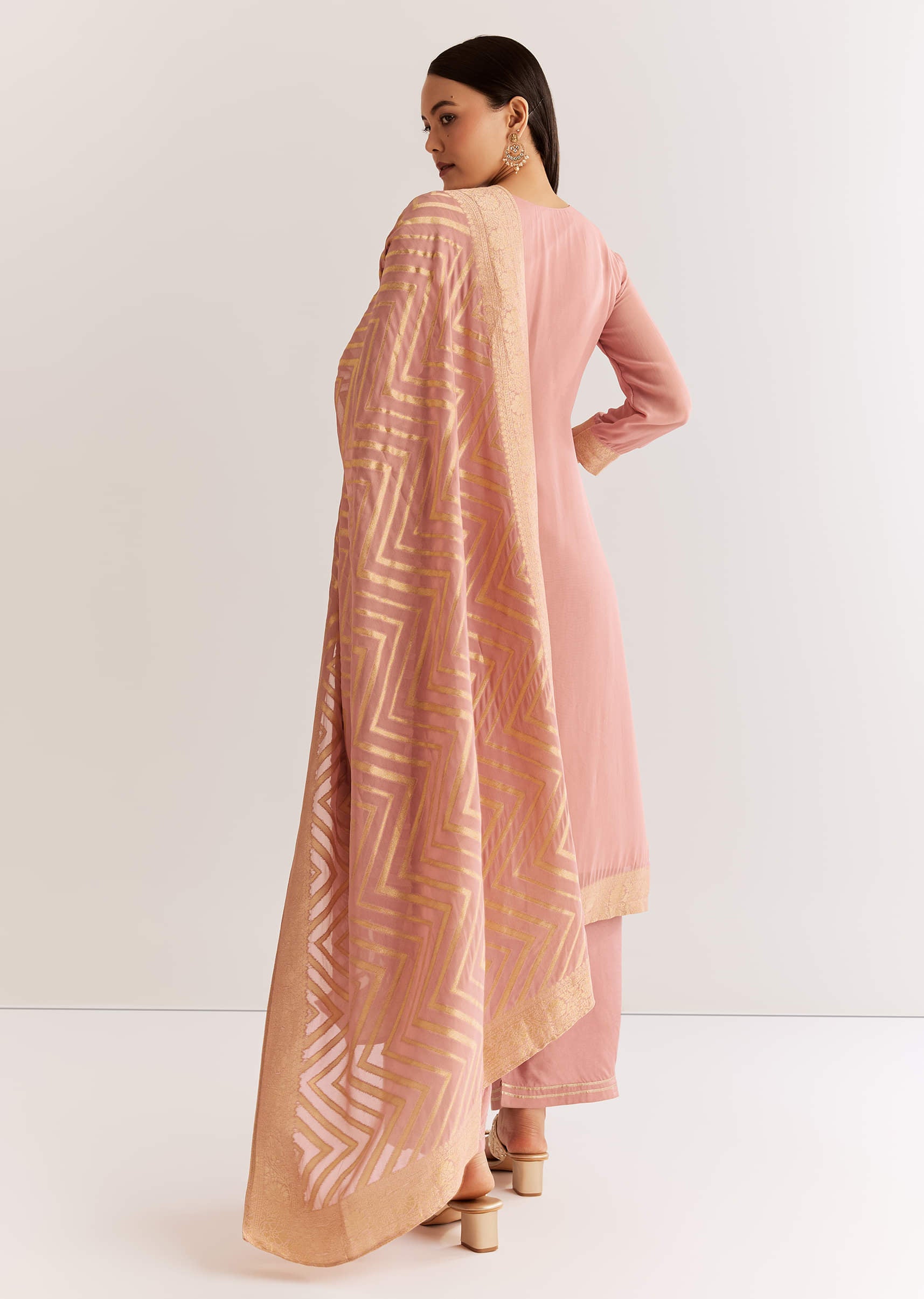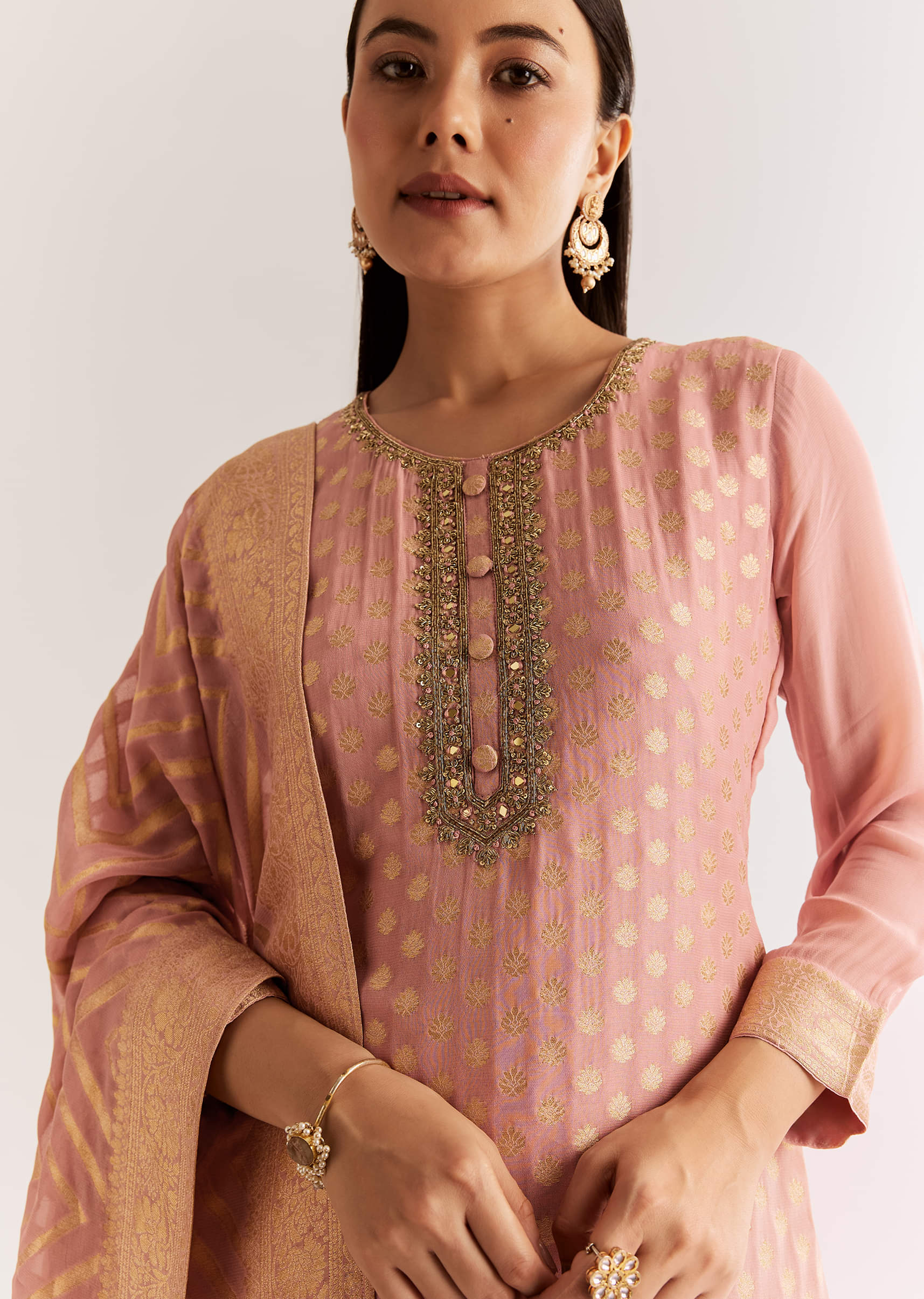 Pink Banarasi Georgette Kurta Set With Zardosi Neckline
