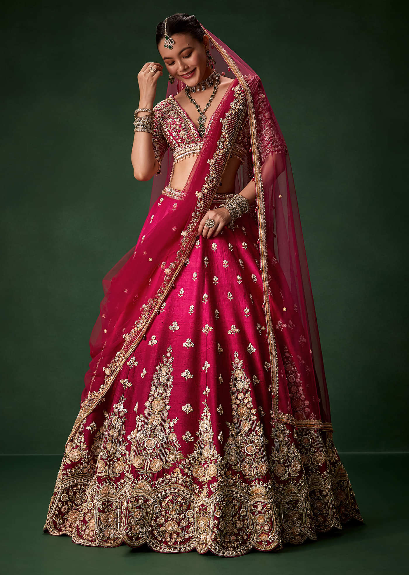 Pink Bridal Silk Lehenga Set with Two Dupattas