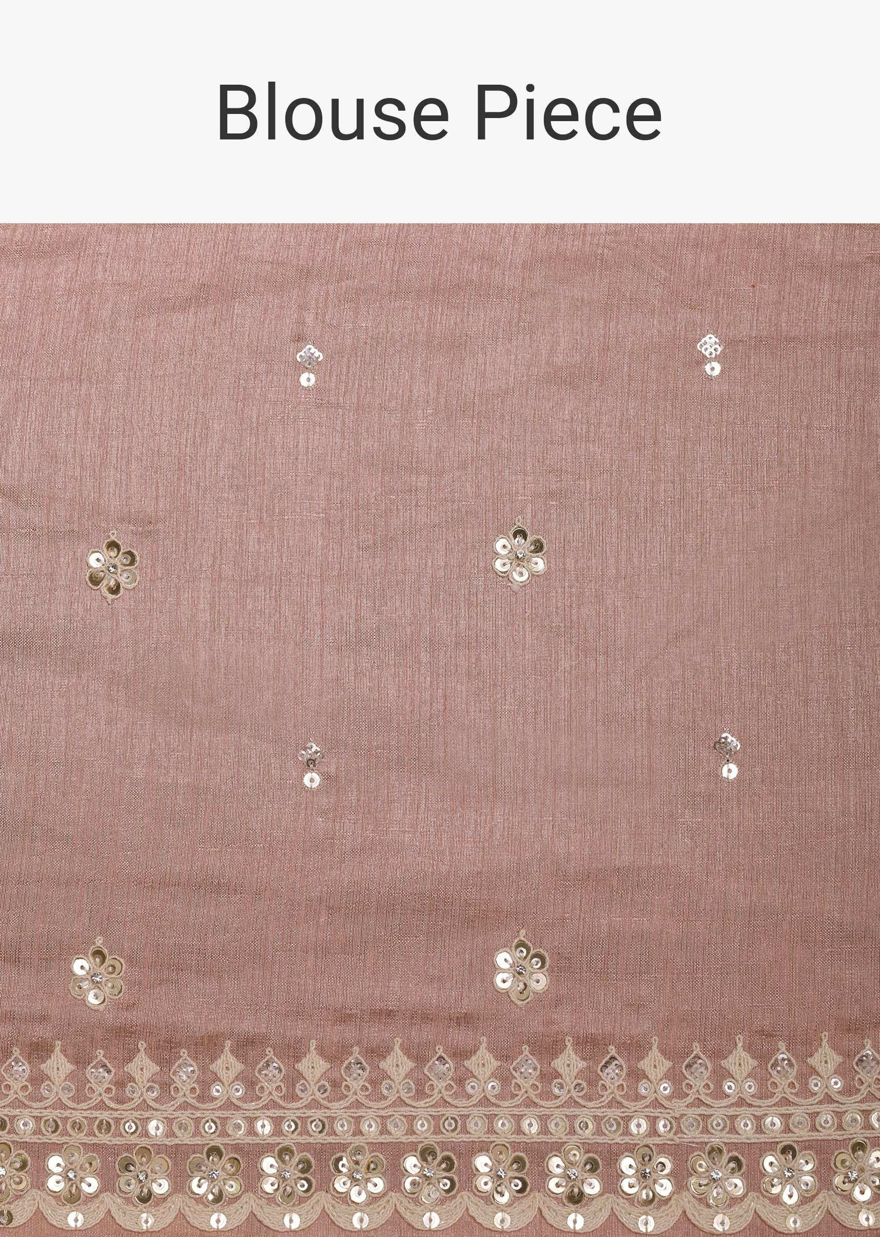 Pink Chiffon Ready To Wear Saree With Floral Prints And Unstitched Blouse Piece