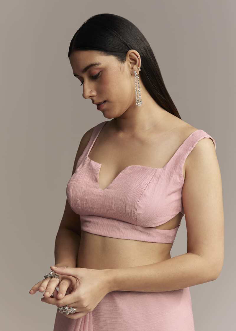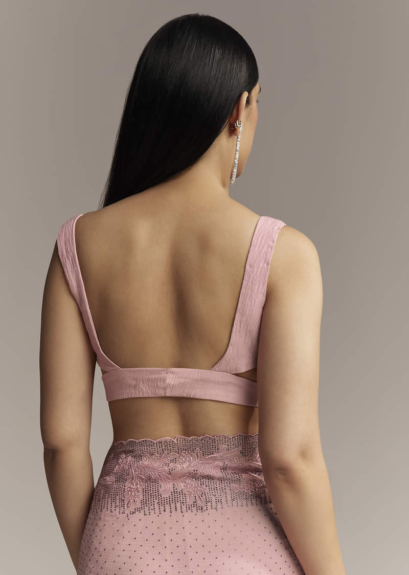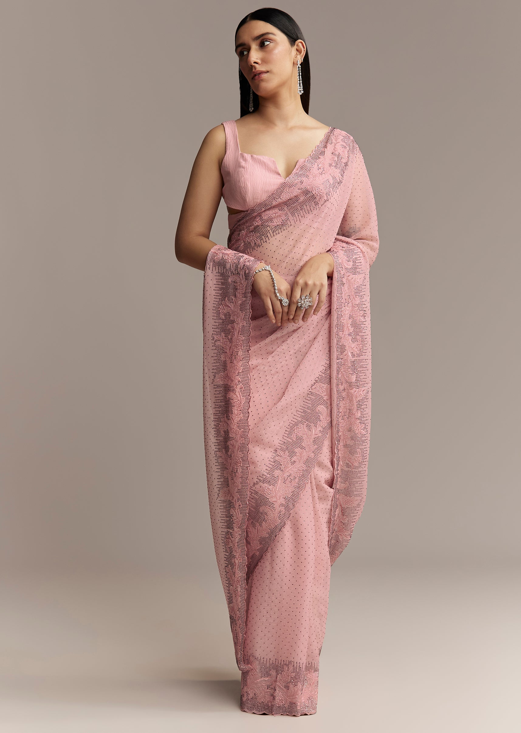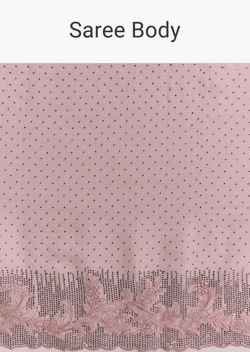 Pink Chiffon Saree With Cutwork Border And Embellished Stones