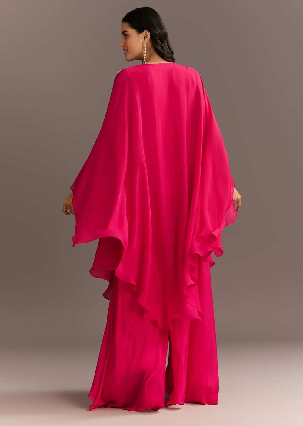 Pink Chinon Cape Style Kurta Palazzo With Zardosi Neckline