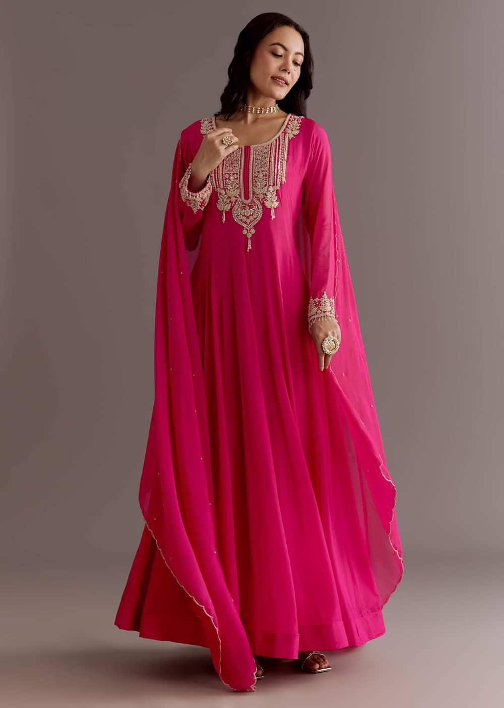 Pink Chinon Thread Sequin Embroidered Anarkali Dupatta Suit
