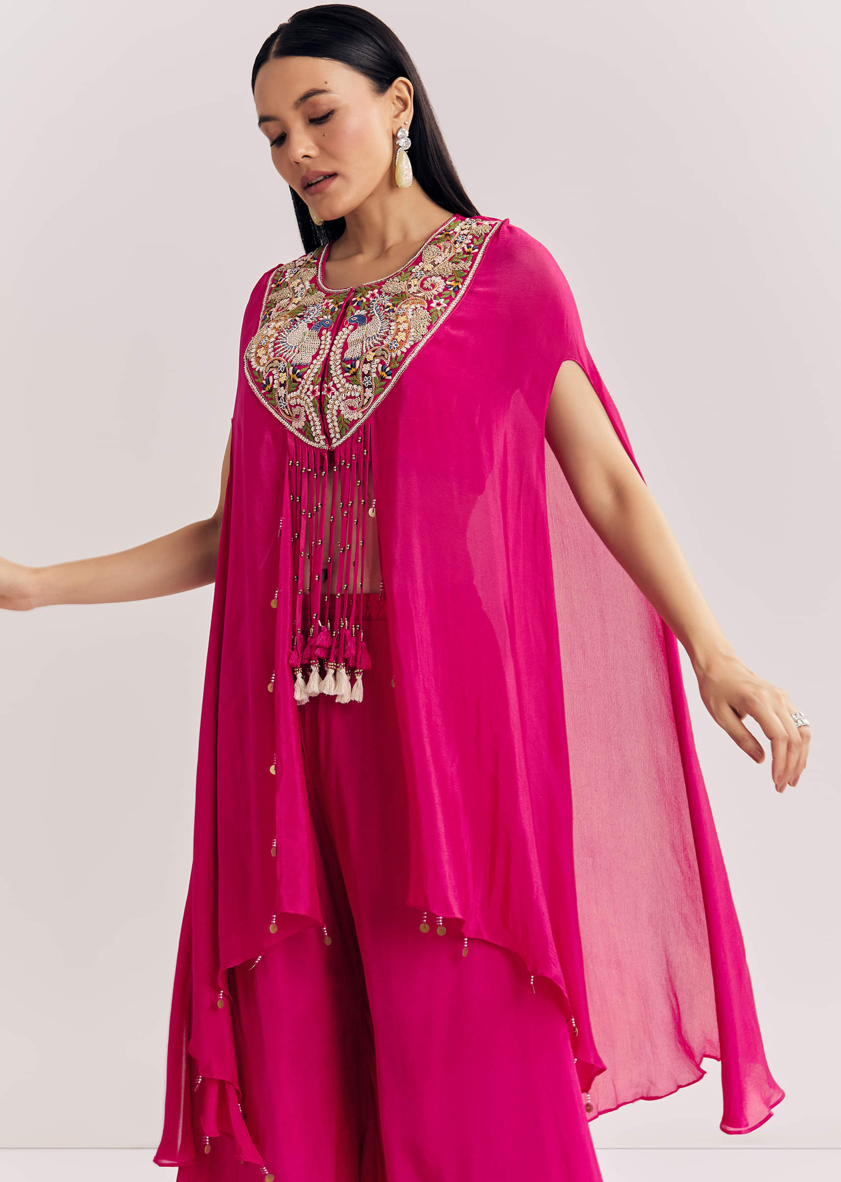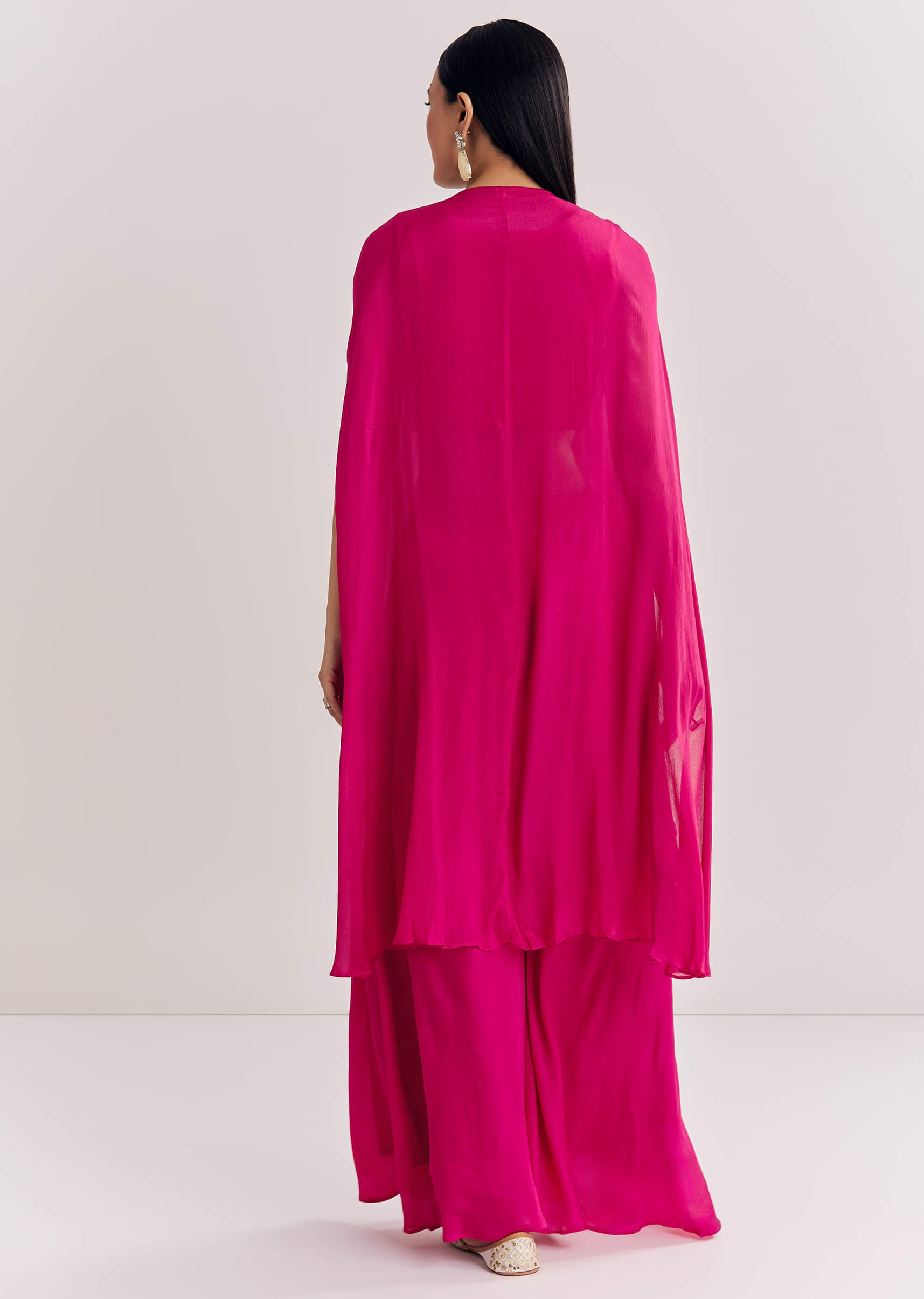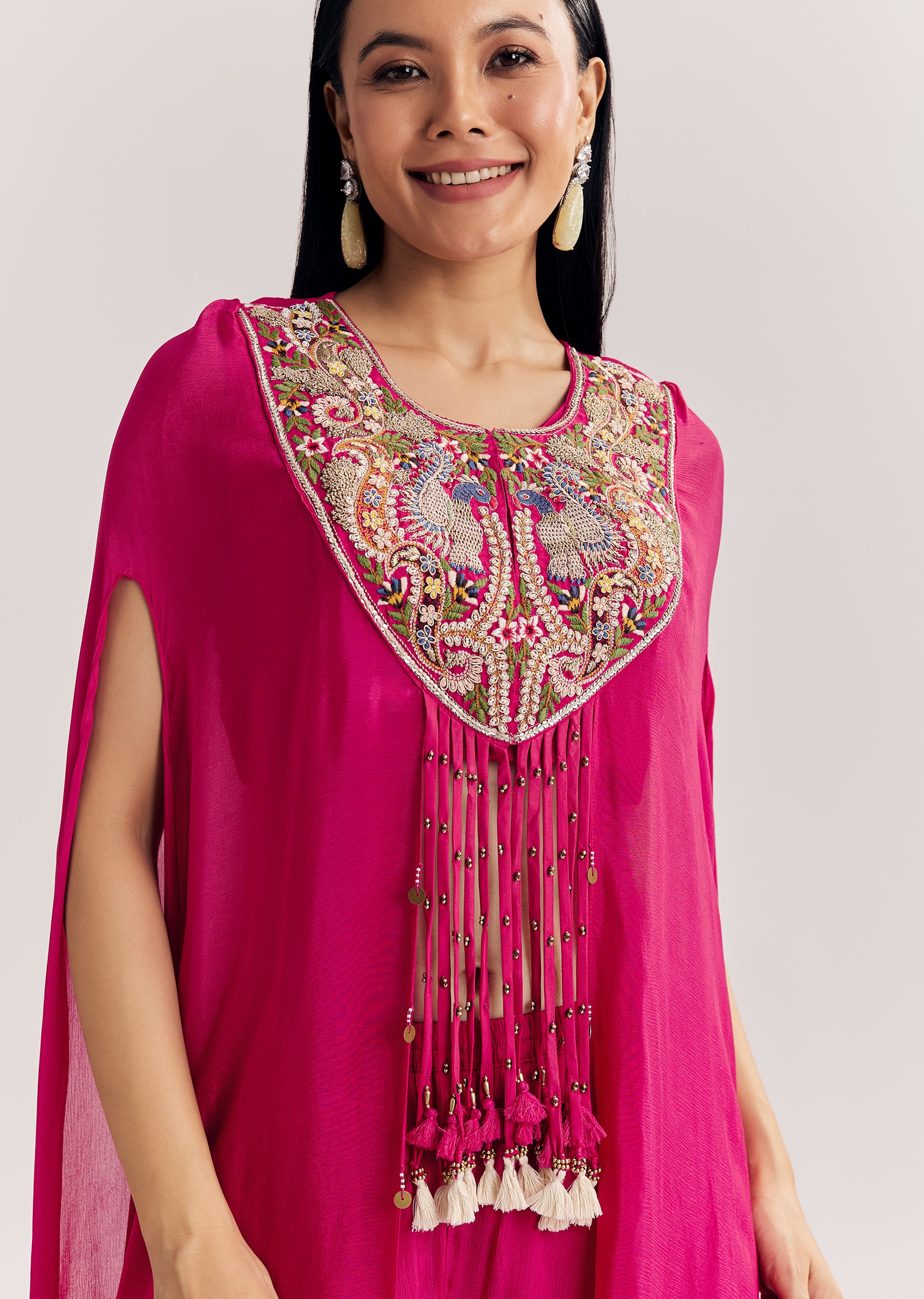 Pink Chinon Zardosi Threadwork Kaftan Kurta Set