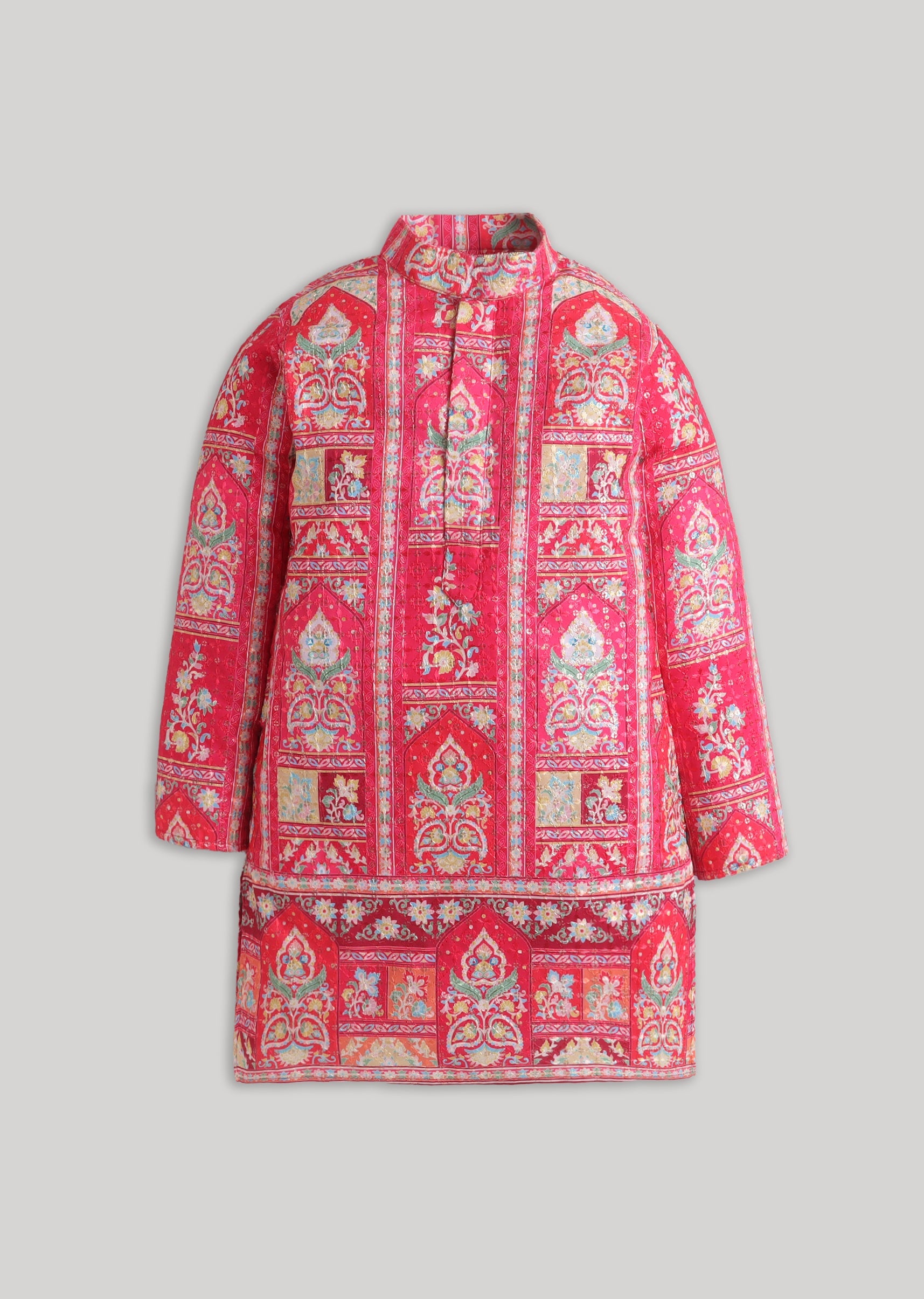 Bright and festive, this cotton kurta set features an abstract-inspired look with sequin and embroidery accents for extra celebration sparkle. Finished with a mandarin collar, full sleeves and a front-button... More Product Details