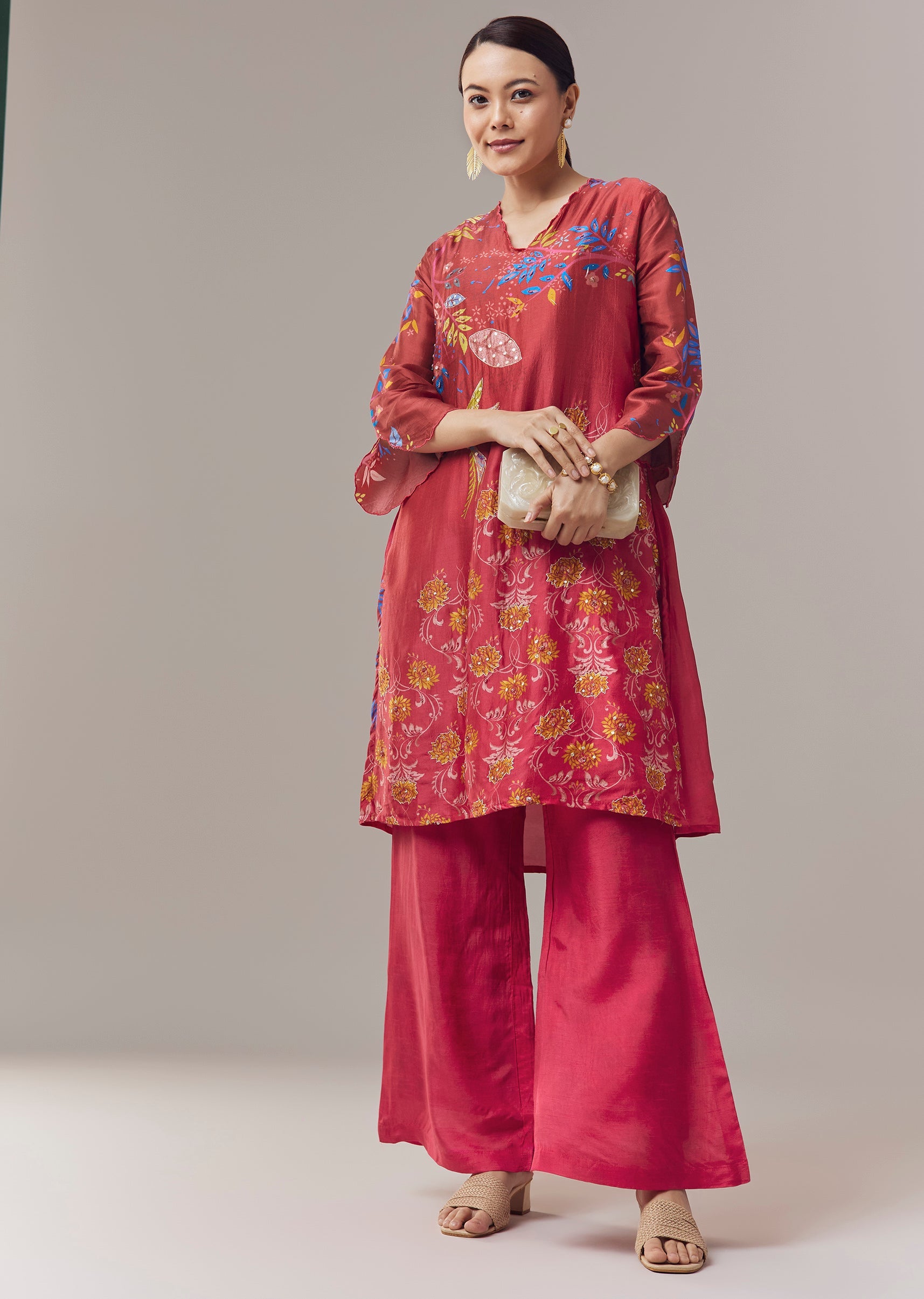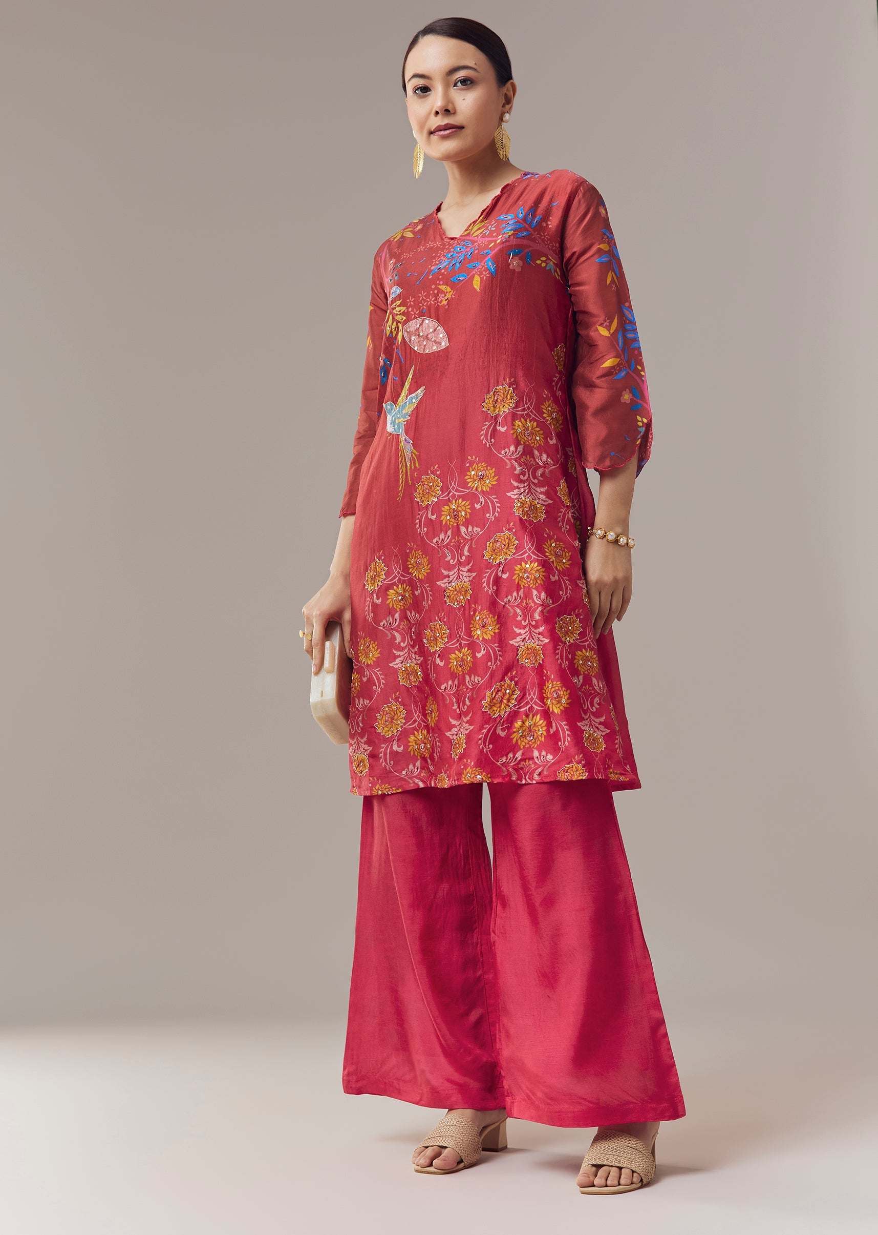 Vibrant and festive, this pink coord set kurti is crafted for celebratory occasions with a focus on intricate detailing. The kurti features delicate floral prints enhanced with beads, zari, and sequins embroidery, adding shimmer and texture to the ensemble. Designed for a flattering and elegant fit, it pairs effortlessly with coordinating bottoms to create a complete festive look. Awarded as the Most Trusted Brand, we're delivering styles you love, just as promised.