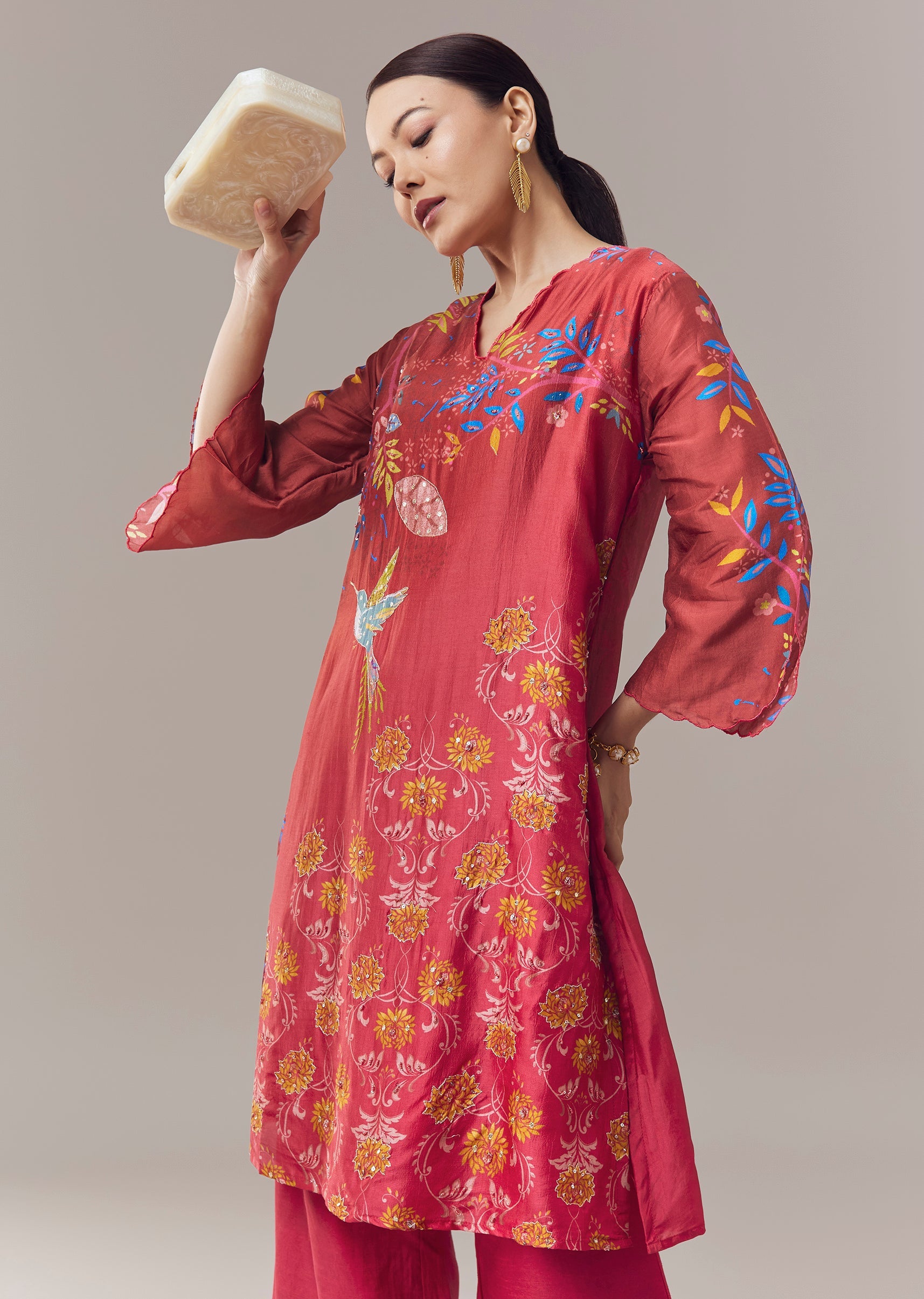 Fit Tips:The kurti should sit comfortably at the shoulders and fall smoothly through the body, allowing ease of movement while maintaining a graceful silhouette.