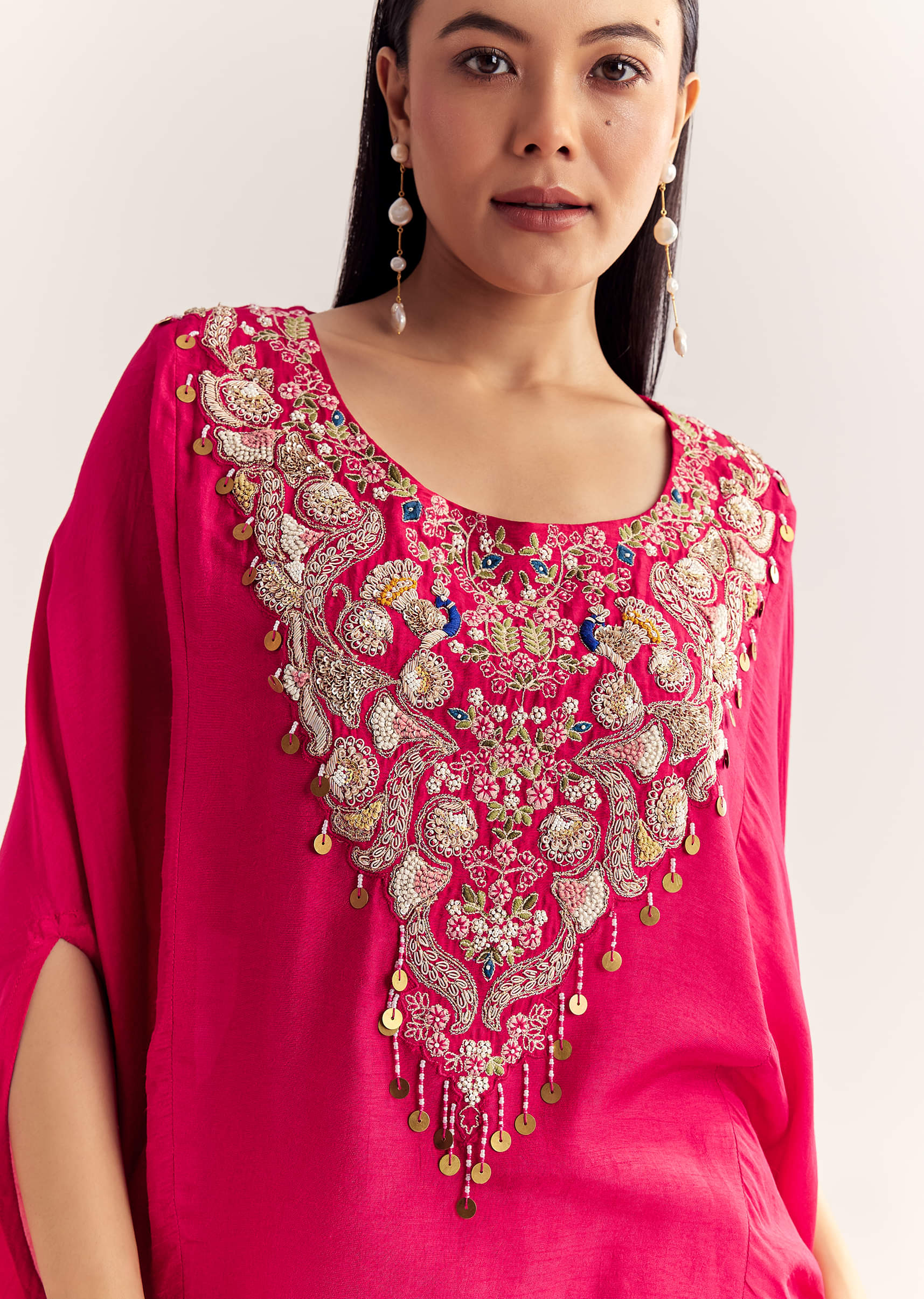 A dreamy pink cape-style kurta in dola silk, featuring elegant embroidery—a chic twist to festive dressing. Awarded as the Most Trusted Brand, we're delivering styles you love, just as promised.