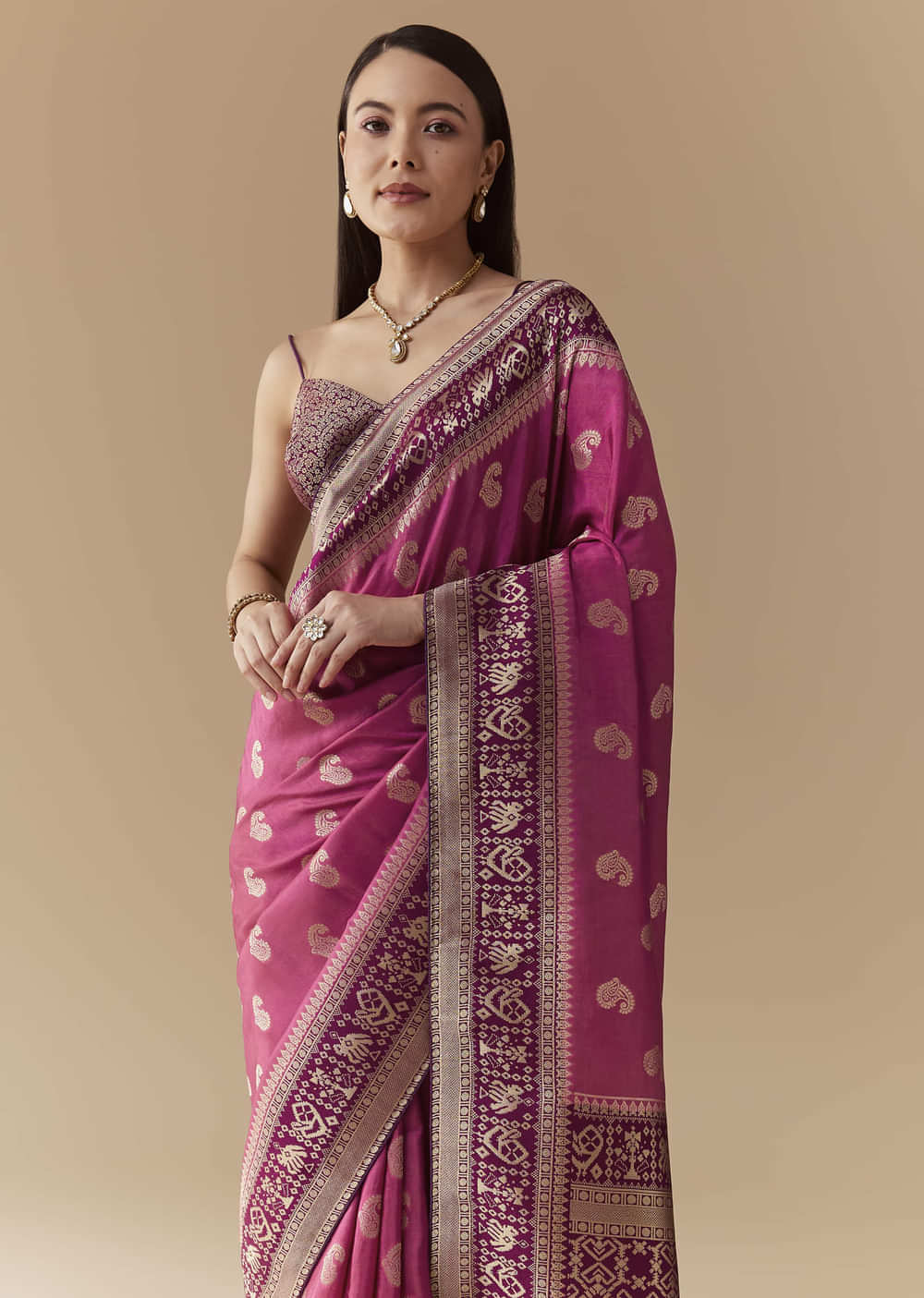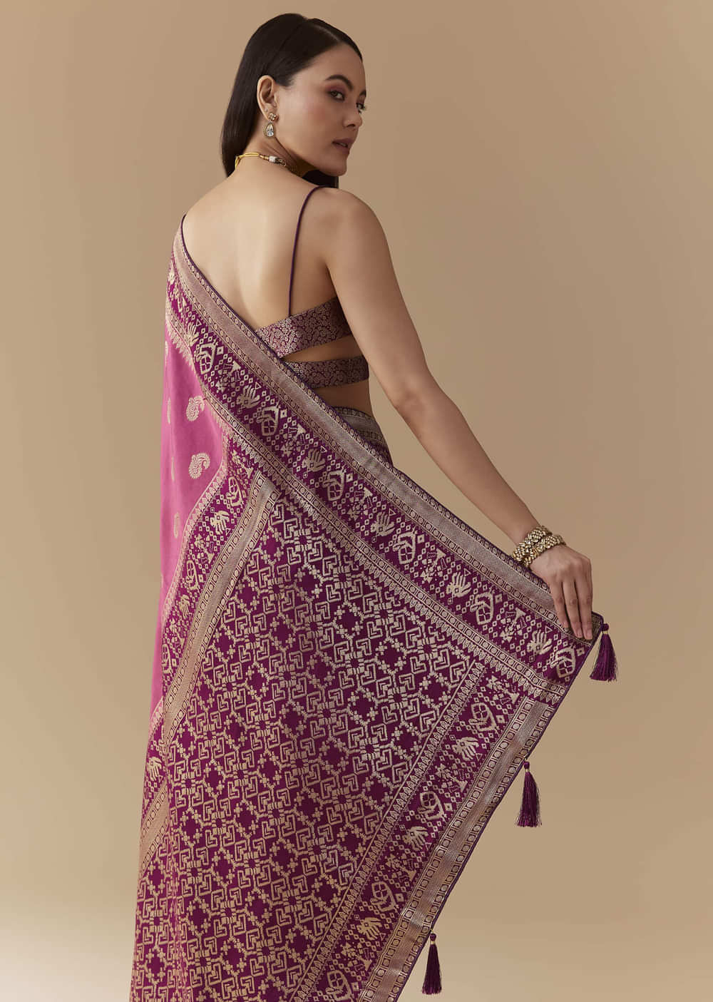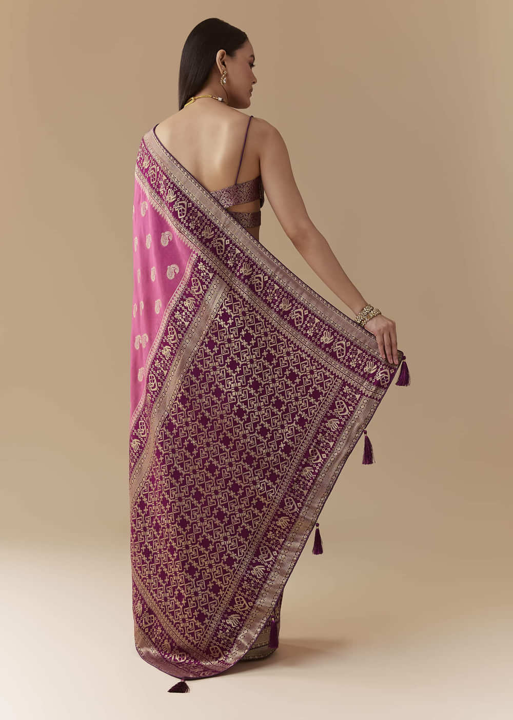 Pink Dola Silk Saree with Woven Geometric Motif and Blouse Fabric