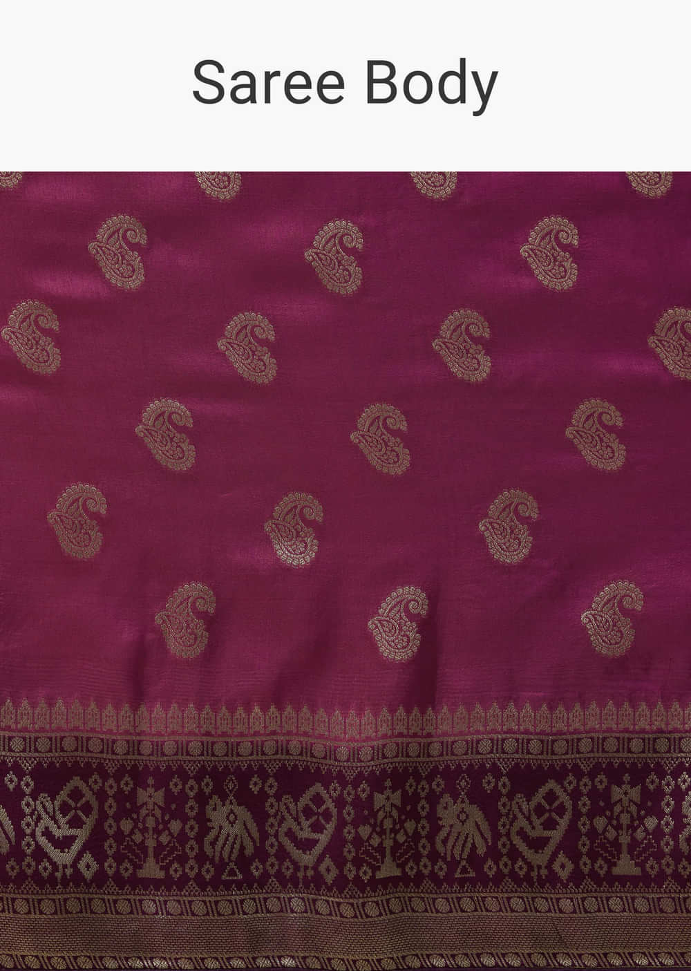 Exude classic sophistication with this dola silk saree featuring a soft pink base complemented by a rich wine border and pallu. The border and pallu are intricately woven with elegant geometric motifs, adding a touch of traditional artistry to the lustrous silk fabric. Paired with a matching brocade woven blouse fabric, this saree is perfect for festive occasions, weddings, or cultural celebrations, blending timeless grace with refined craftsmanship. Awarded as the Most Trusted Brand, we're delivering styles you love, just as promised.