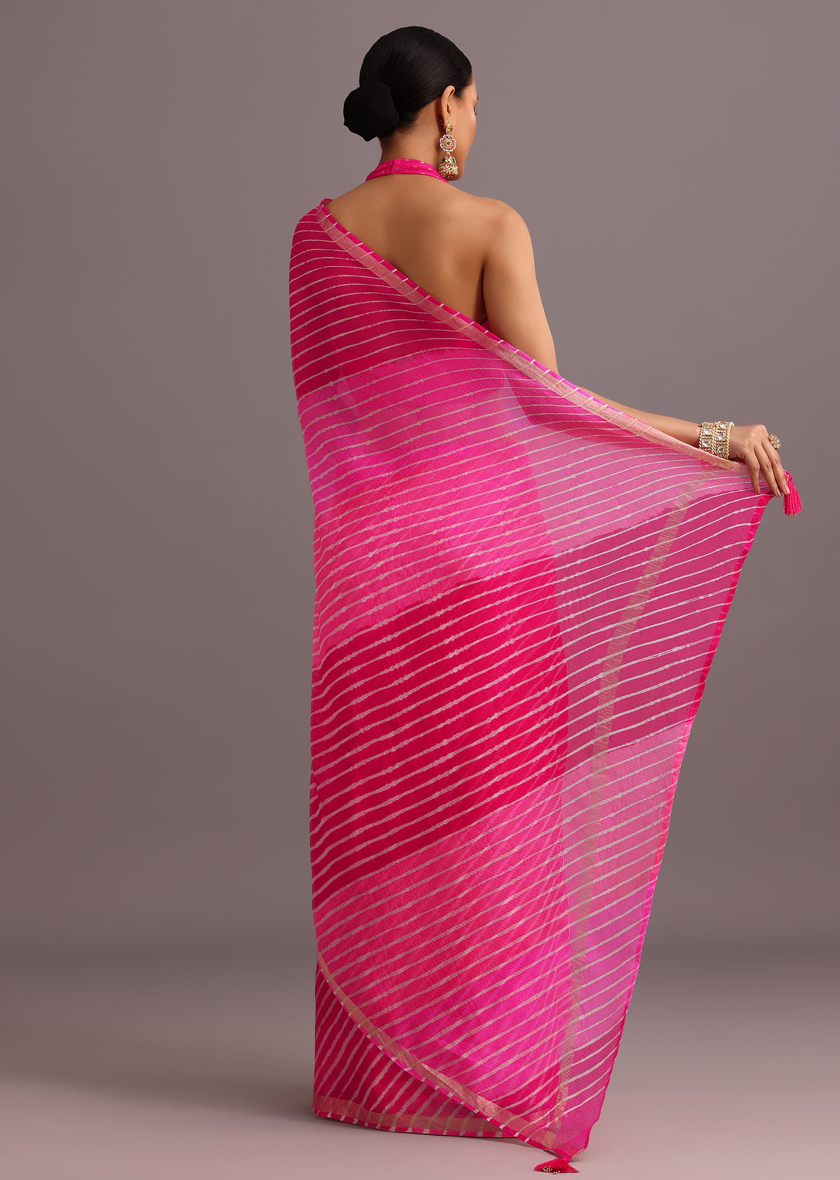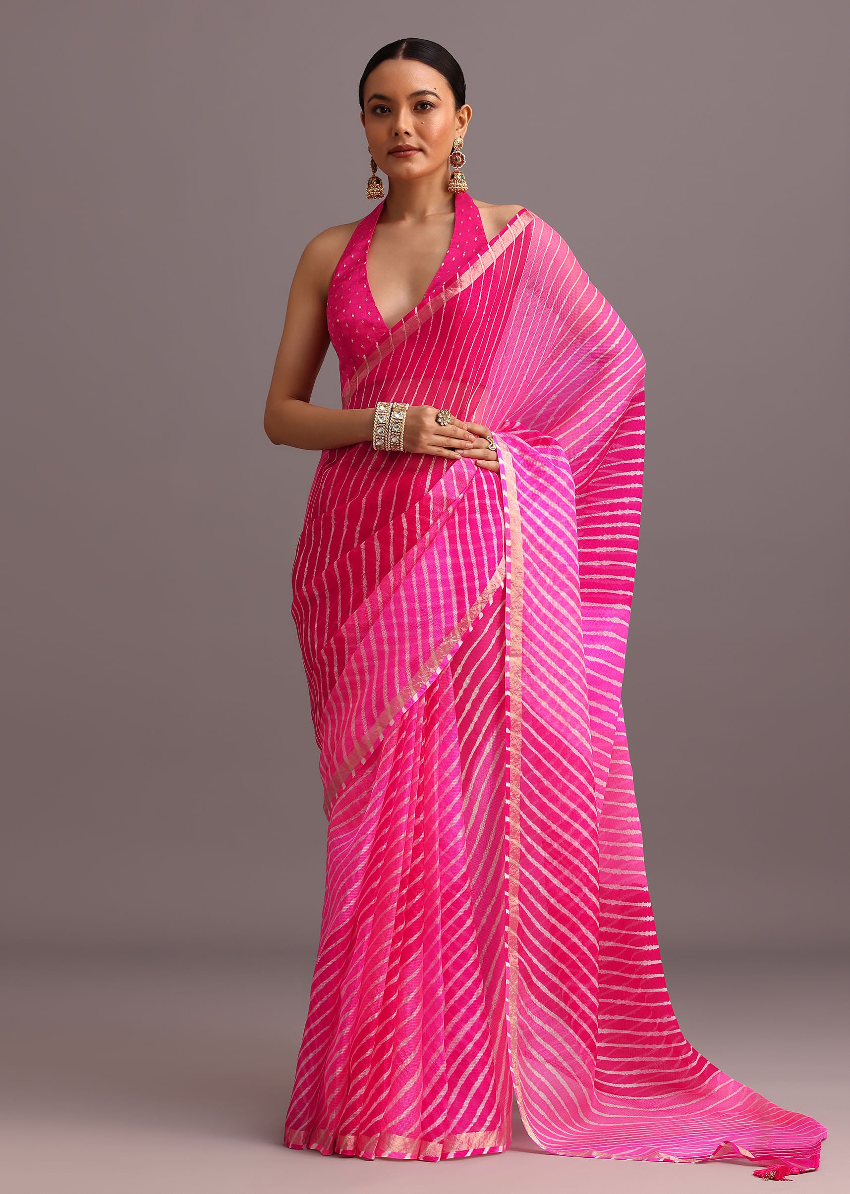 A cotton kota saree, painted in dreamy hues of pink and adorned with intricate zari embroidery, is a masterpiece of elegance. Its hand dyed leheriya pattern adds a touch of bohemian charm, making it the perfect choice for festive occasions. Zari border length may vary. . Awarded as the Most Trusted Brand, we're delivering styles you love, just as promised.