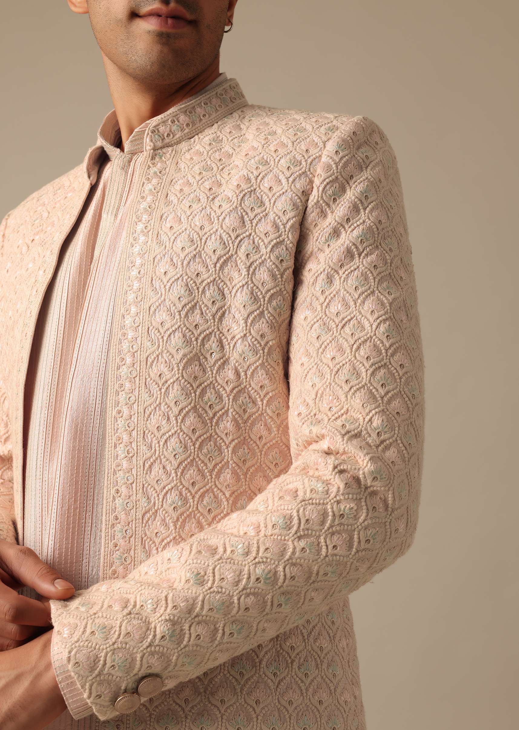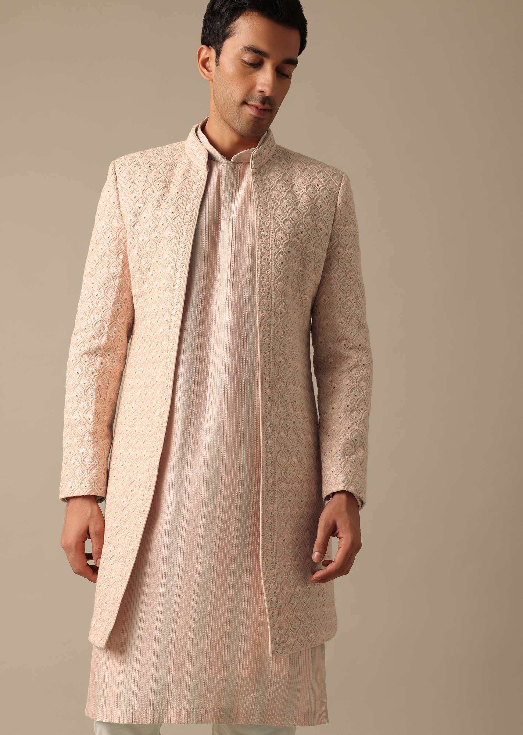 - Introducing our elegant and royal sherwani set, crafted from opulent dupion silk.