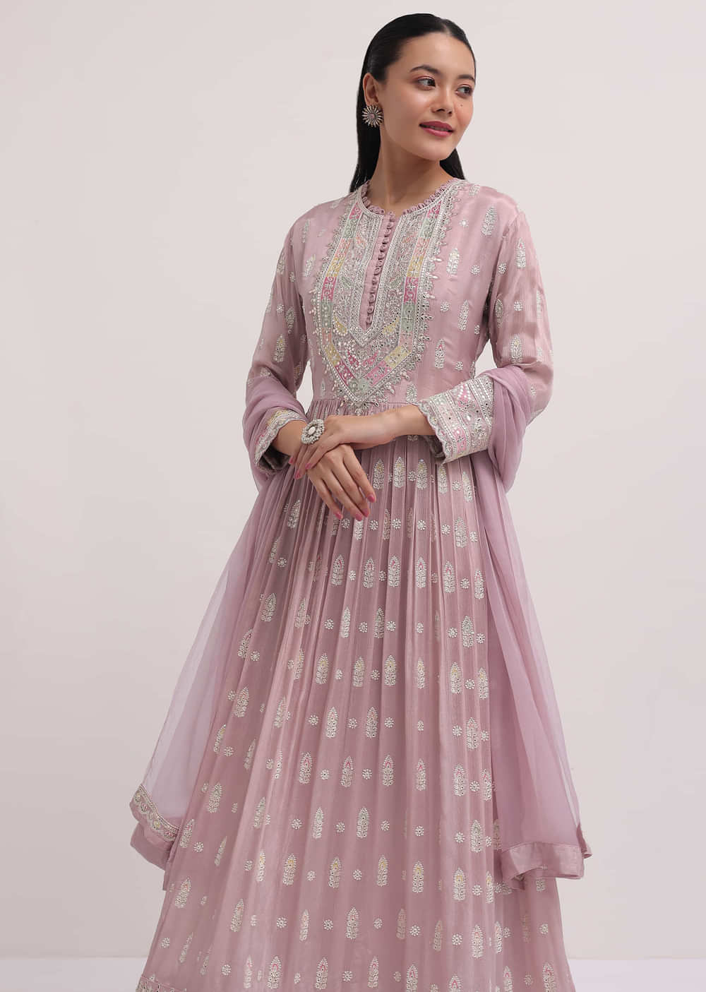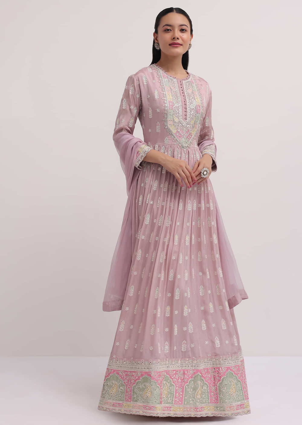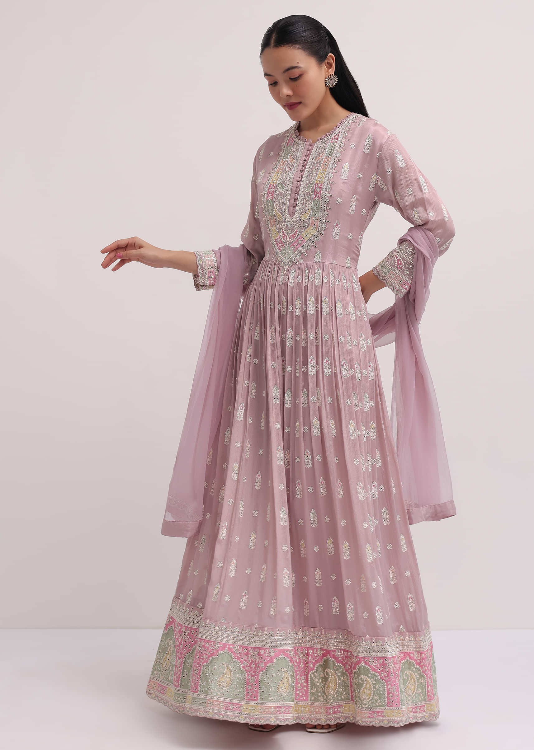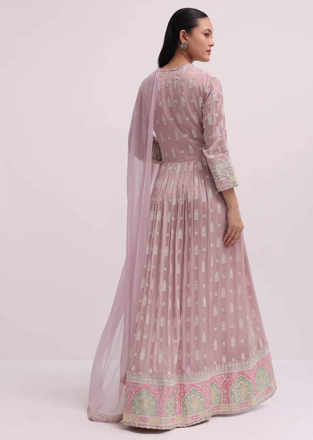 - The anarkali suit comes with a dupatta.