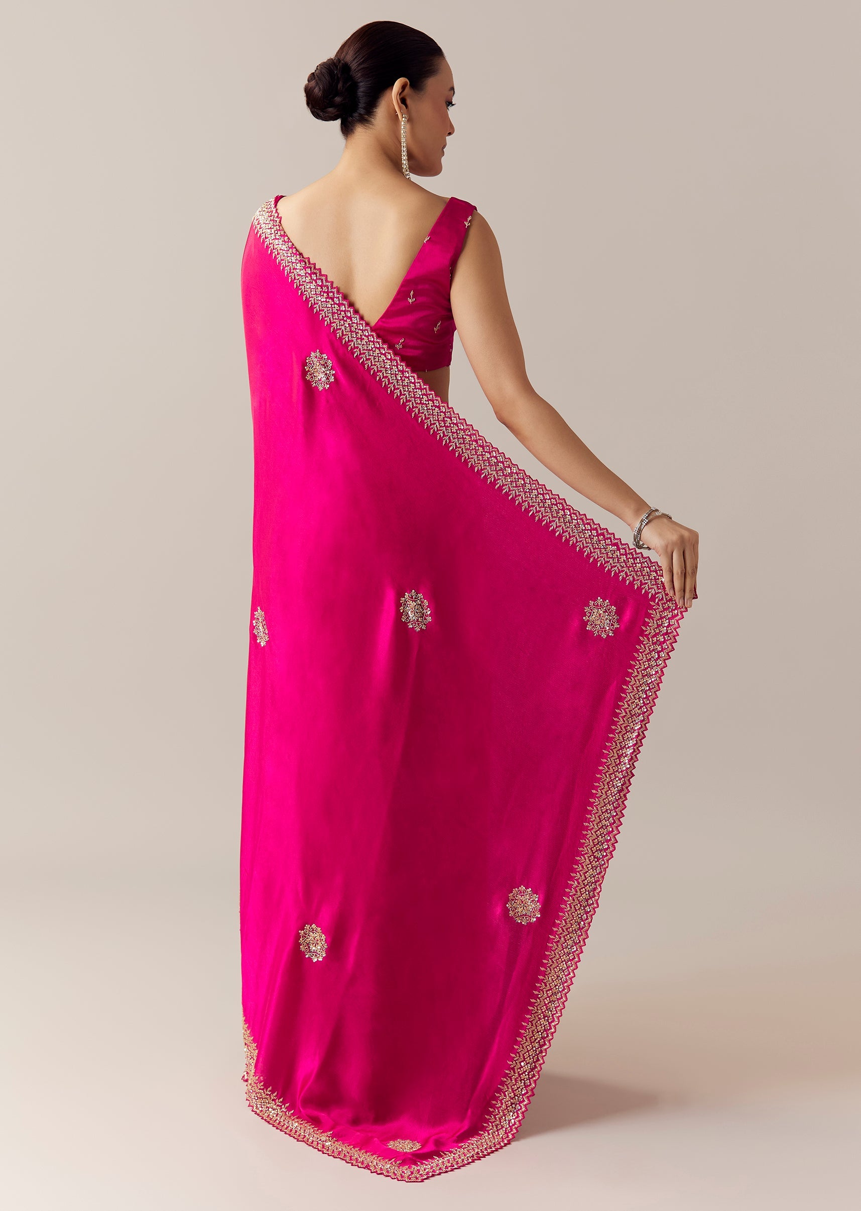 Pink Embroidered Chinon Saree with Unstitched Blouse