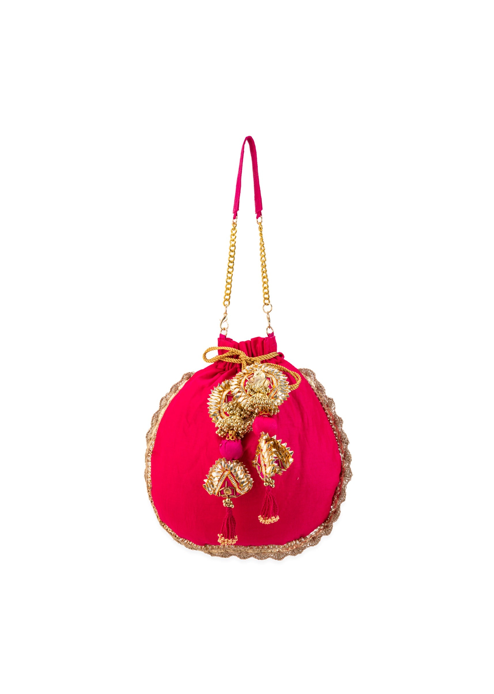 A burst of vibrant pink and intricate embroidery makes this silk potli a lively, festive standout. The classic drawstring design adds a touch of tradition while keeping it chic and easy to style for weddings and celebrations. Lightweight and elegant, it brings instant charm to both ethnic and fusion outfits. Awarded as the Most Trusted Brand, we're delivering styles you love, just as promised.