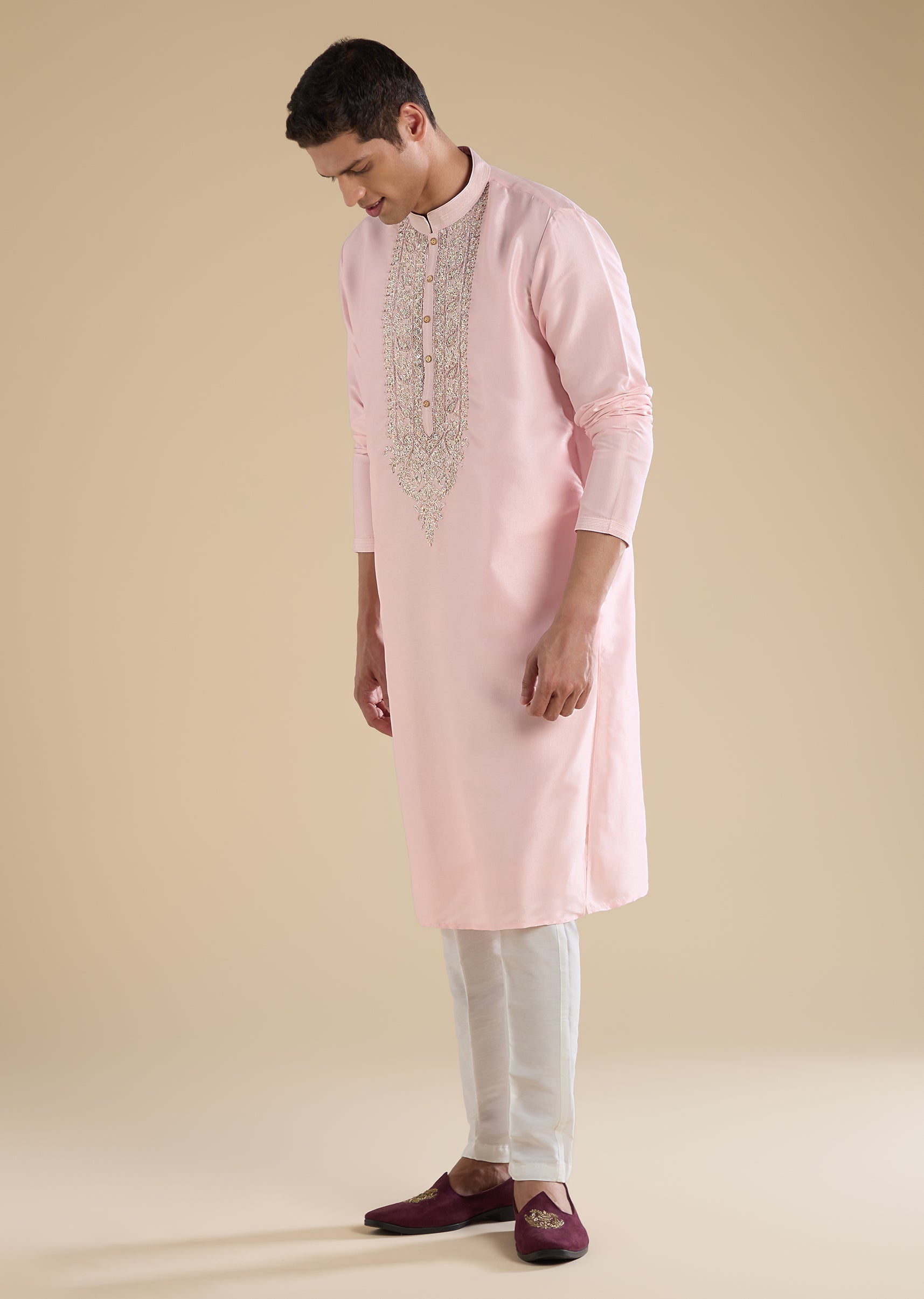 Pink Embroidered Silk Kurta Set