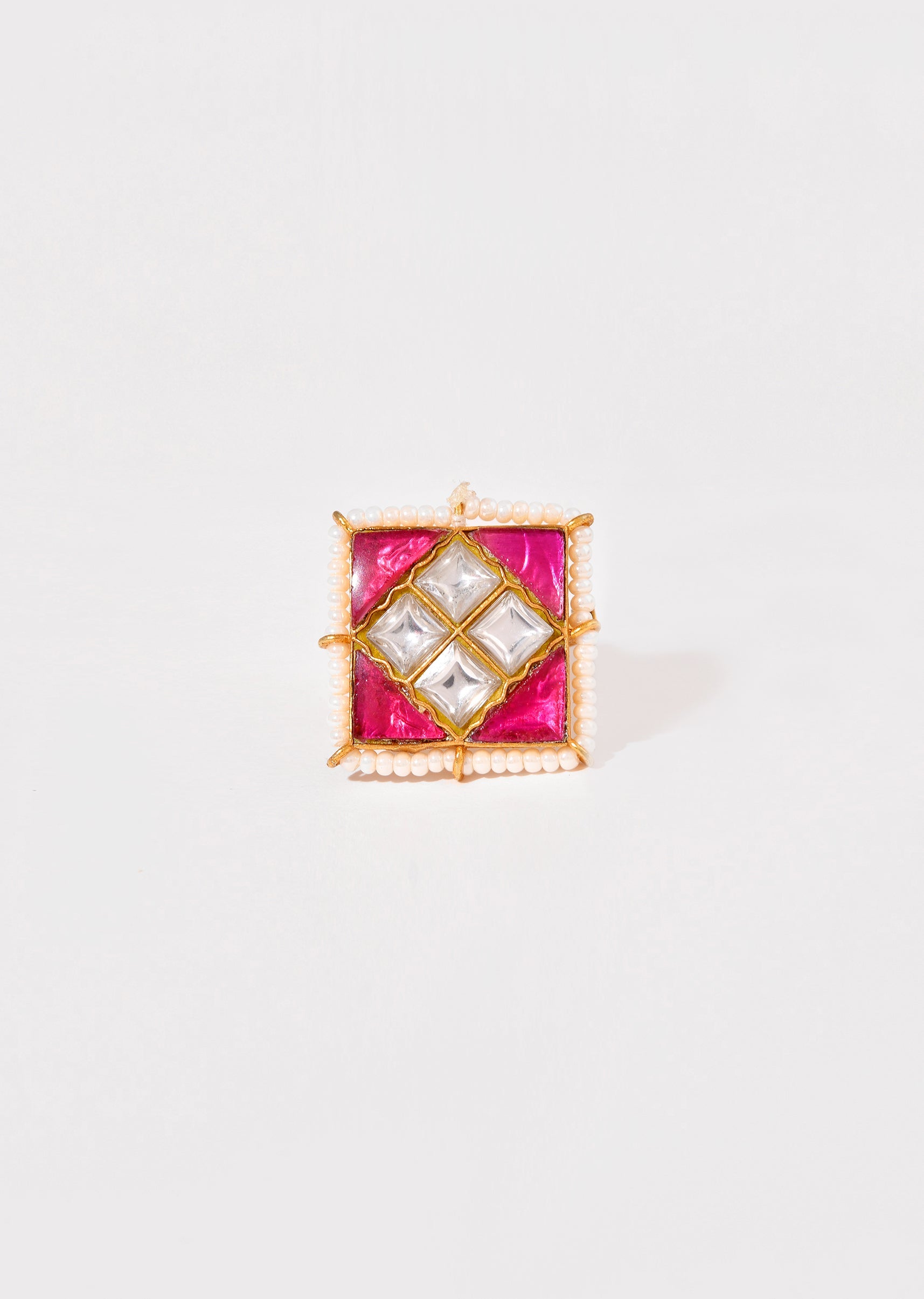 Pink Geometric Kundan Ring