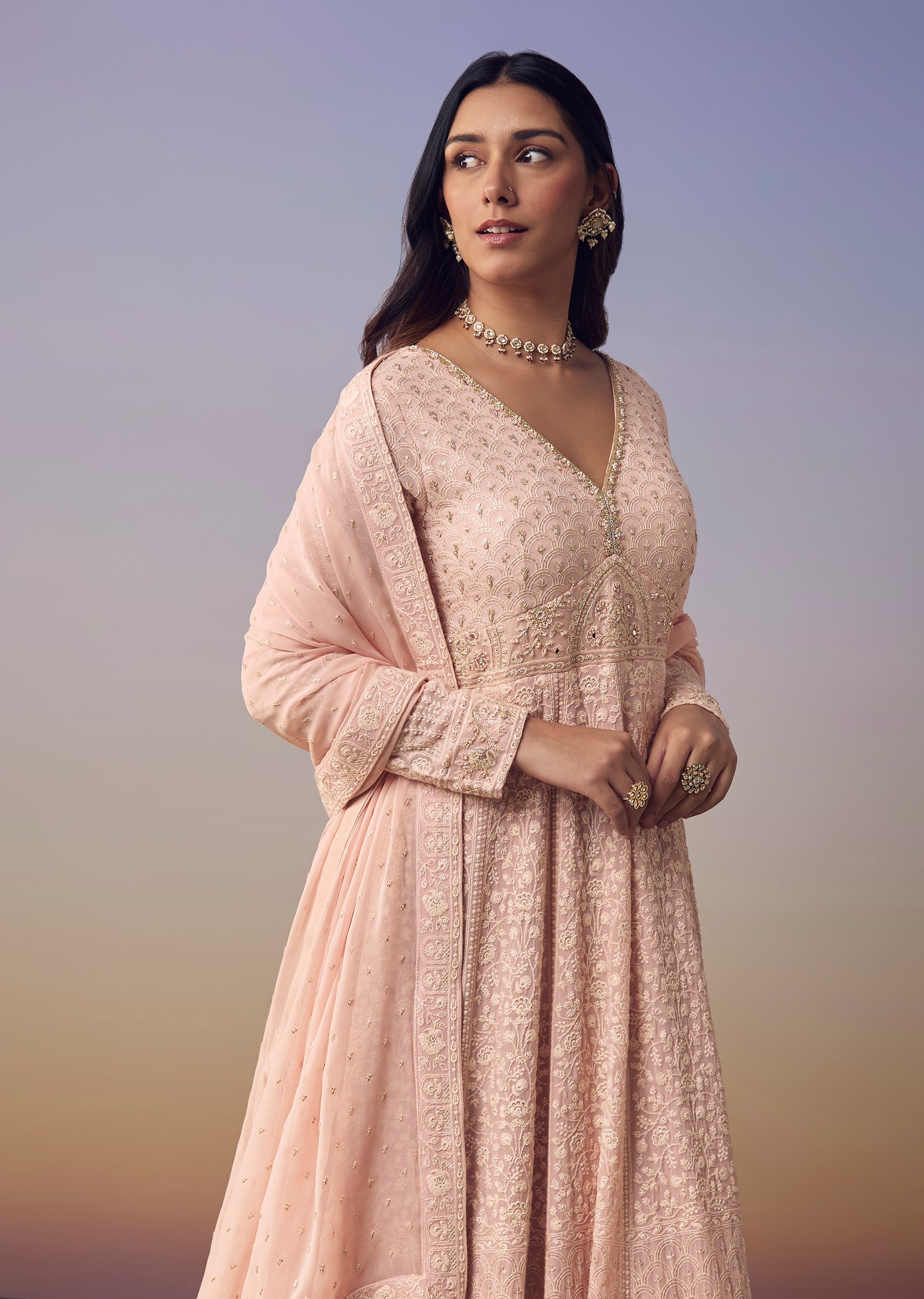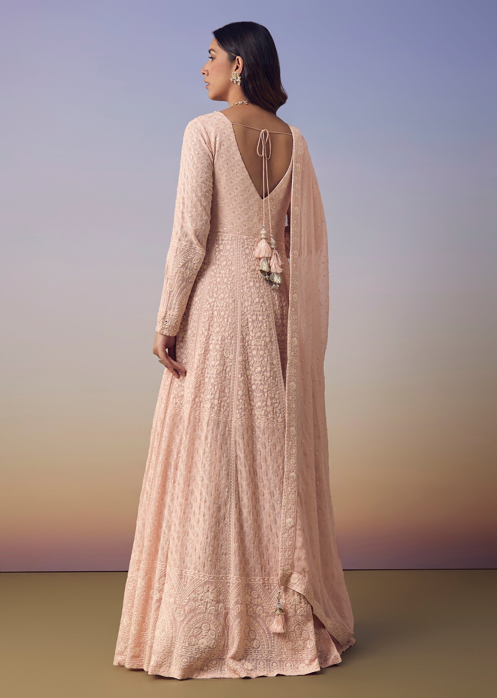 Pink Georgette Lucknowi Anarkali with Dupatta