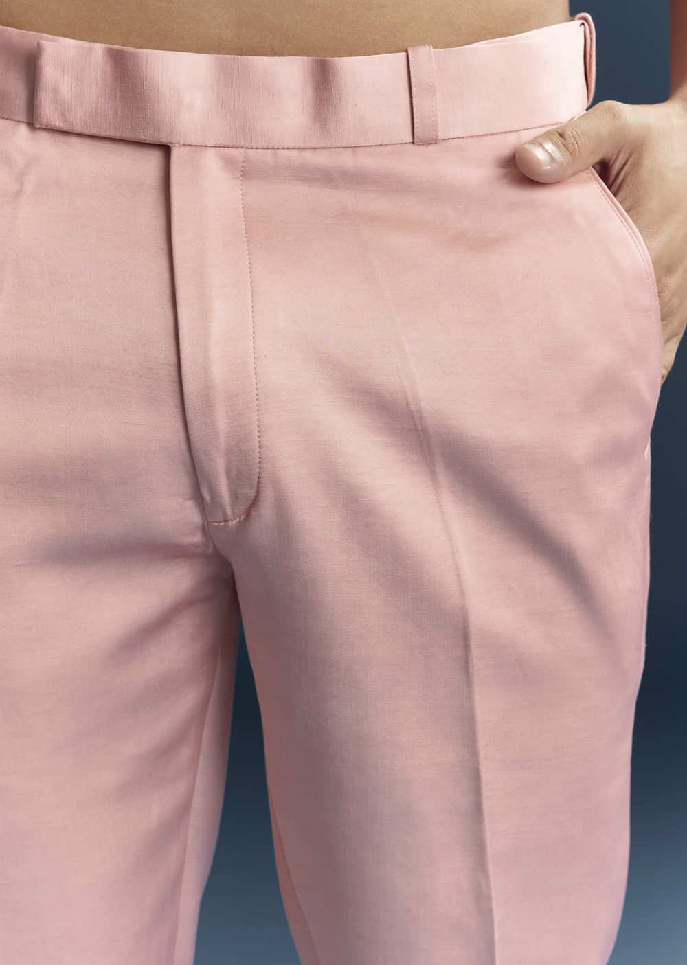 Pink Imported Linen Kurta Jacket Set For Men With Aari Embroidery