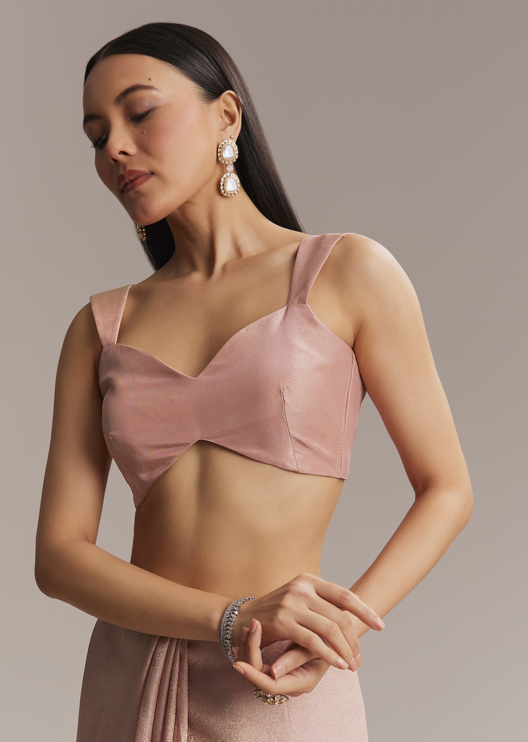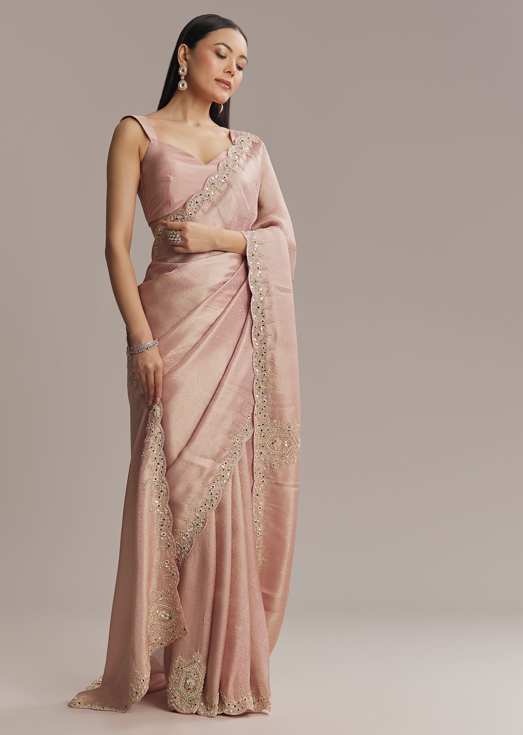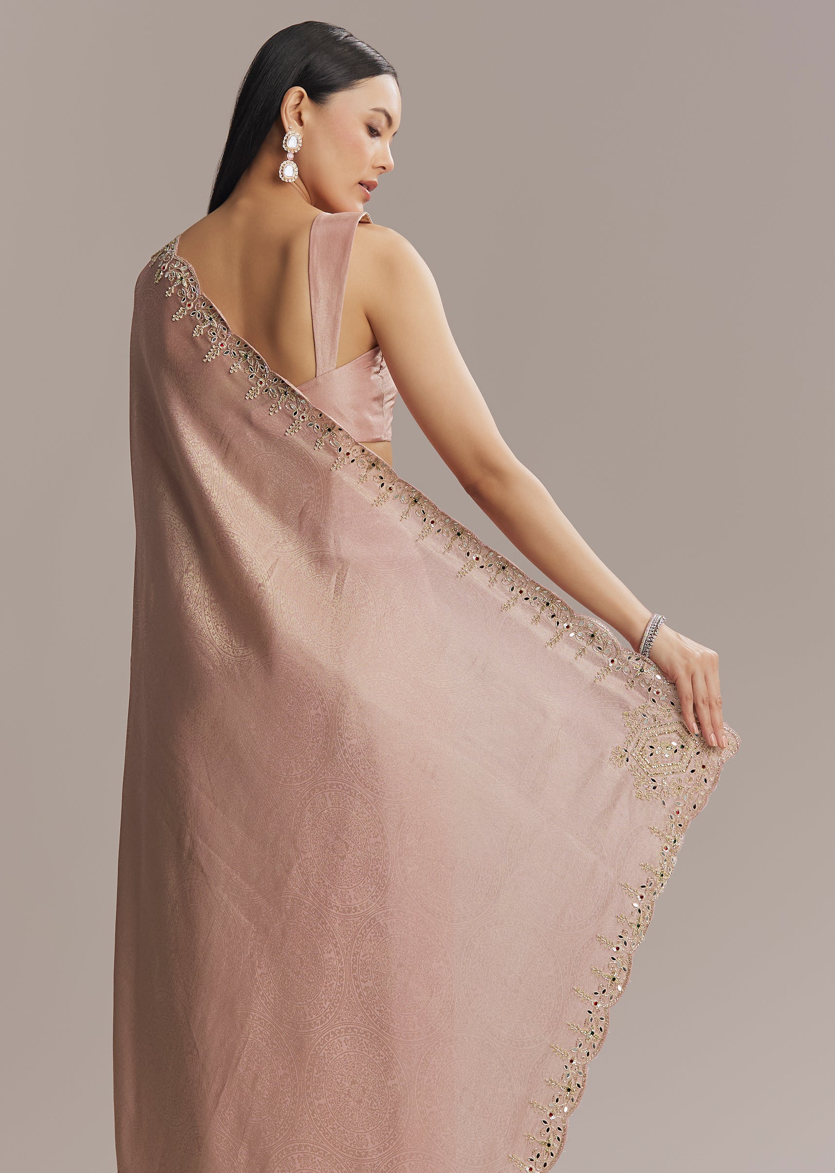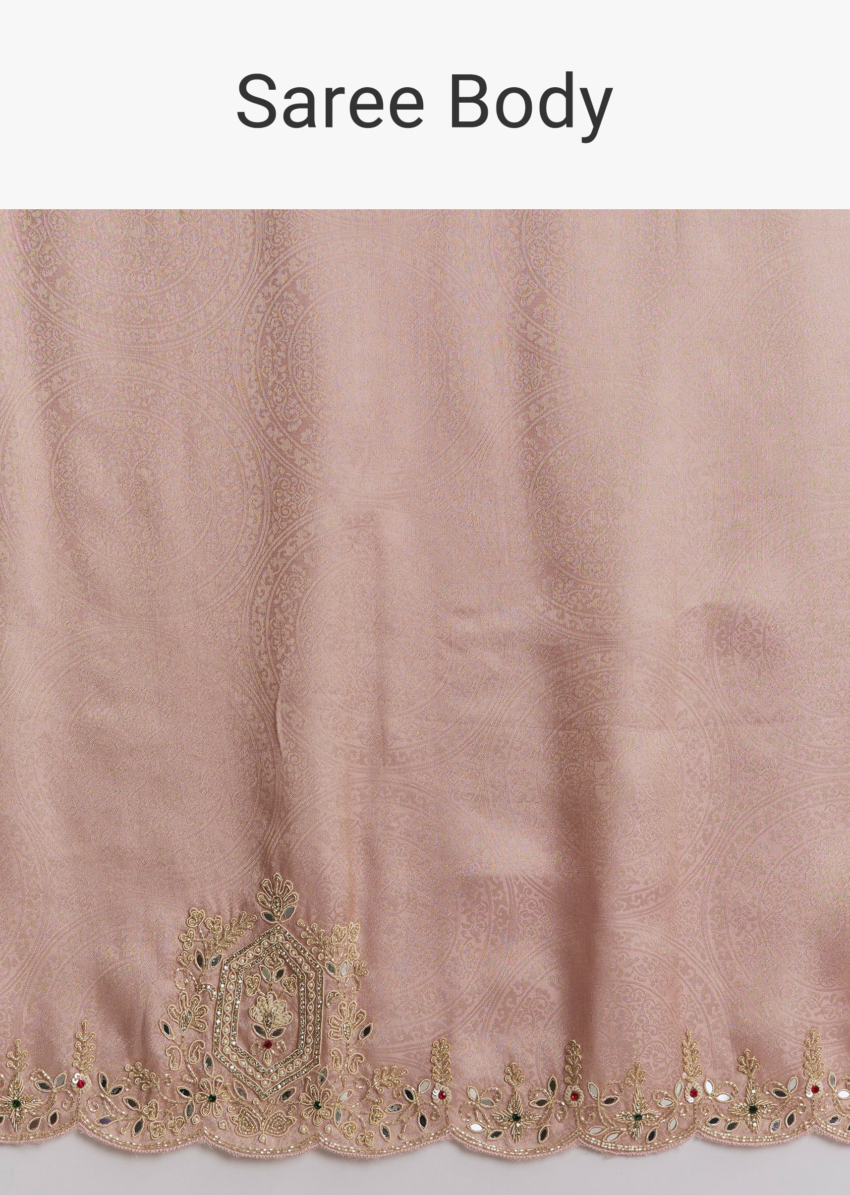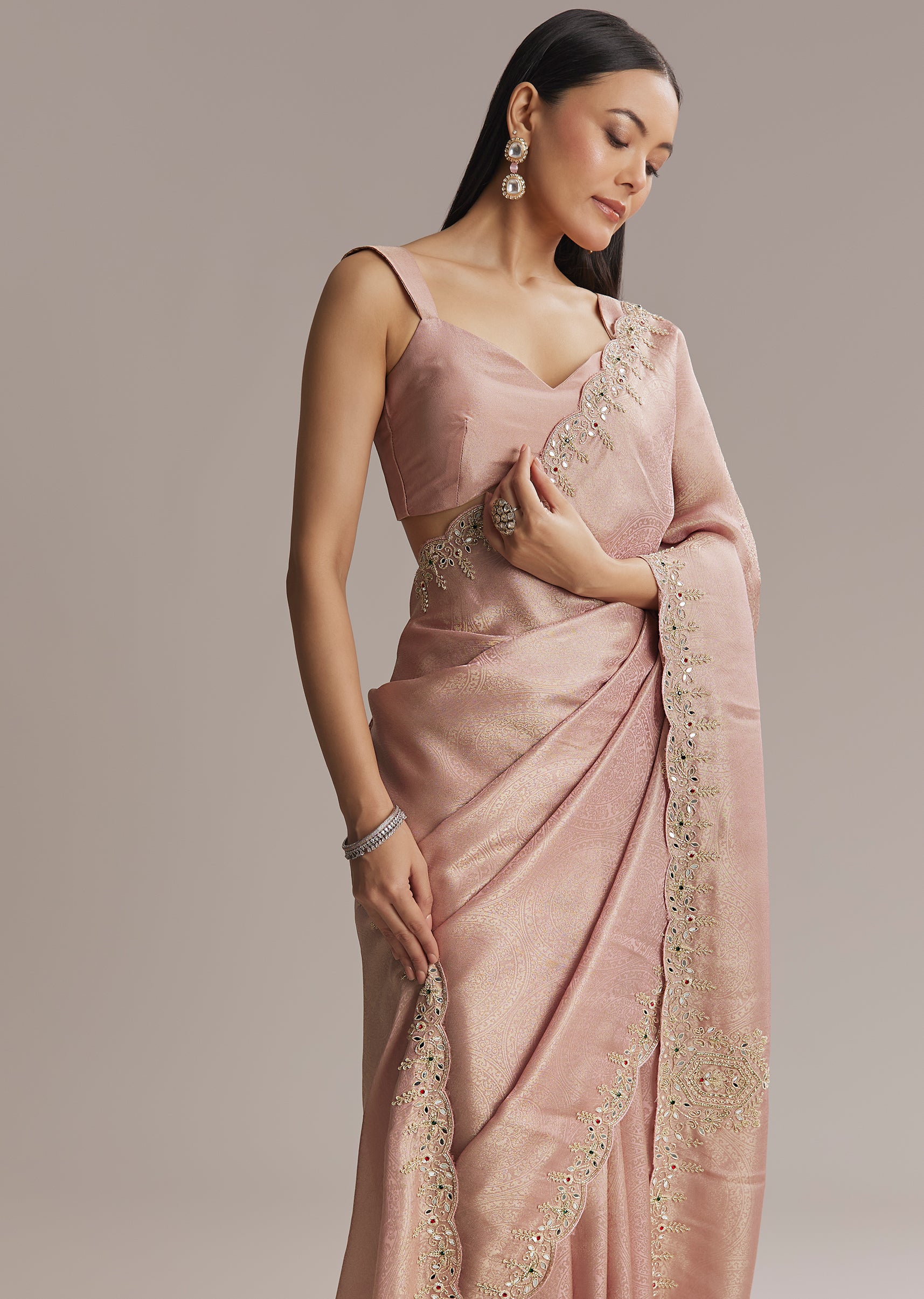 Pink Jacquard Saree With Zardosi And Stone Embroidery