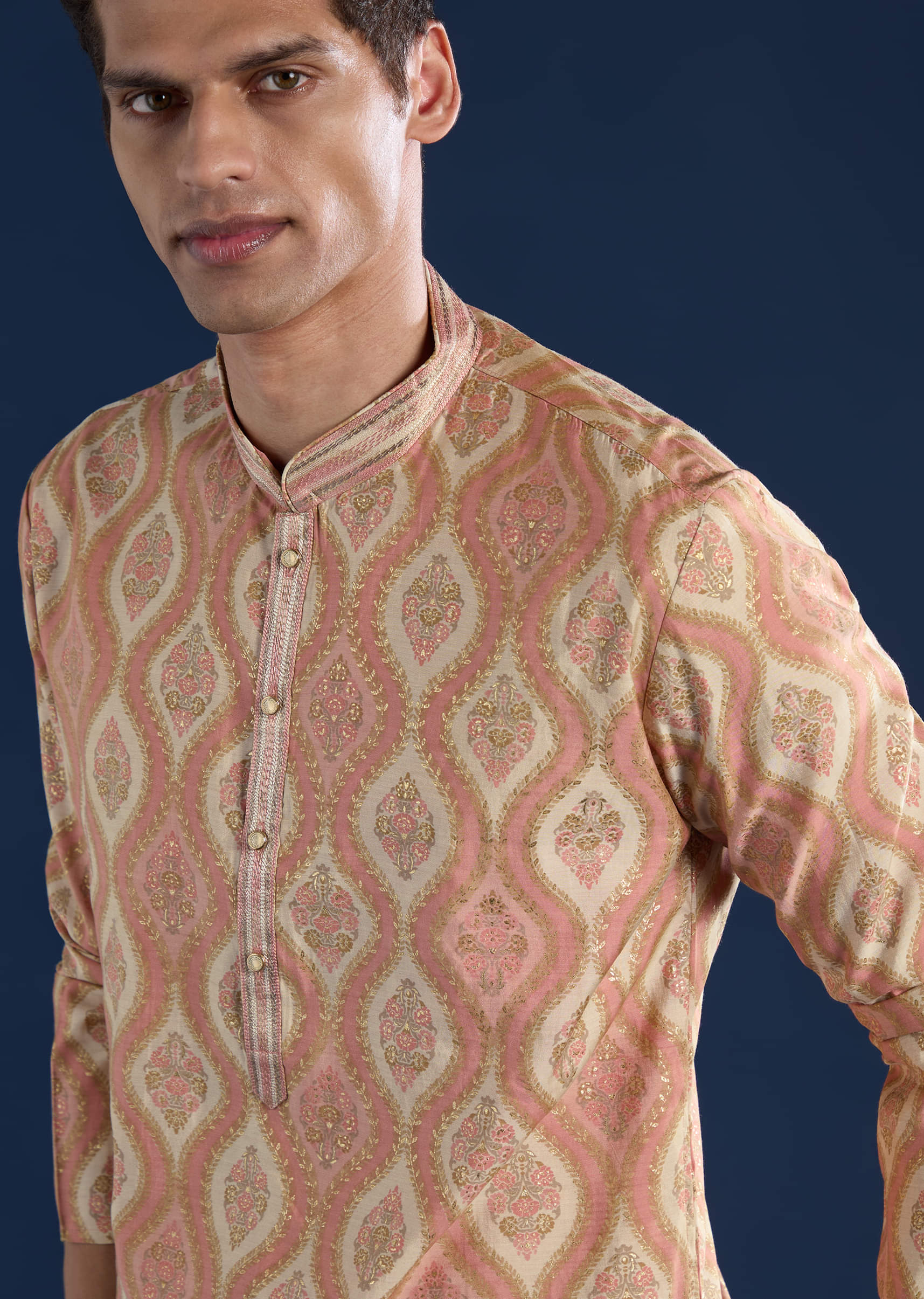 Soft, elegant, and effortlessly graceful — this pink silk printed kurta set brings together modern charm and traditional finesse. The lustrous silk fabric enhances the delicate print, creating a subtle... More Product Details
