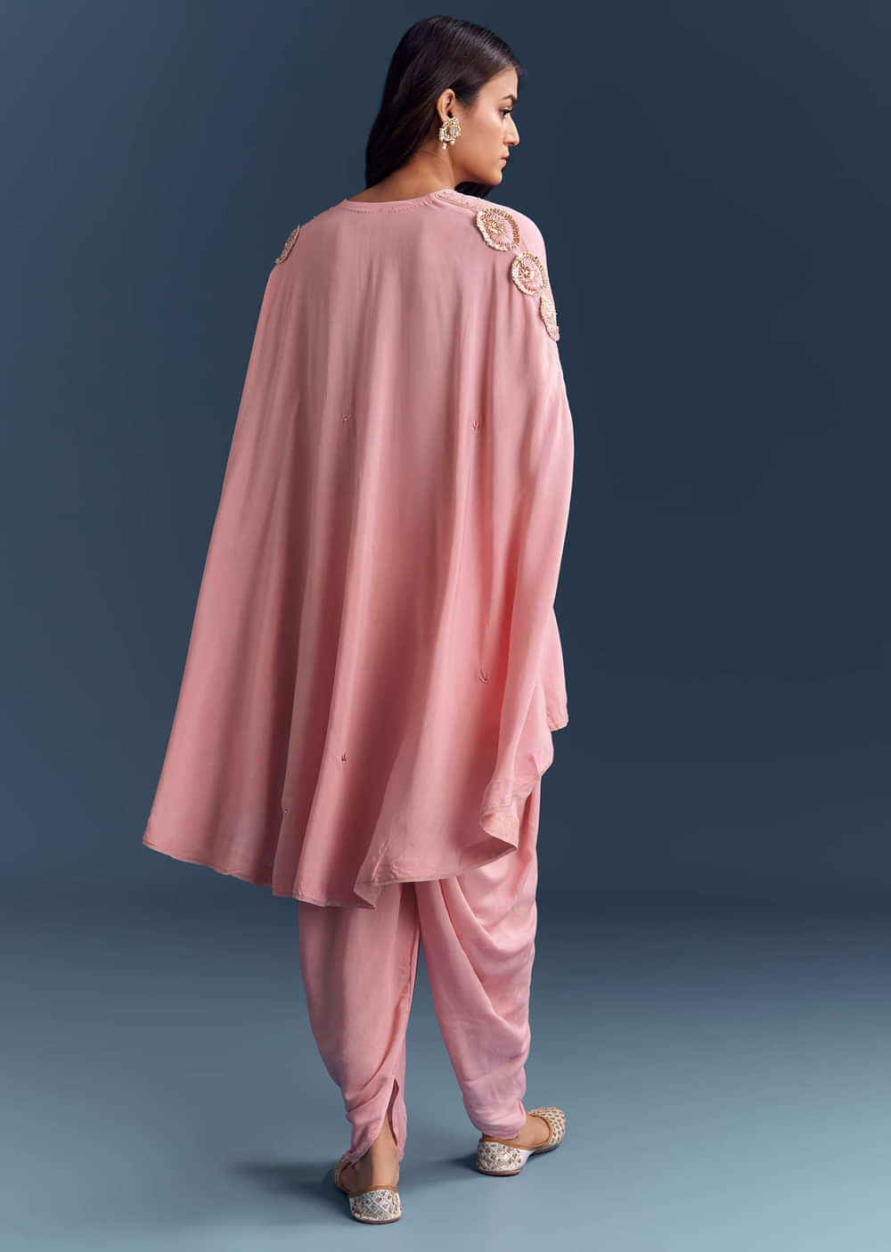 Fit Tips:The cape should feel light on the shoulders while the dhoti sits securely at the waist with room to walk.