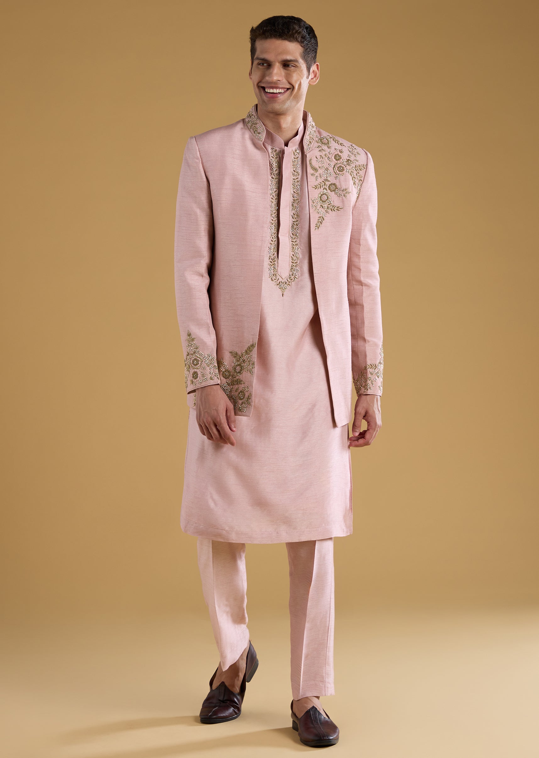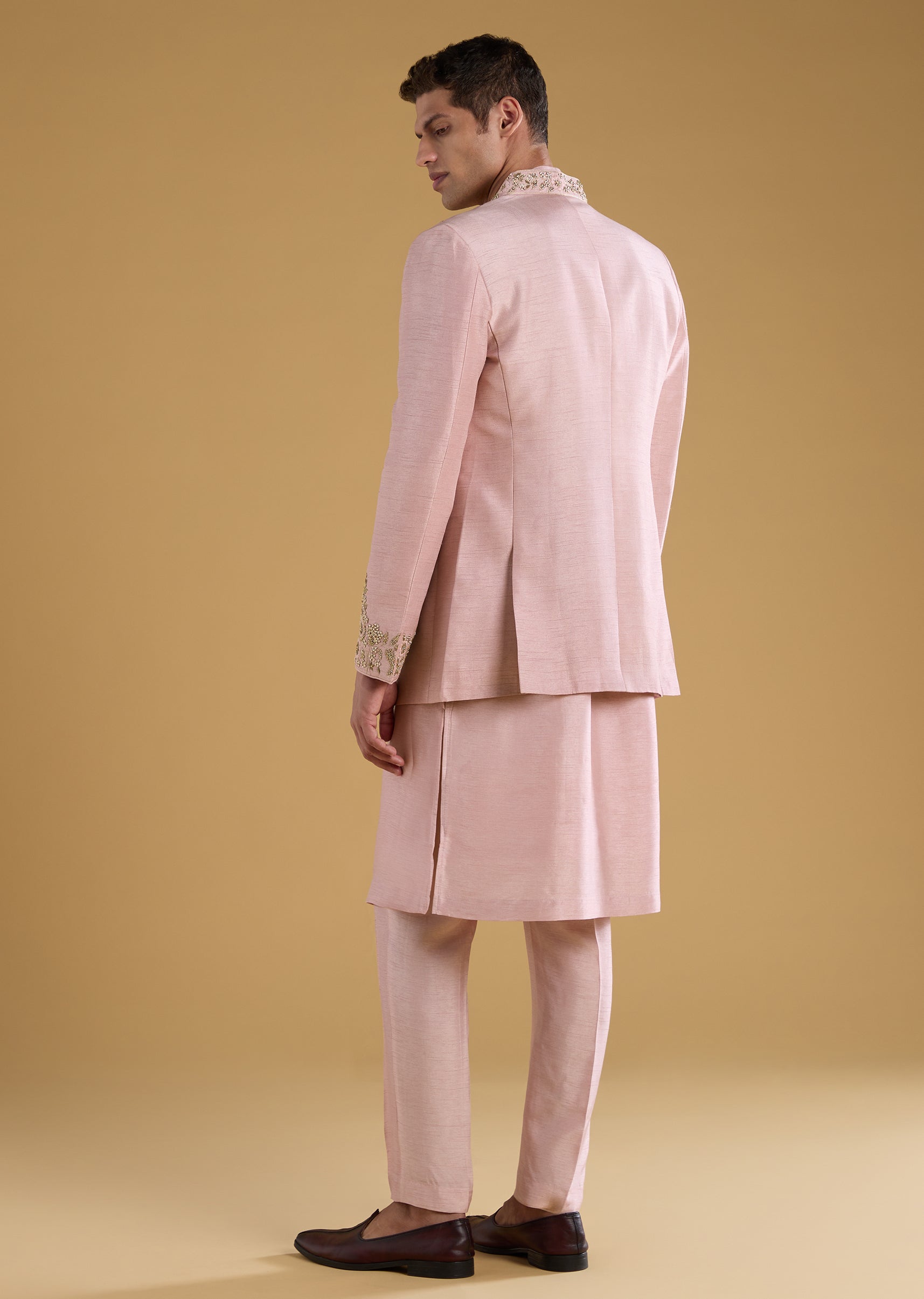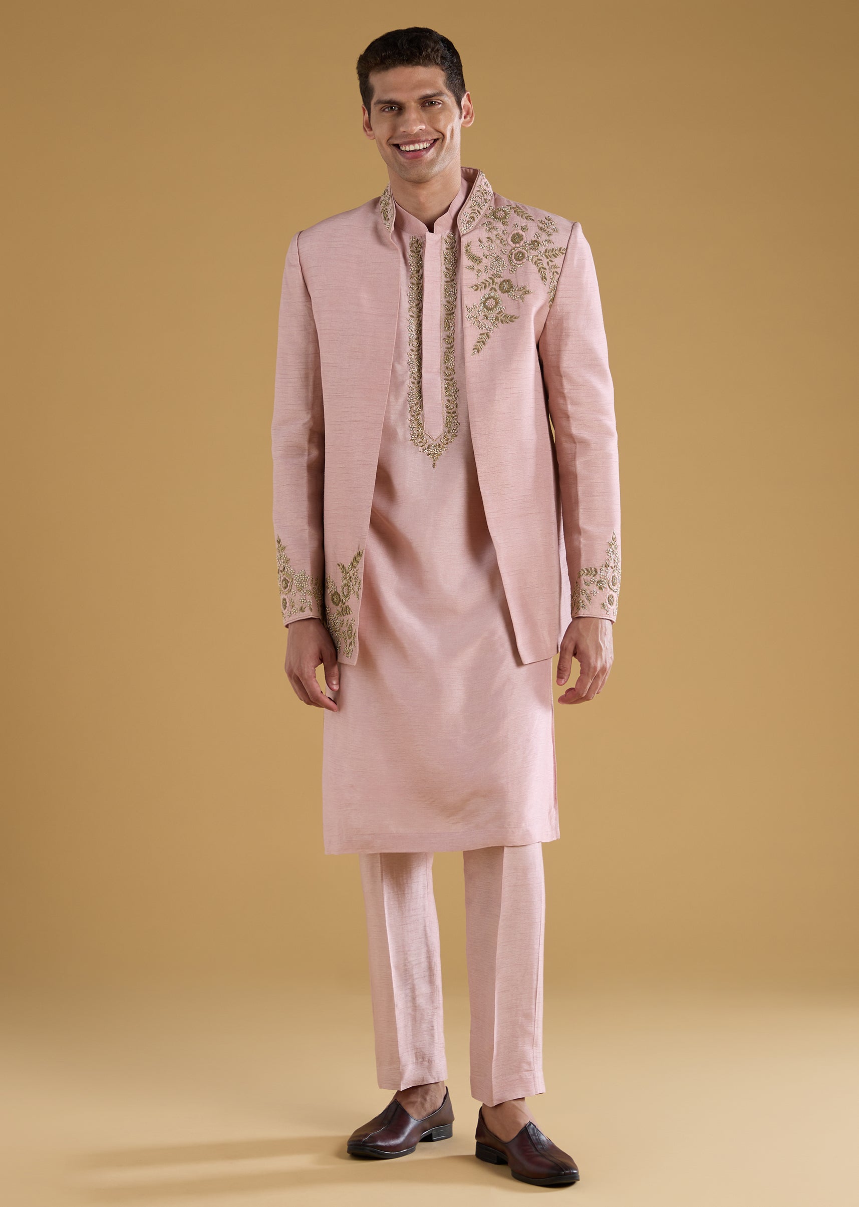 Pink Mysore Silk Mens Jodhpuri Kurta Set