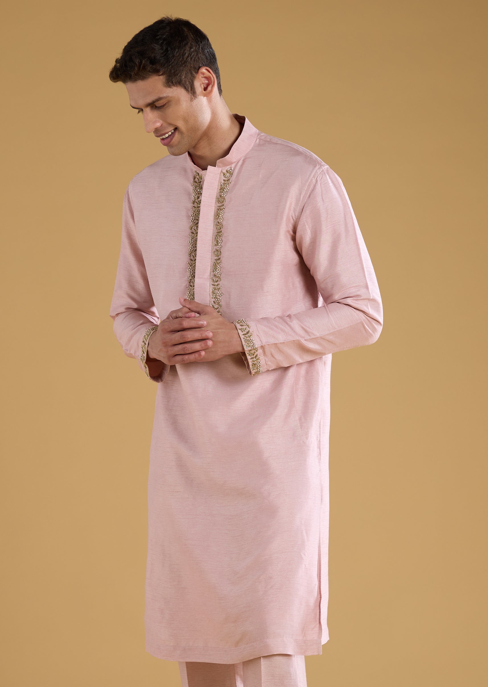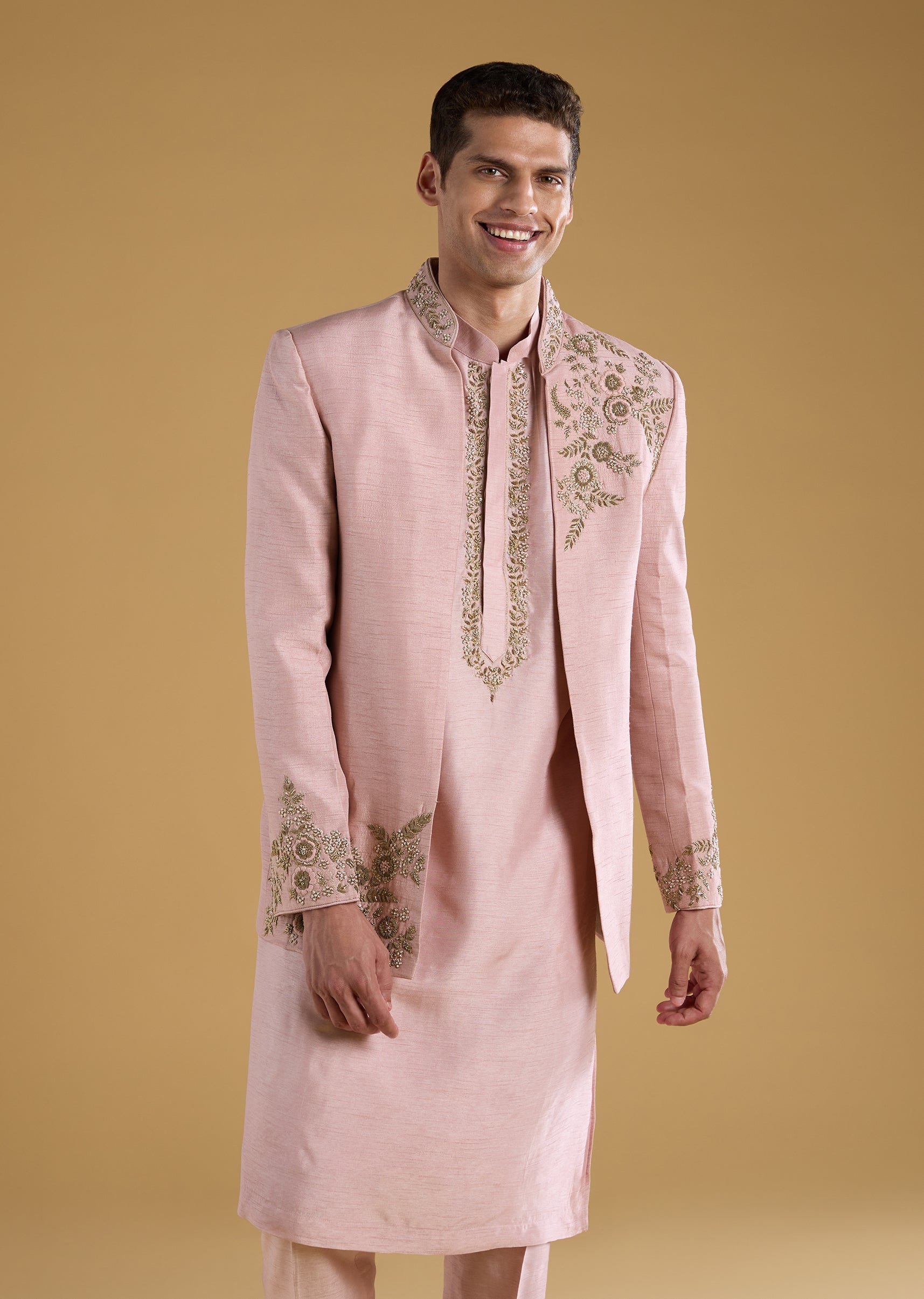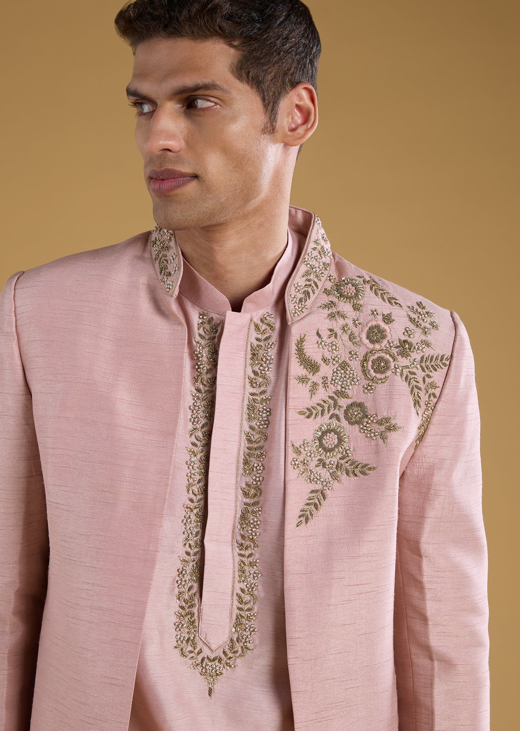 Pink Mysore Silk Mens Jodhpuri Kurta Set