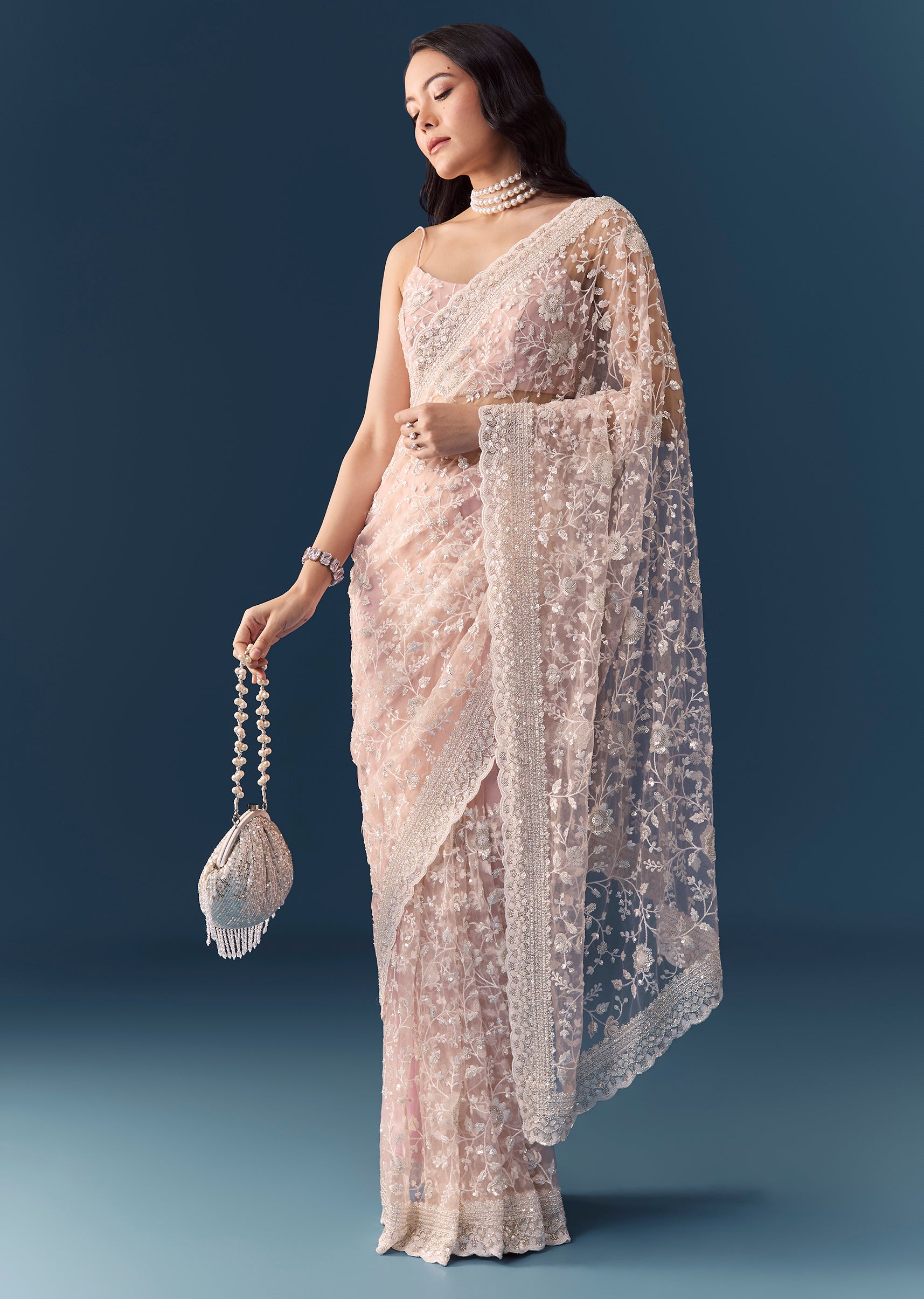 Pair with crystal or kundan jewelry and a soft updo for an elegant, feminine look.