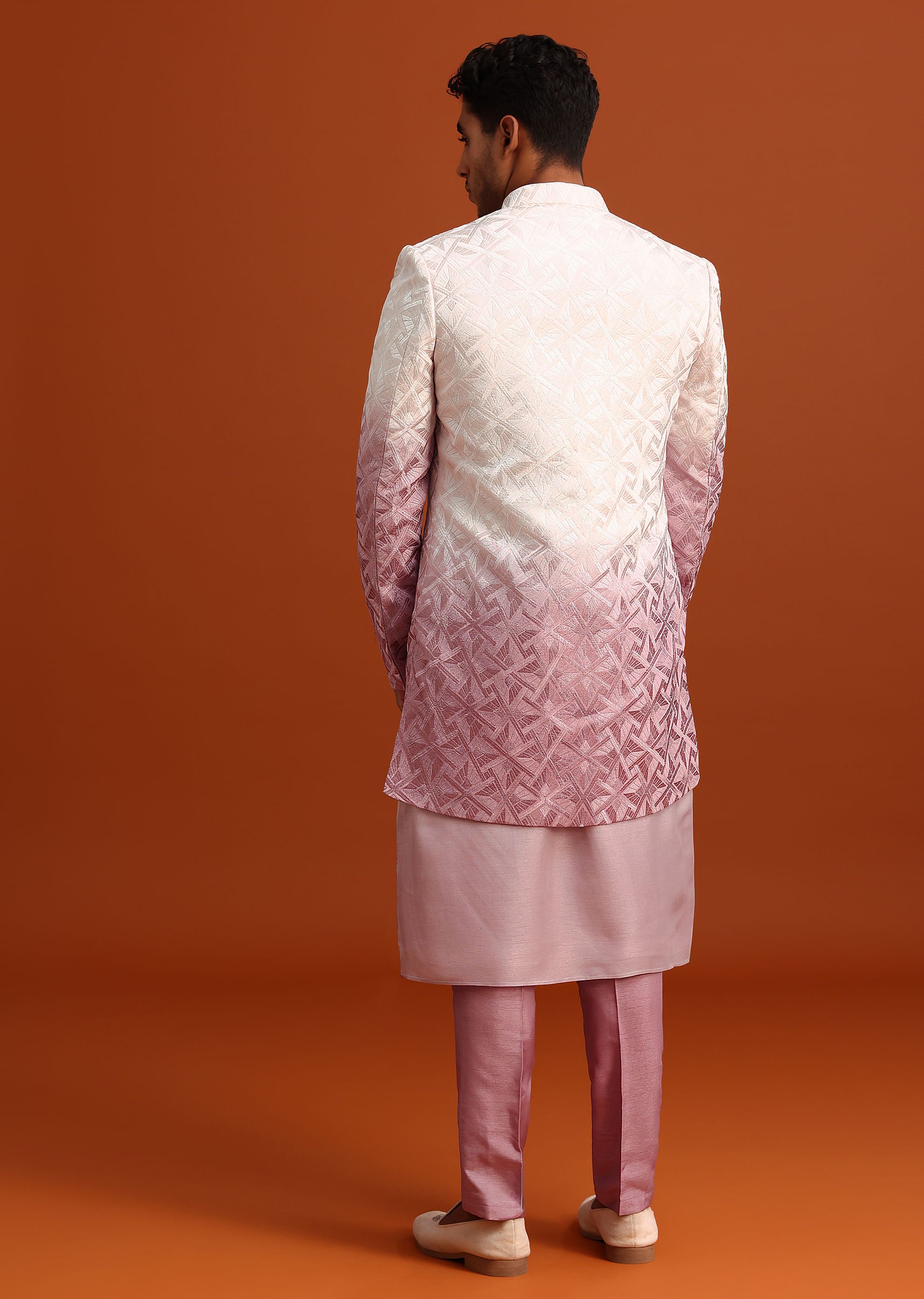 Pink Ombre Sherwani And Kurta Set With Resham Work