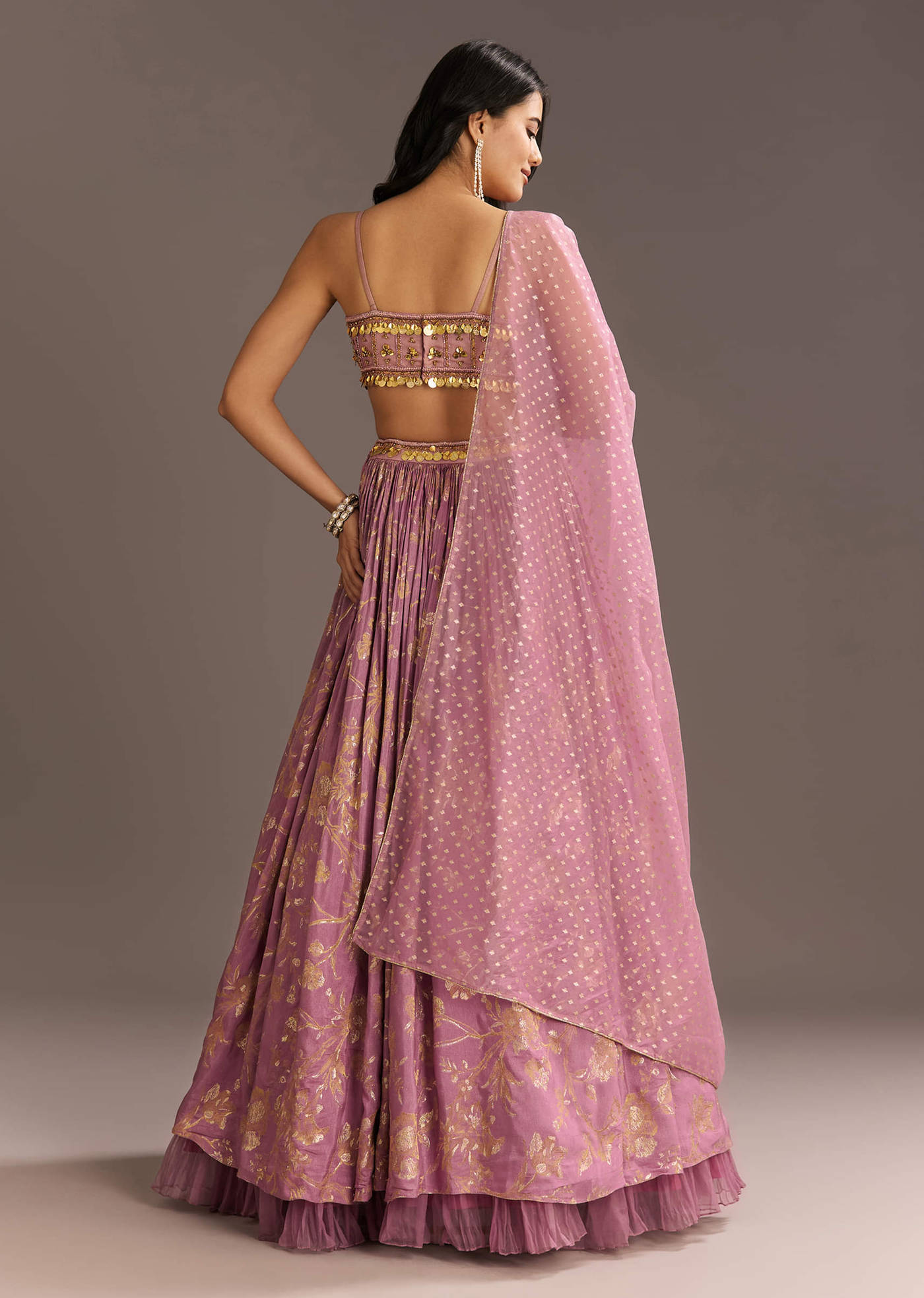 Pink Organza Double Layered Lehenga Set With Handwork Embroidery