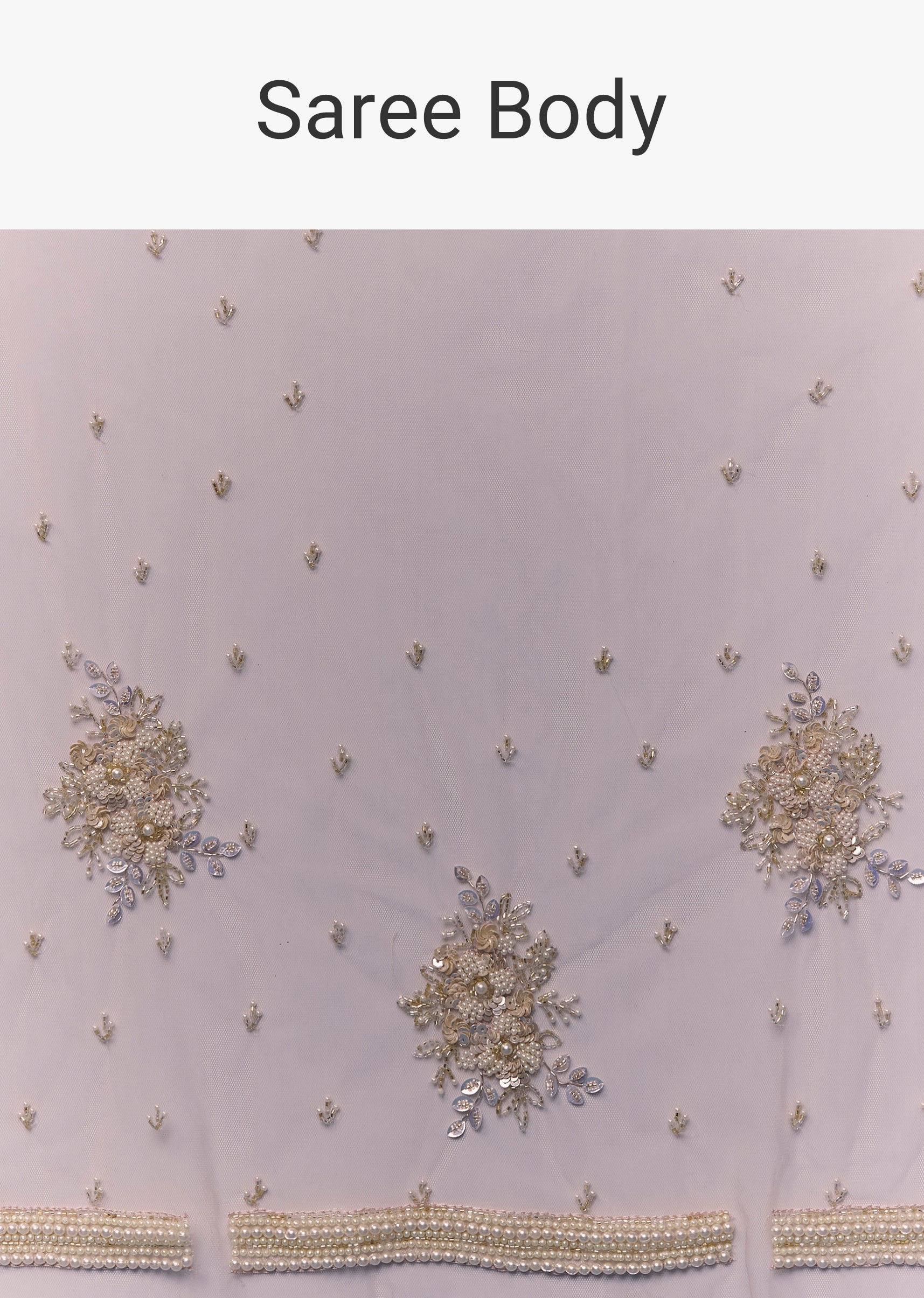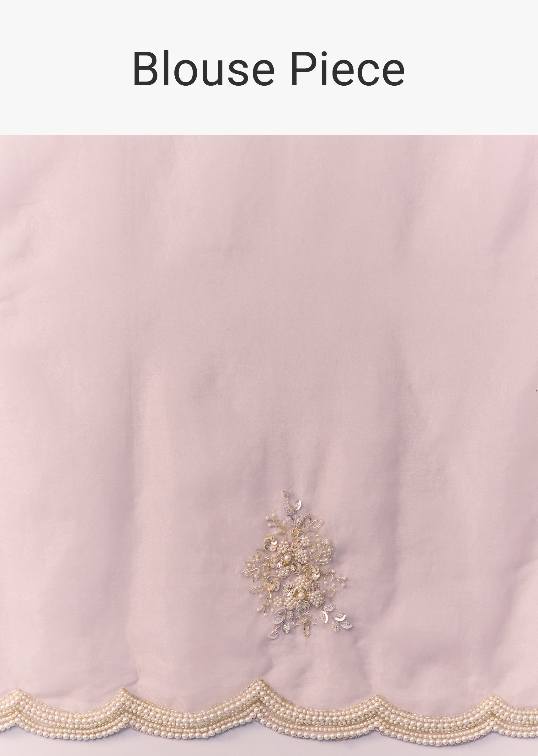 Embrace subtle sophistication with this pink organza saree, featuring a delicately embroidered scallop border and elegant butti work embellished with pearls, sequins, beads, and cutdana. The lightweight organza fabric offers a soft, airy drape, while the matching embroidered blouse fabric completes the look with refined elegance. Perfect for weddings, festive occasions, or formal gatherings, this saree beautifully blends grace with intricate detailing. Awarded as the Most Trusted Brand, we're delivering styles you love, just as promised.