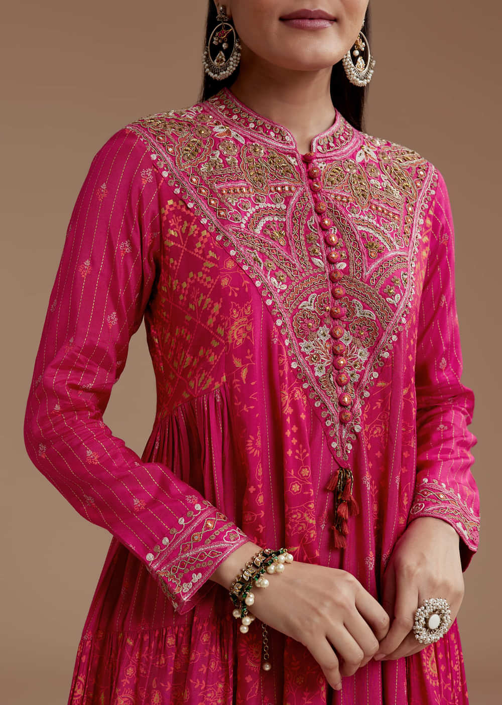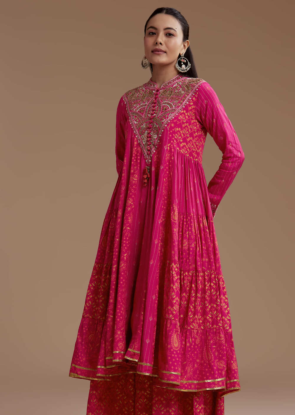 Bright and playful, this pink cotton kurta and pant set is perfect for a daytime celebrations and night-time festive functions. Doused with captivating prints and finished with a delicate embroidery... More Product Details