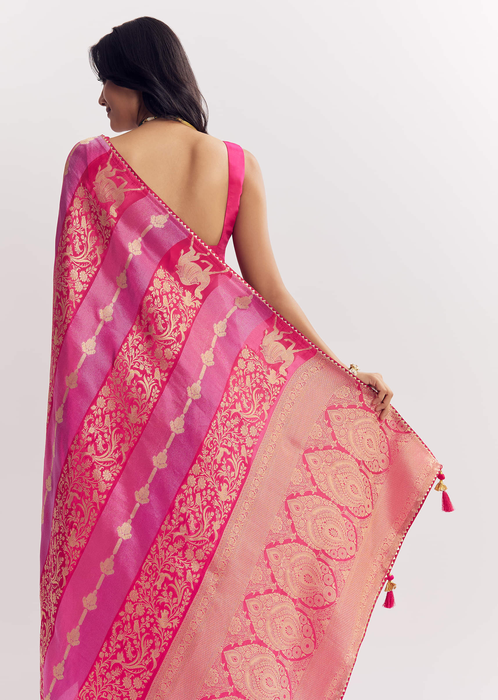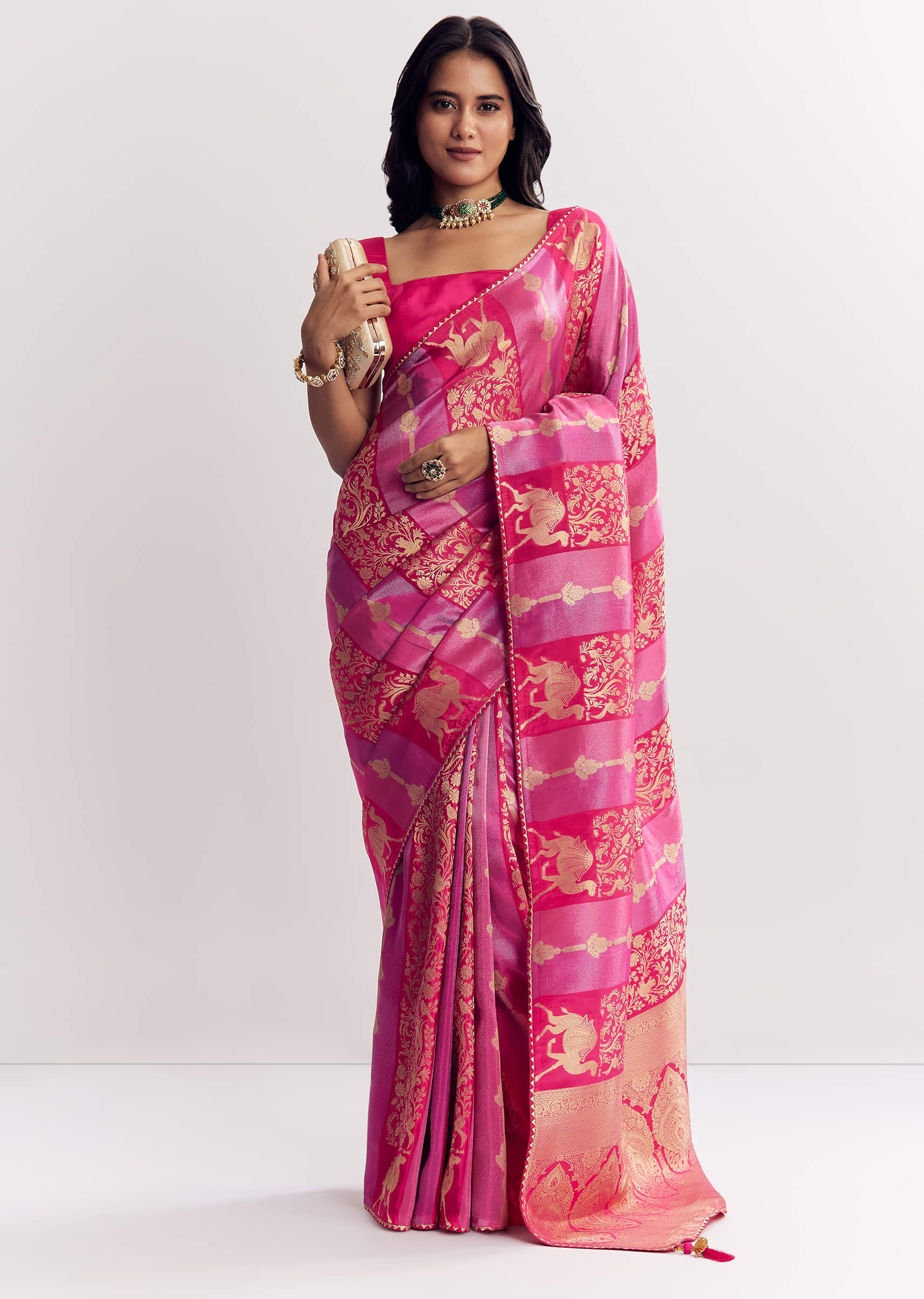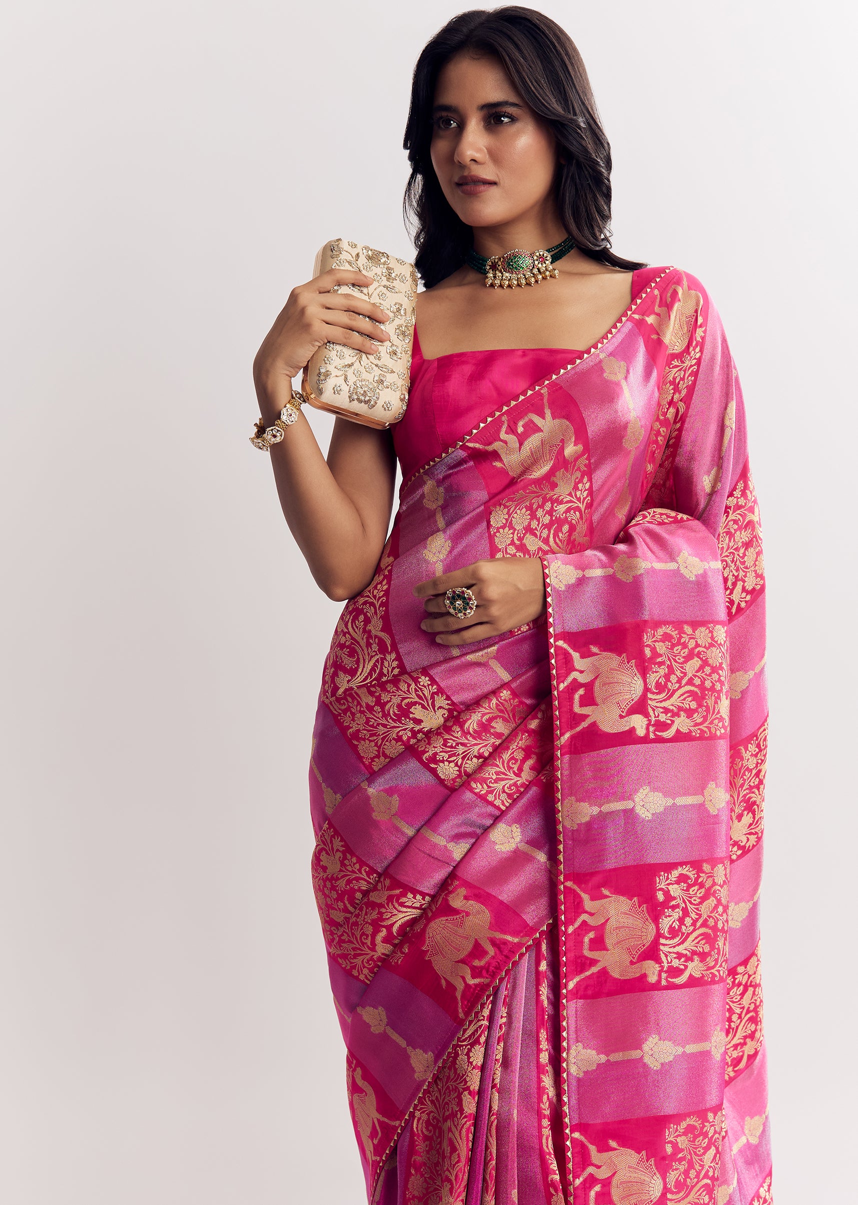 Pink Purple Shaded Dola Silk Saree With Gota Patti Motif