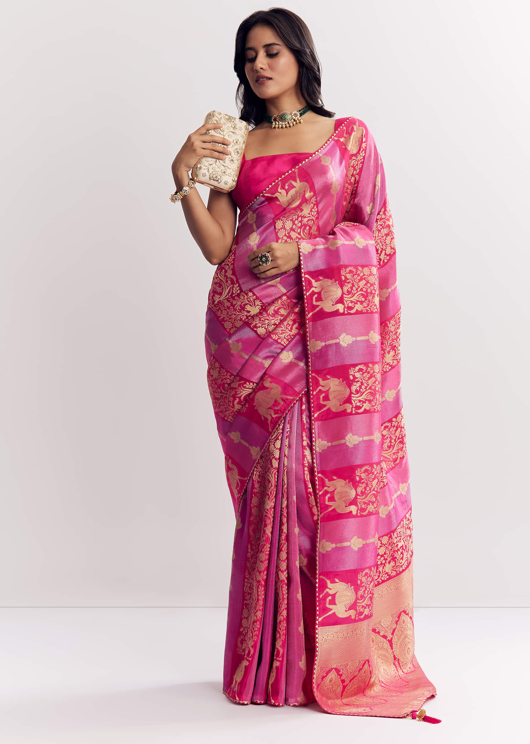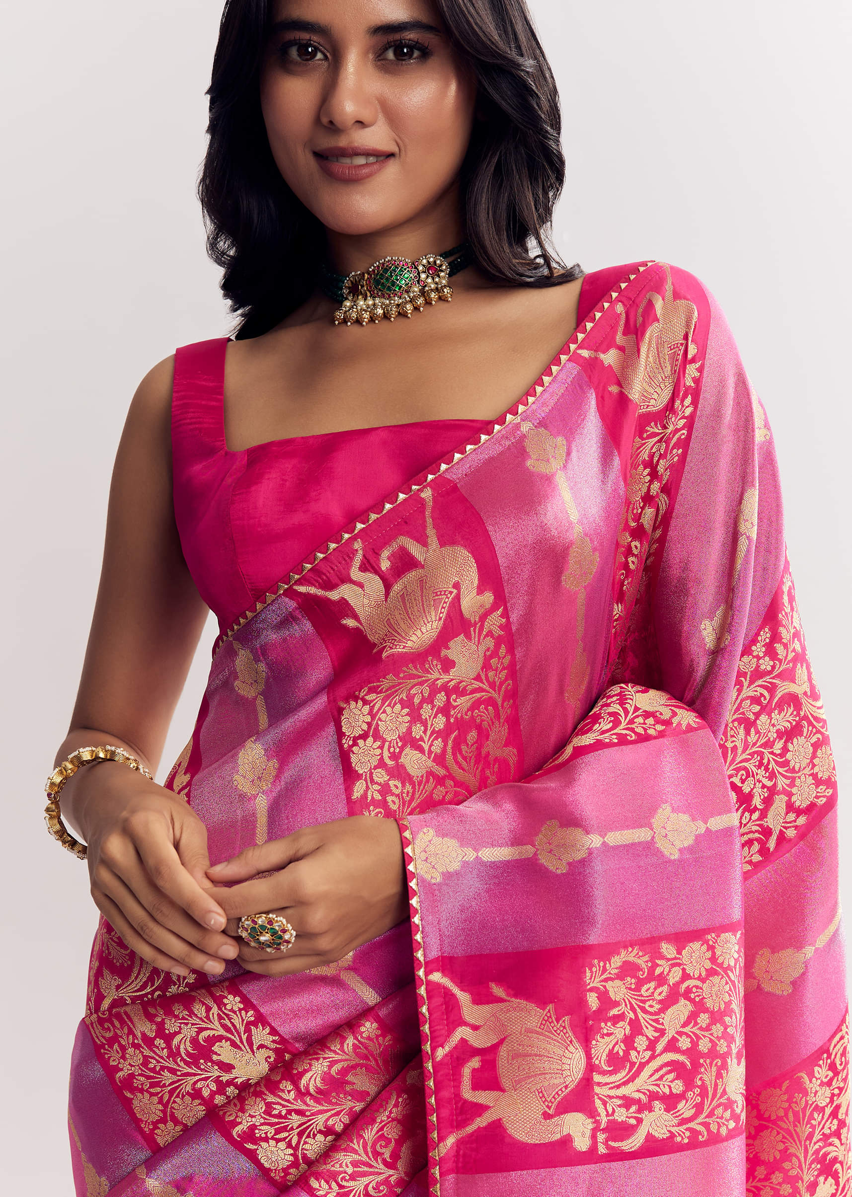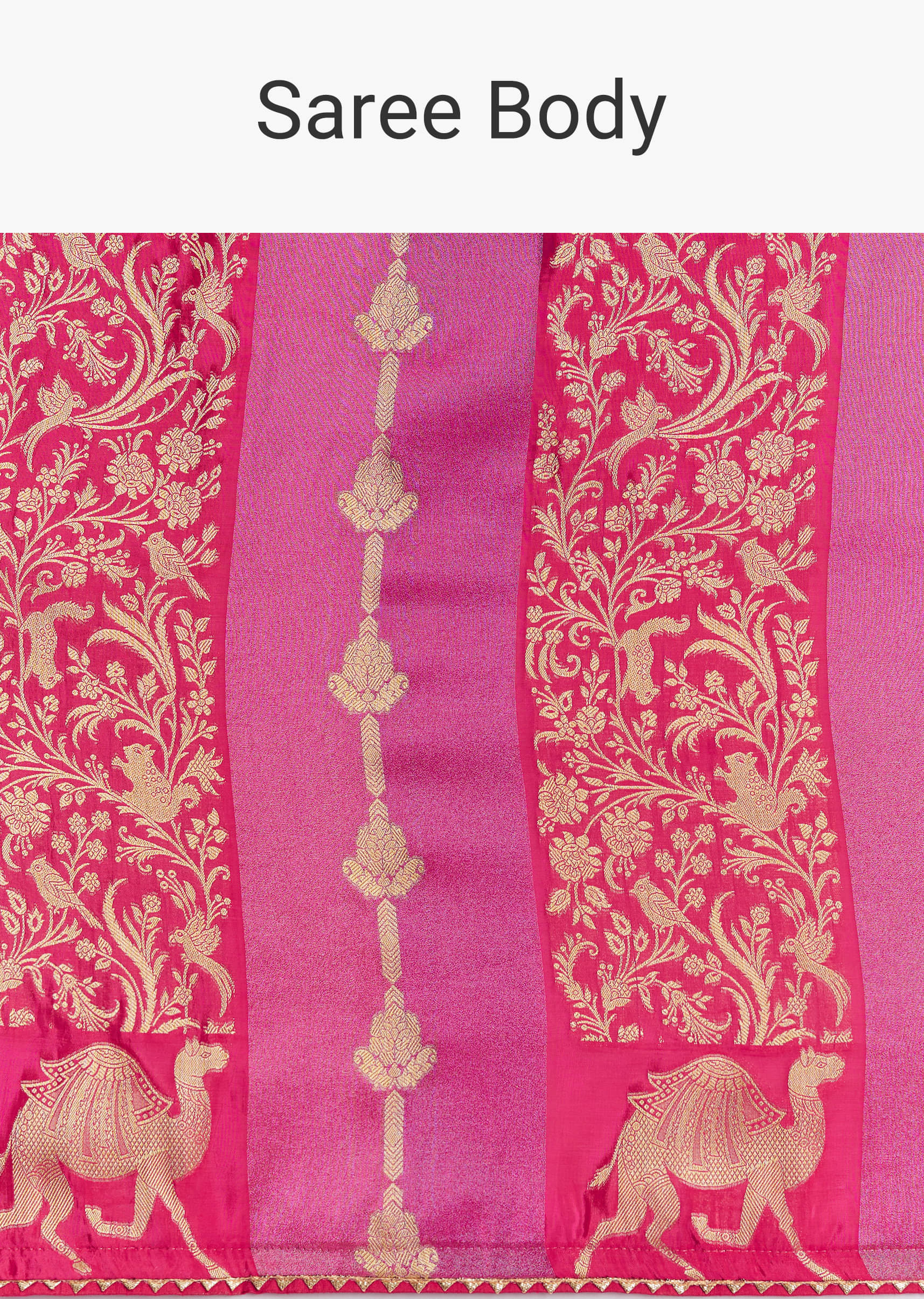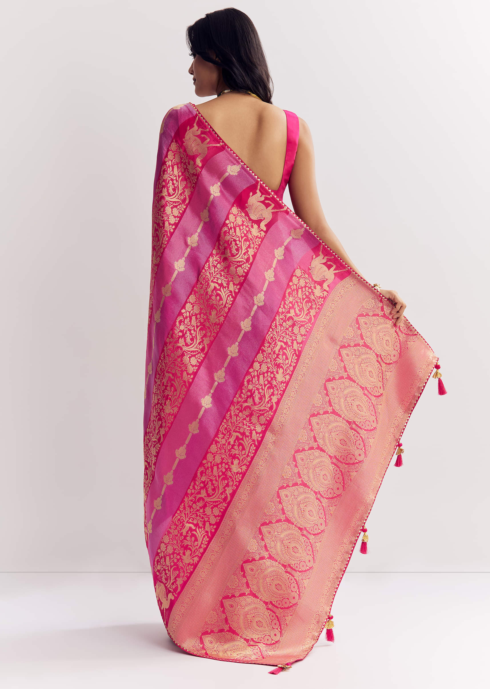 Pink Purple Shaded Dola Silk Saree With Gota Patti Motif