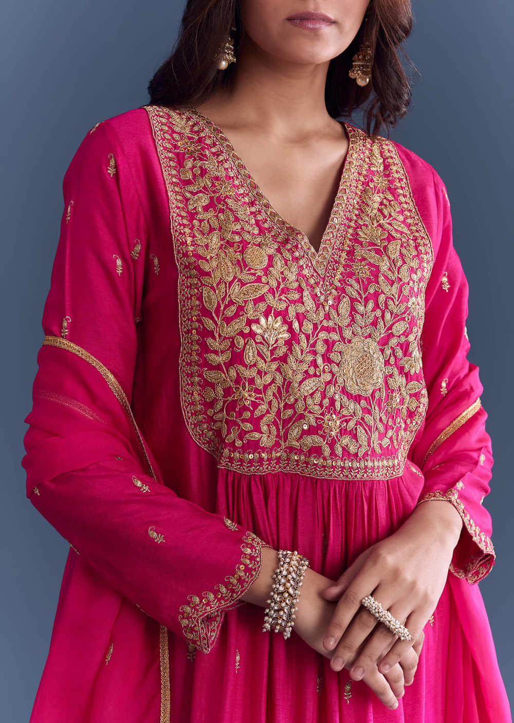 Pink Silk Anarkali Suit With Zari Thread Embroidery