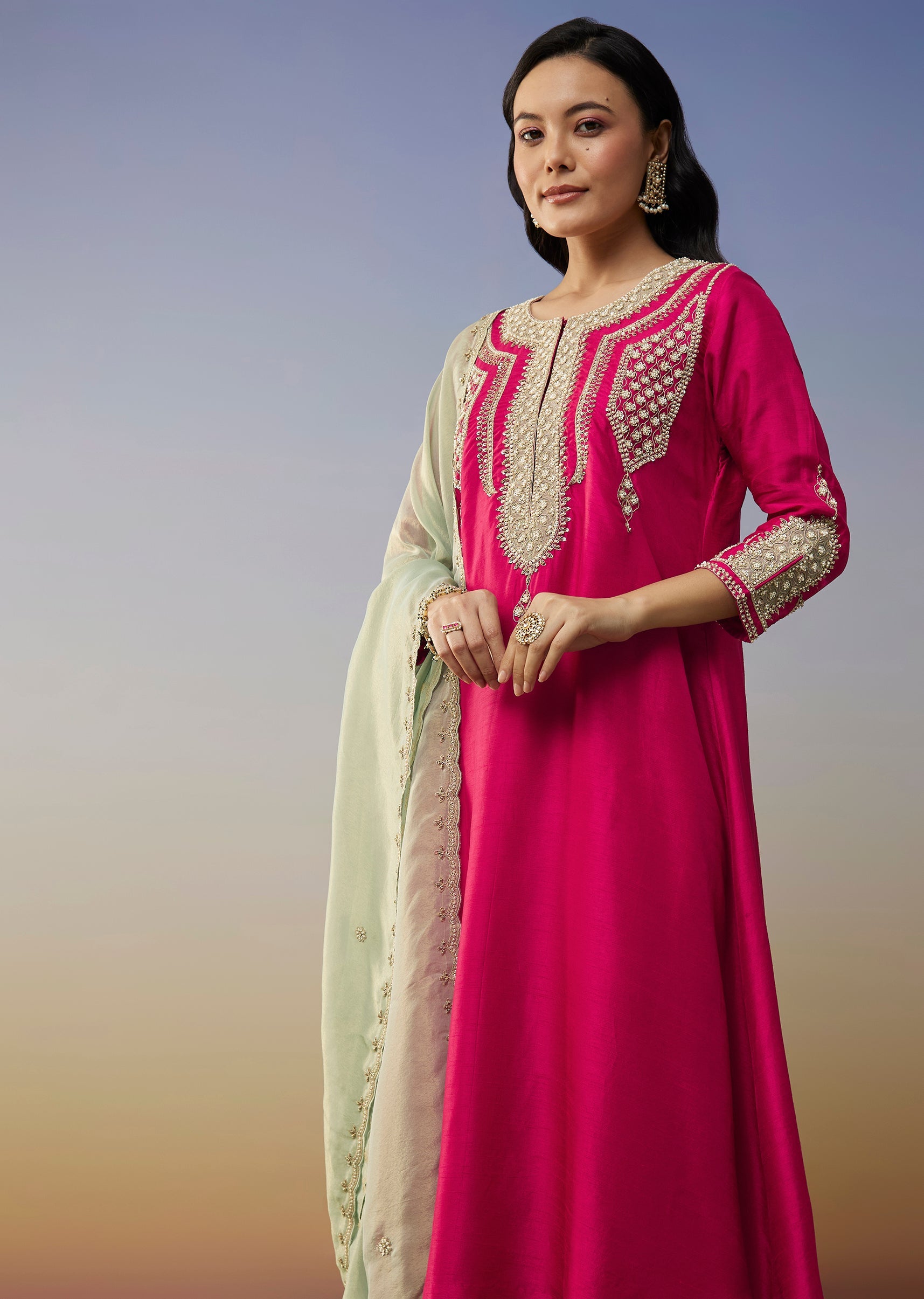 Pink Silk Anarkali Suits with Moti and Sequins Work