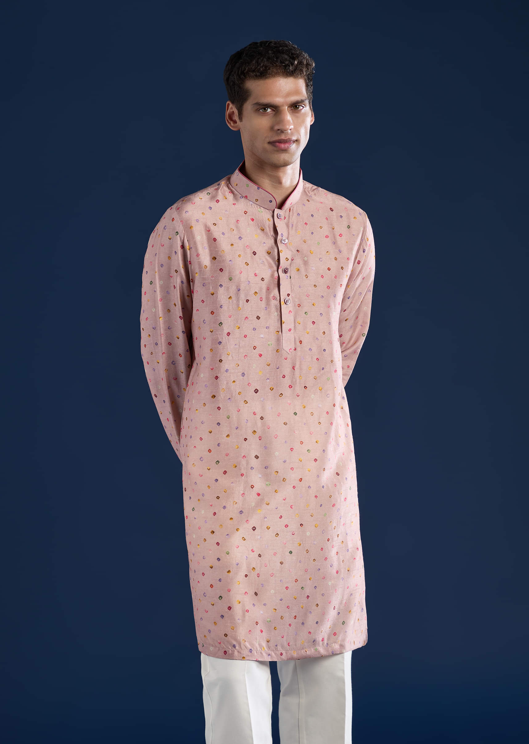 Pink Silk Jacket Kurta Set with Zari Embroidery