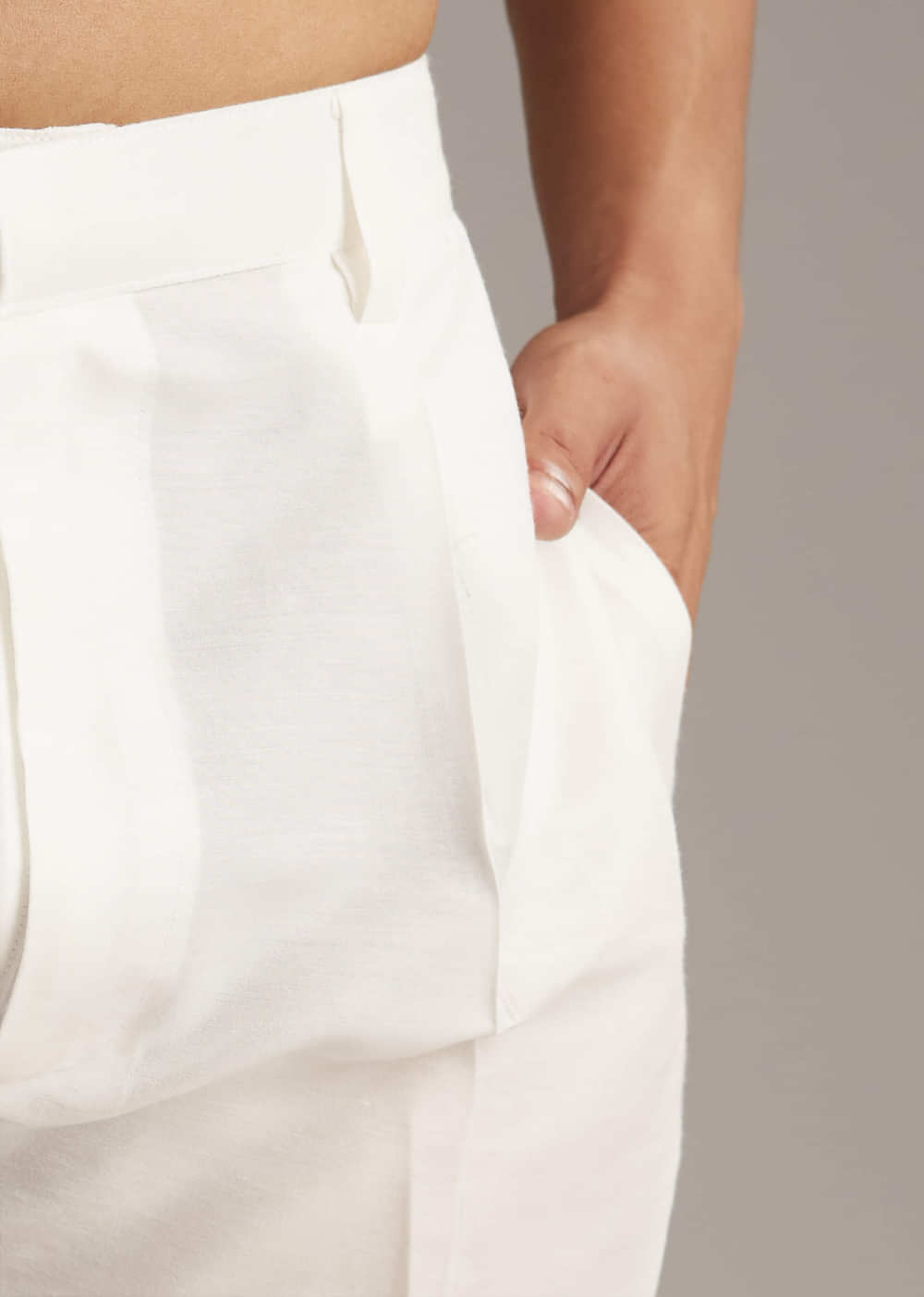 Match with ivory mojaris and a slim bracelet to keep the palette gentle.